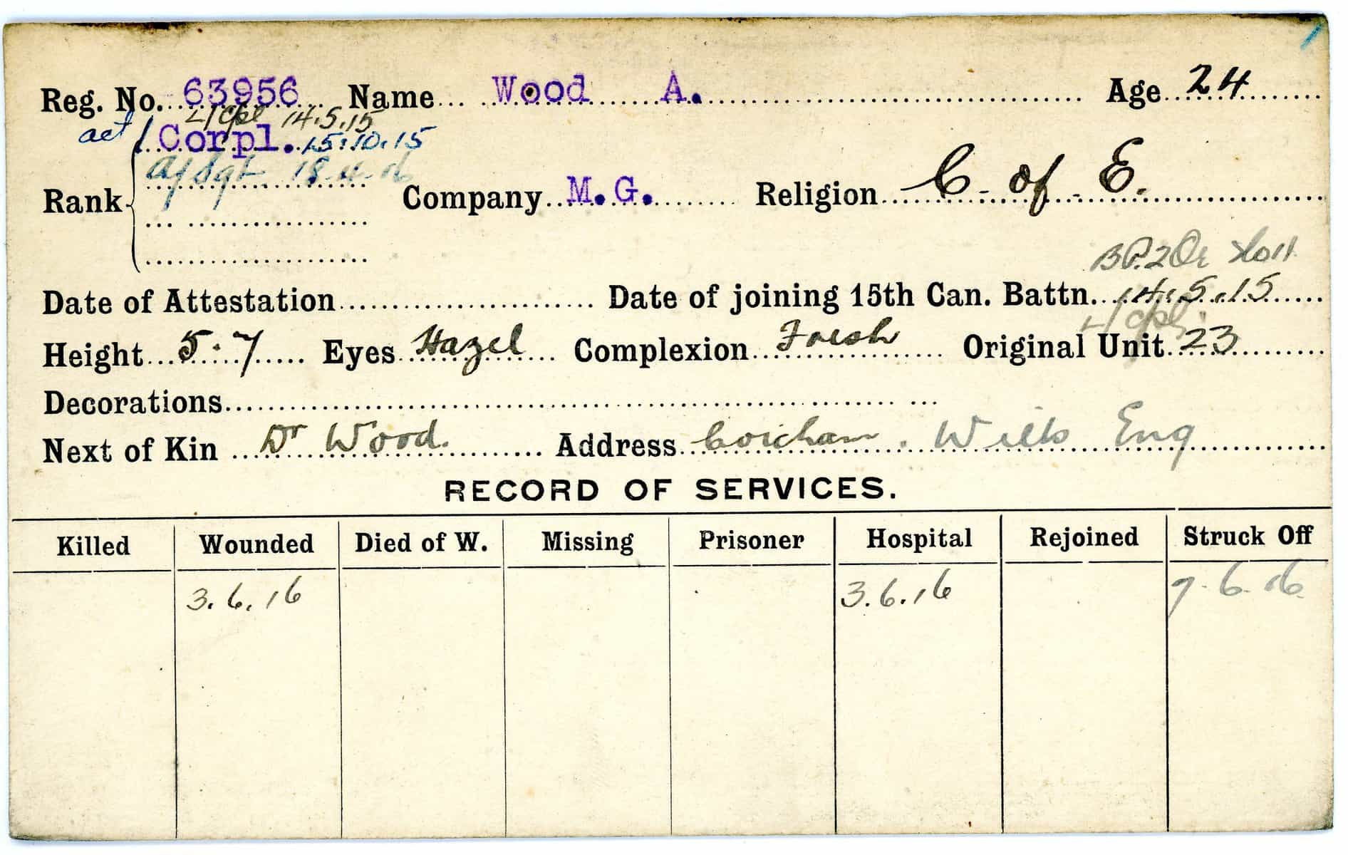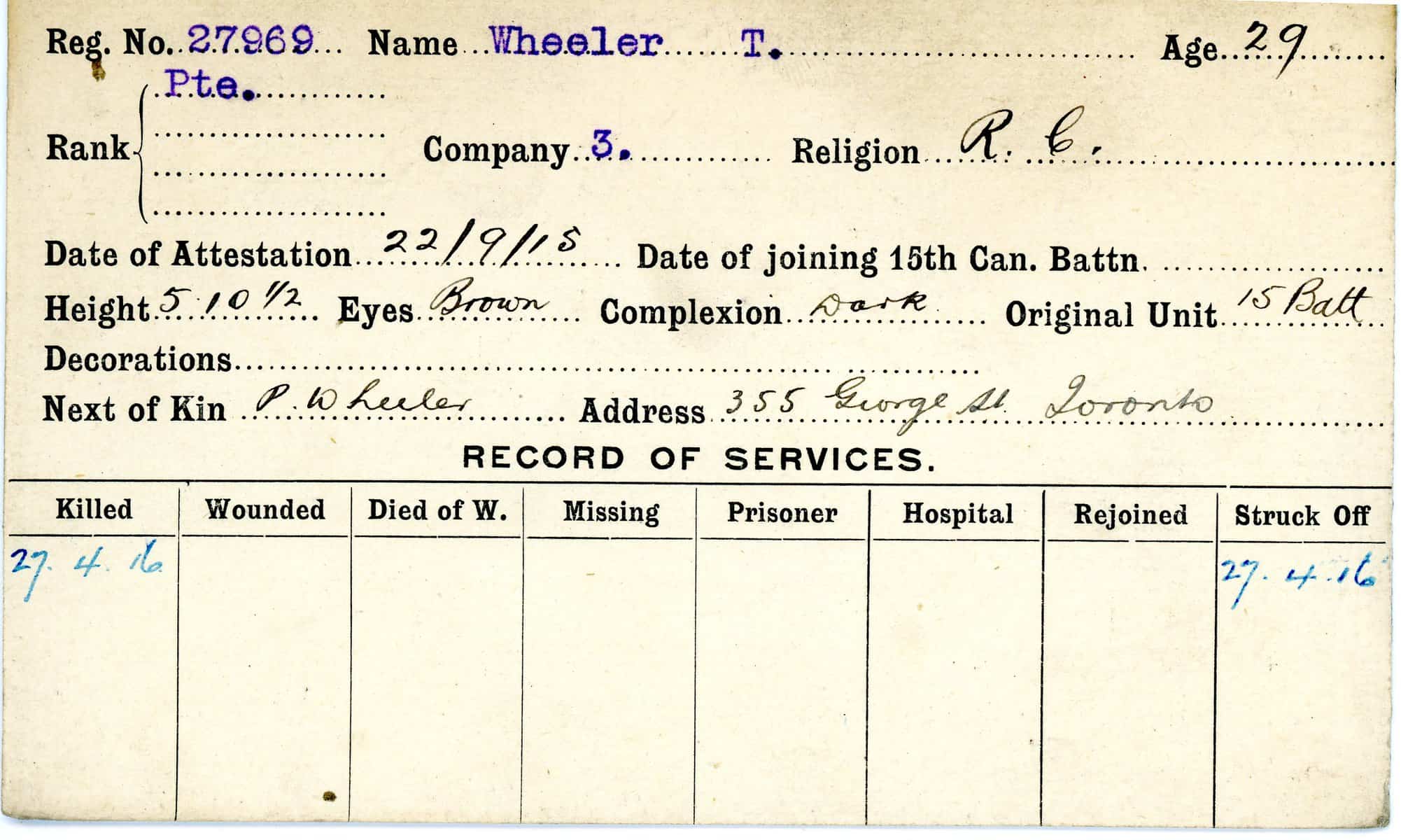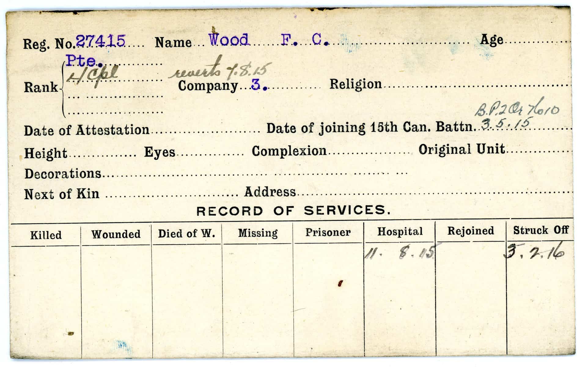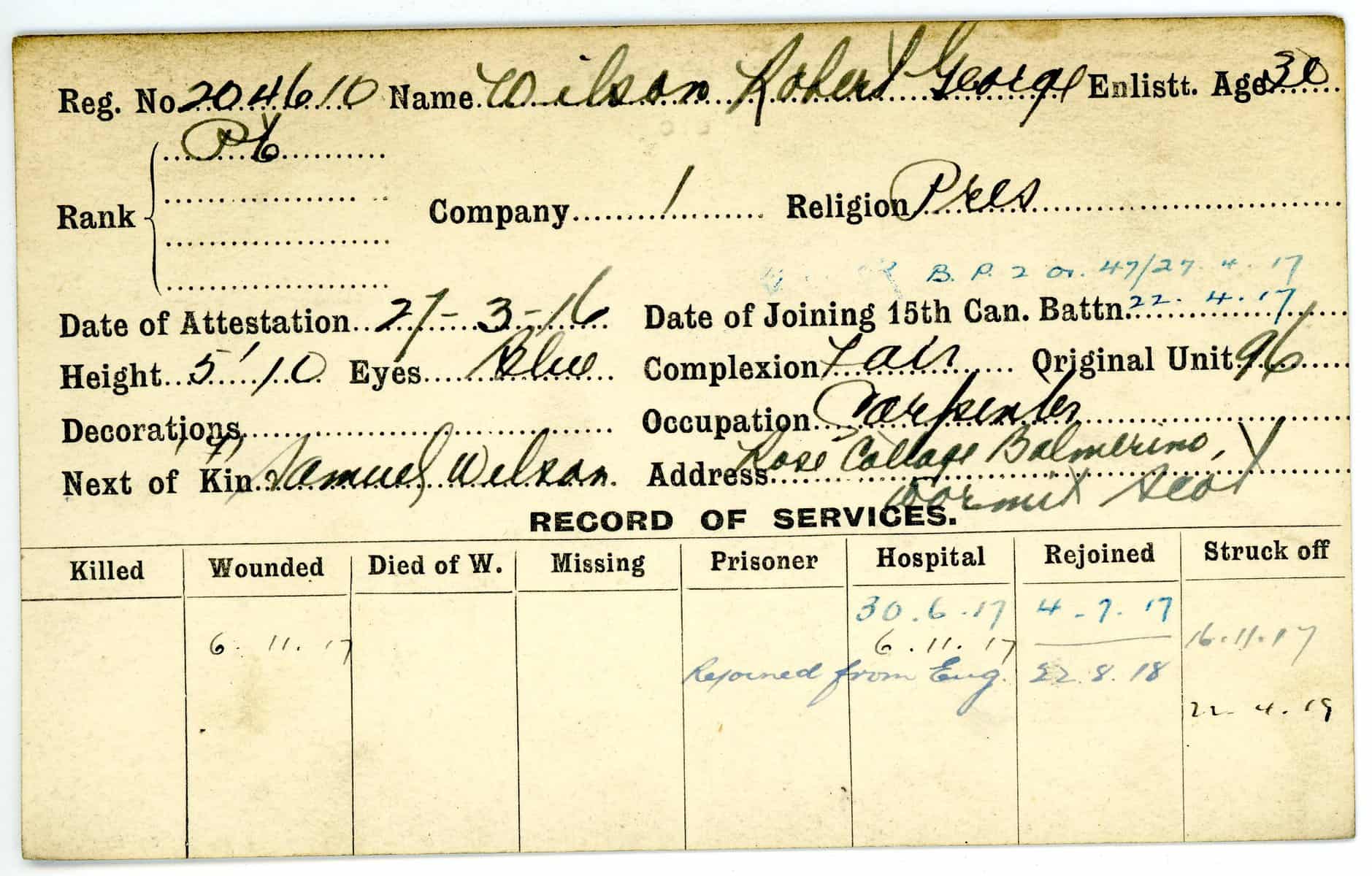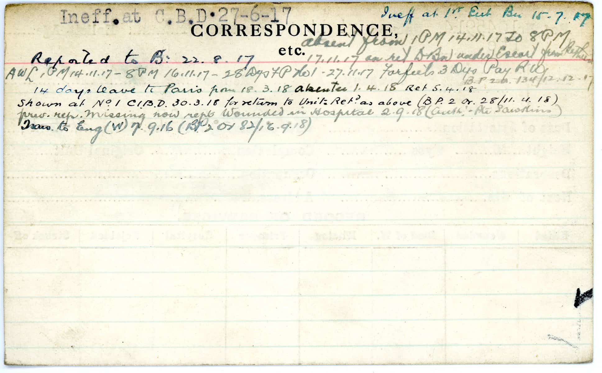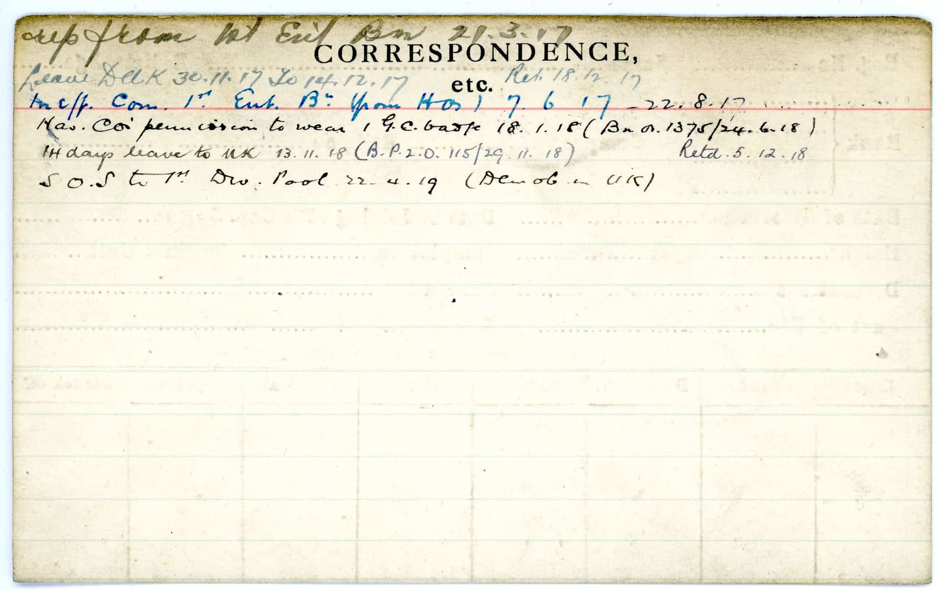 Record of Service Cards – W