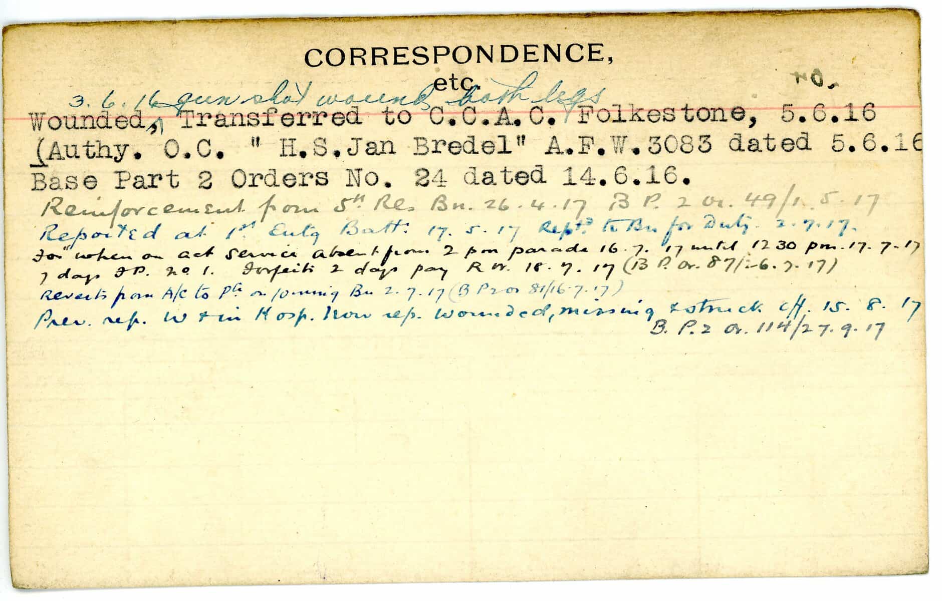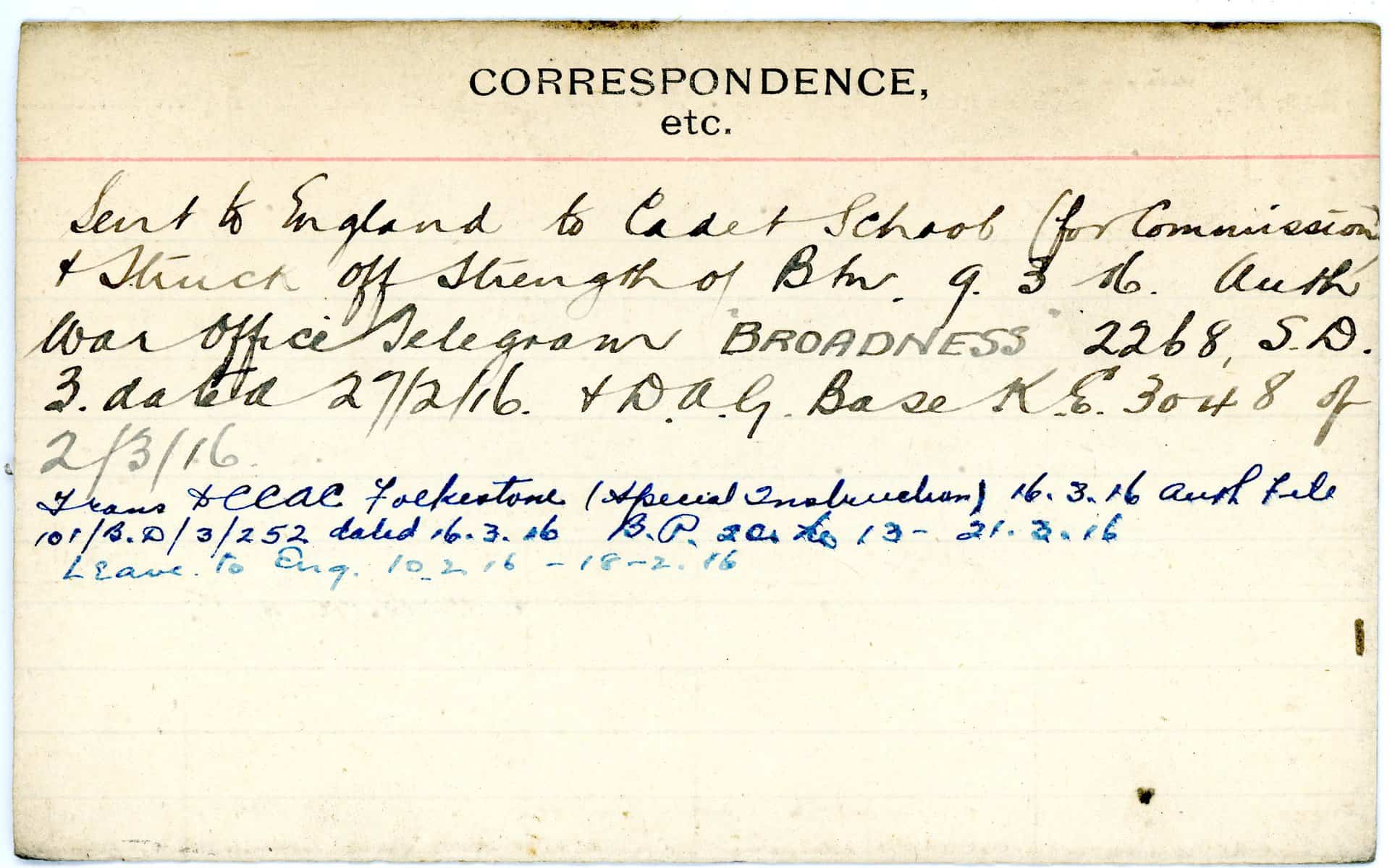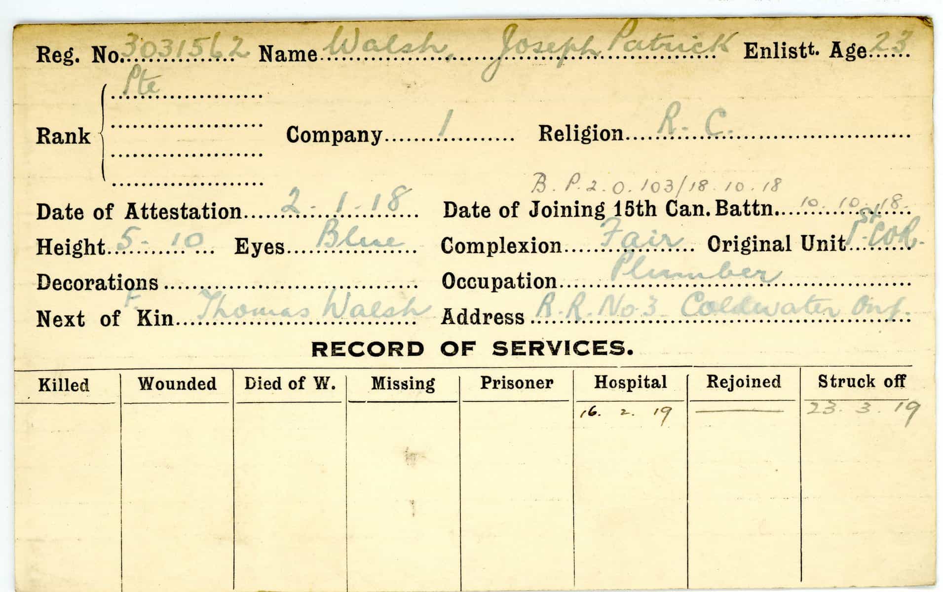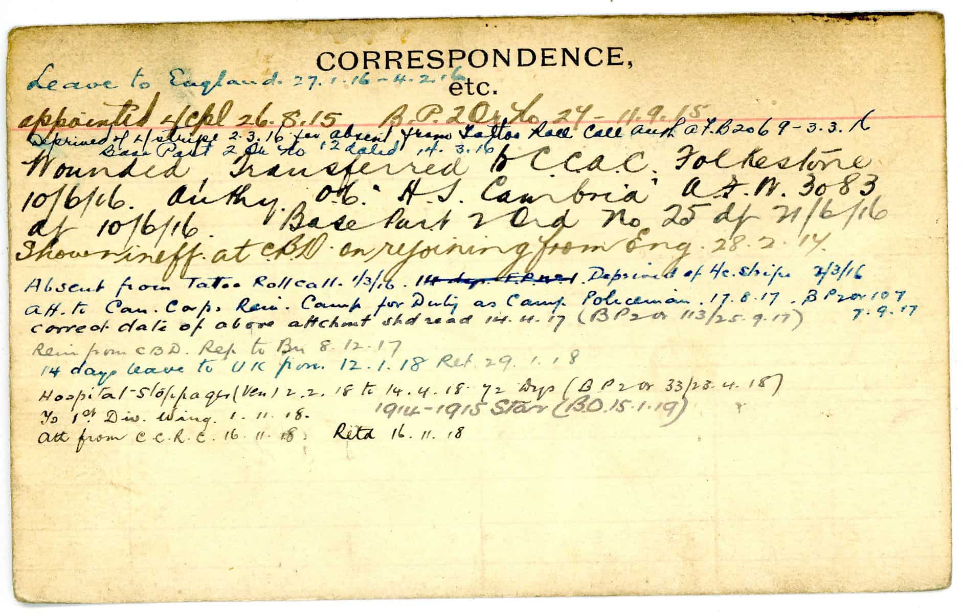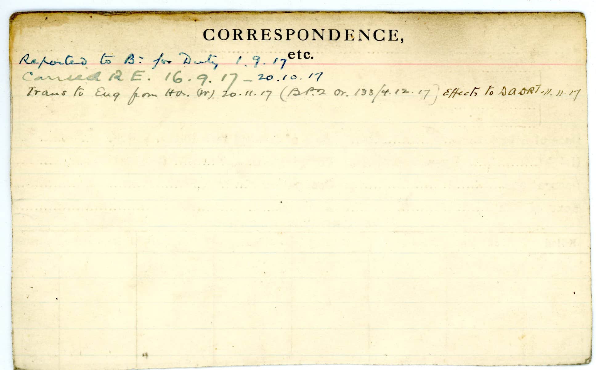 Record of Service Cards – W