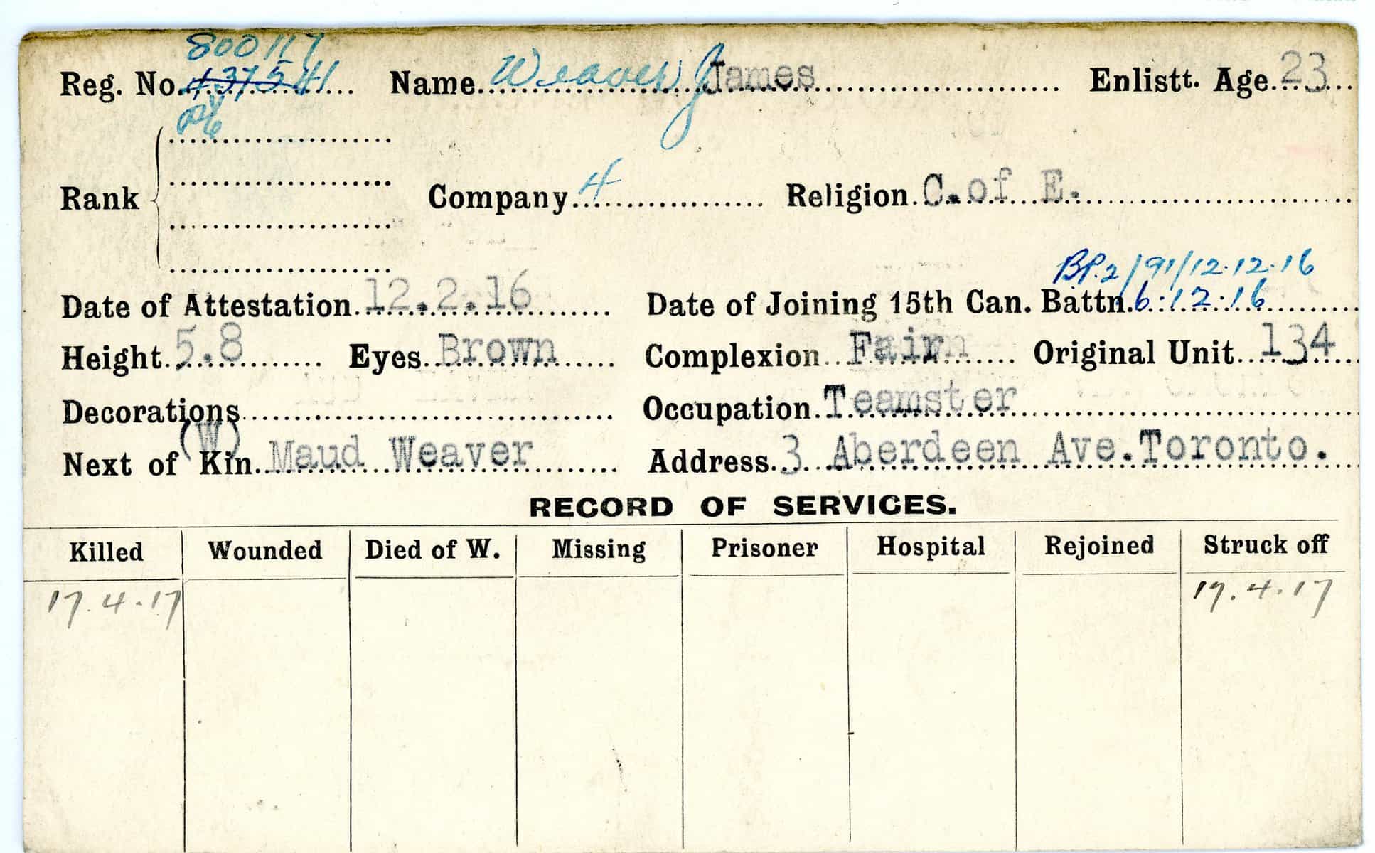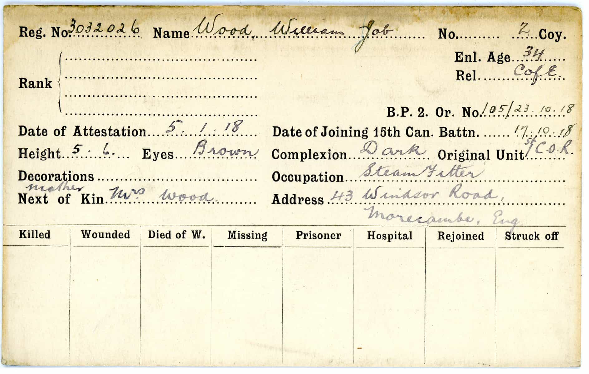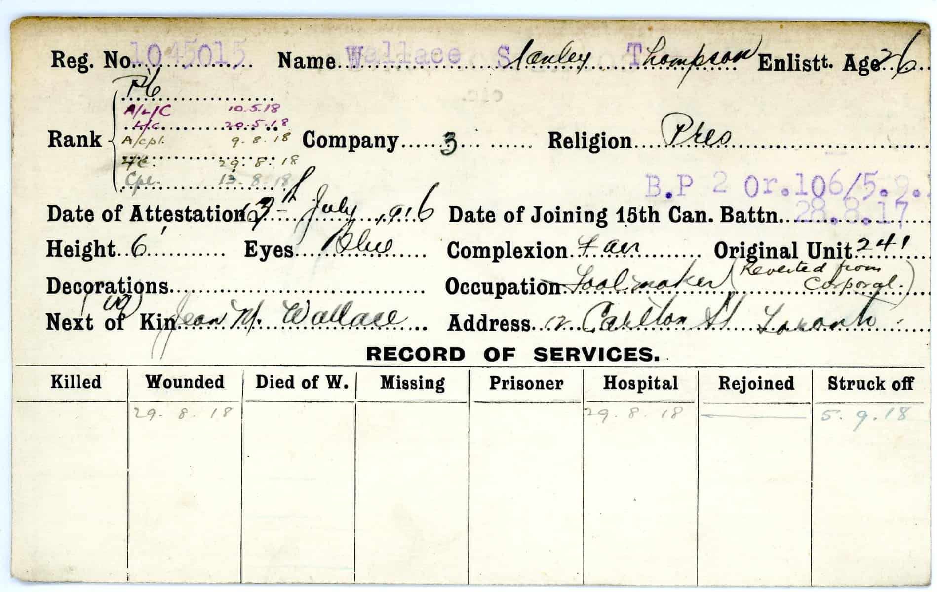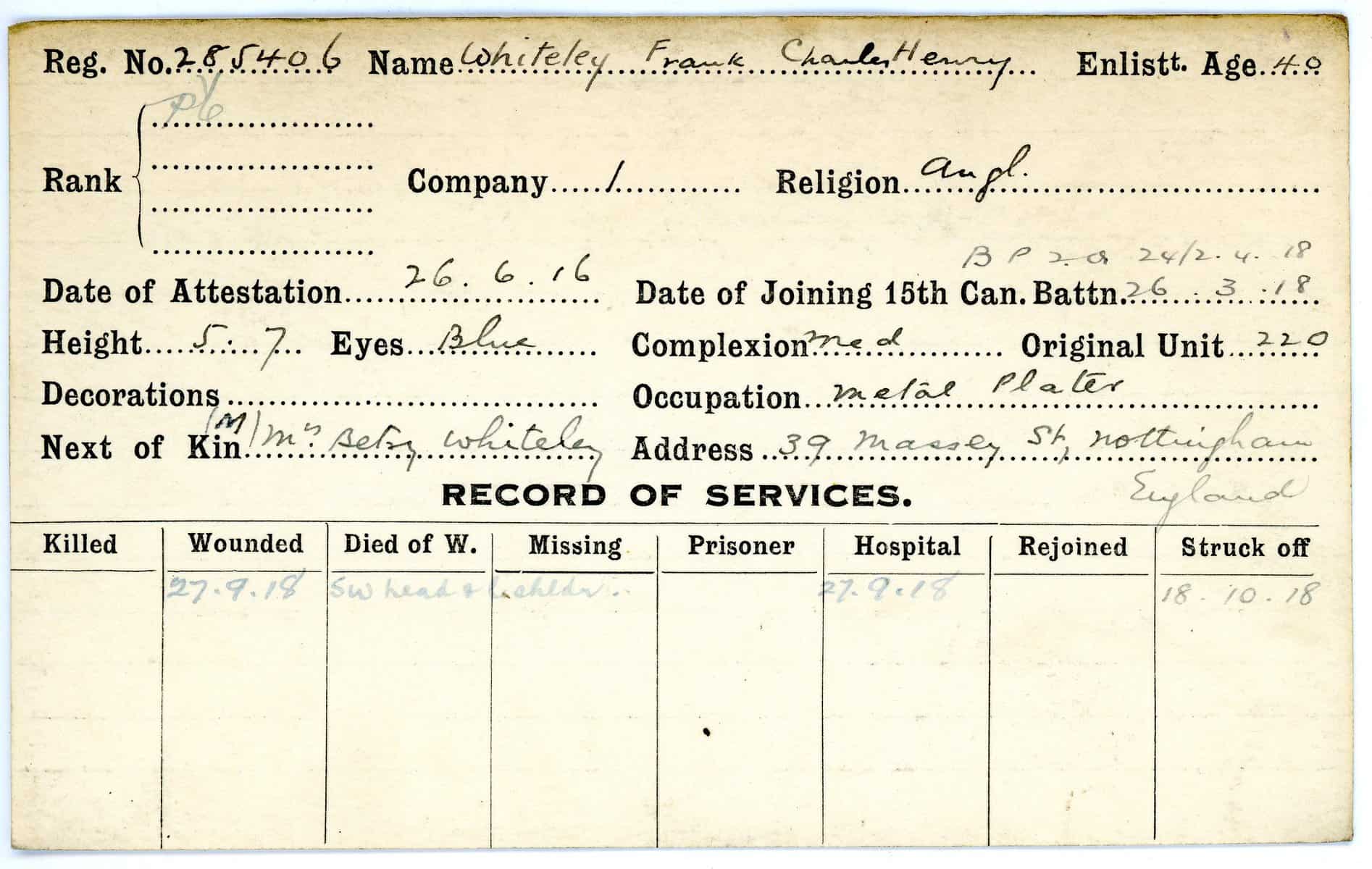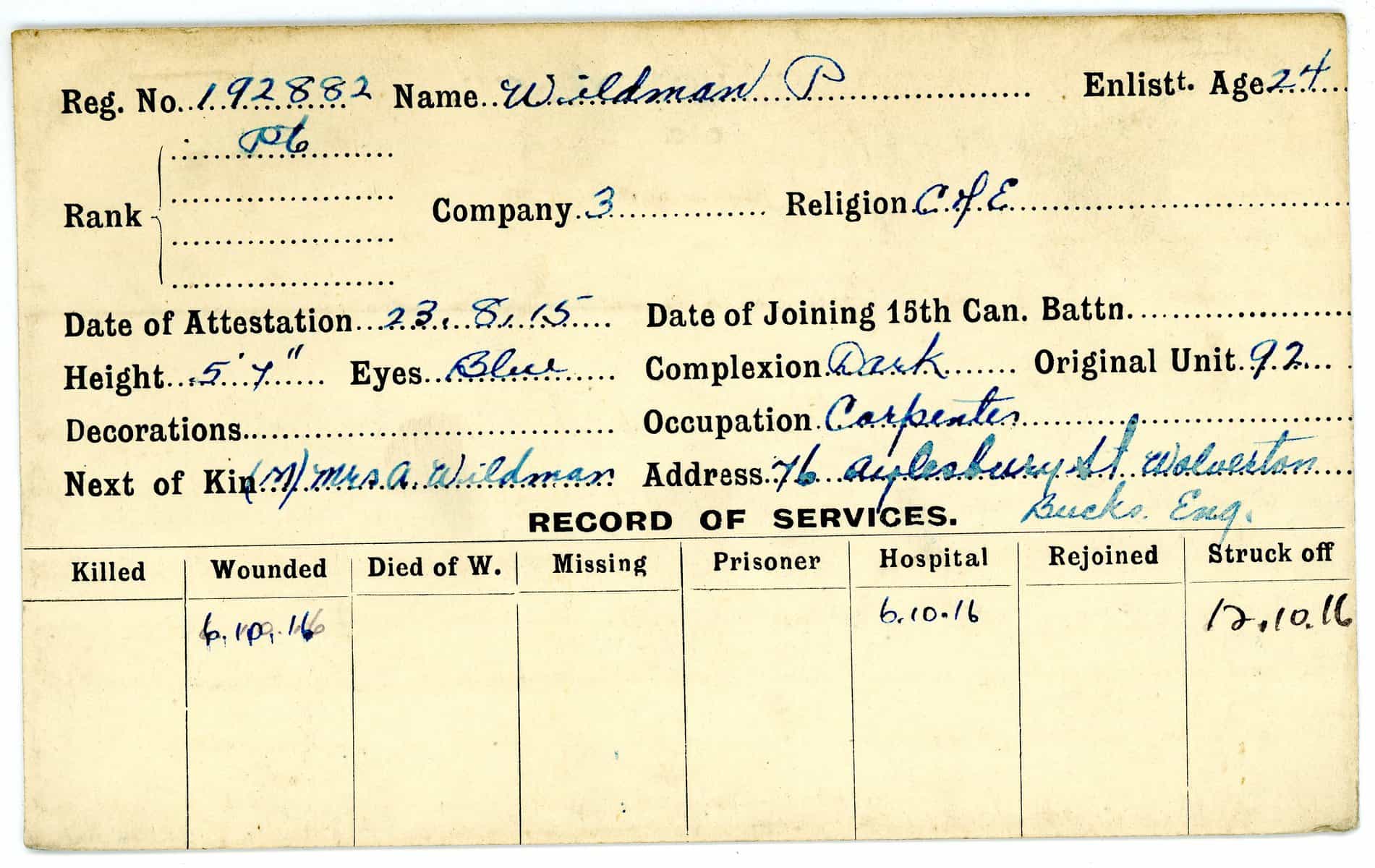 Record of Service Cards – W
