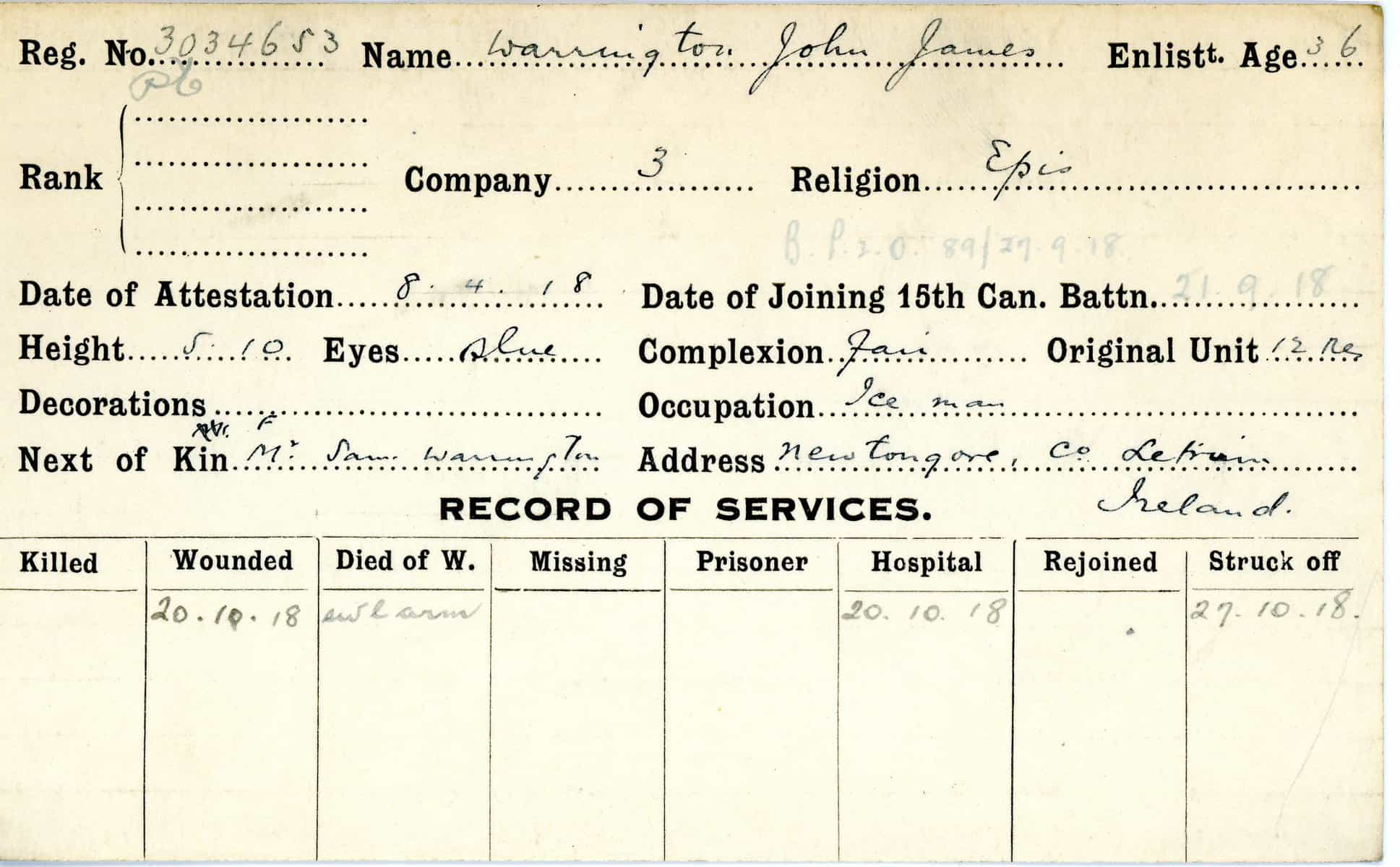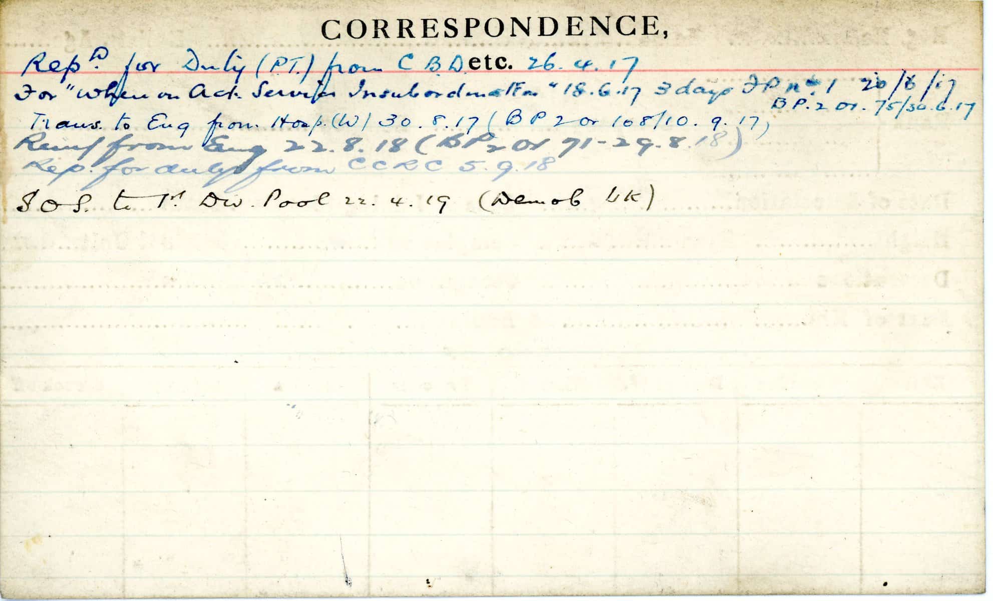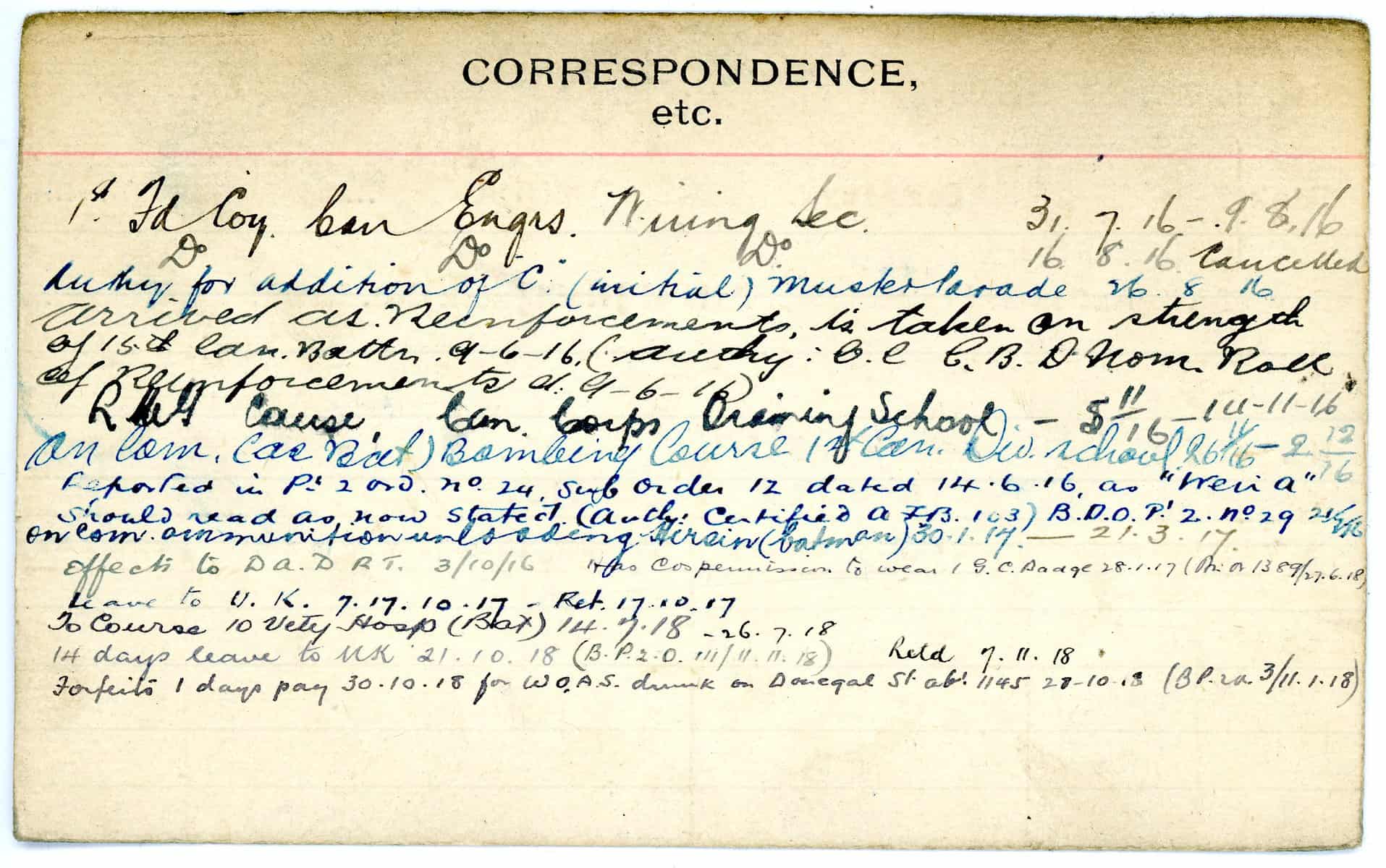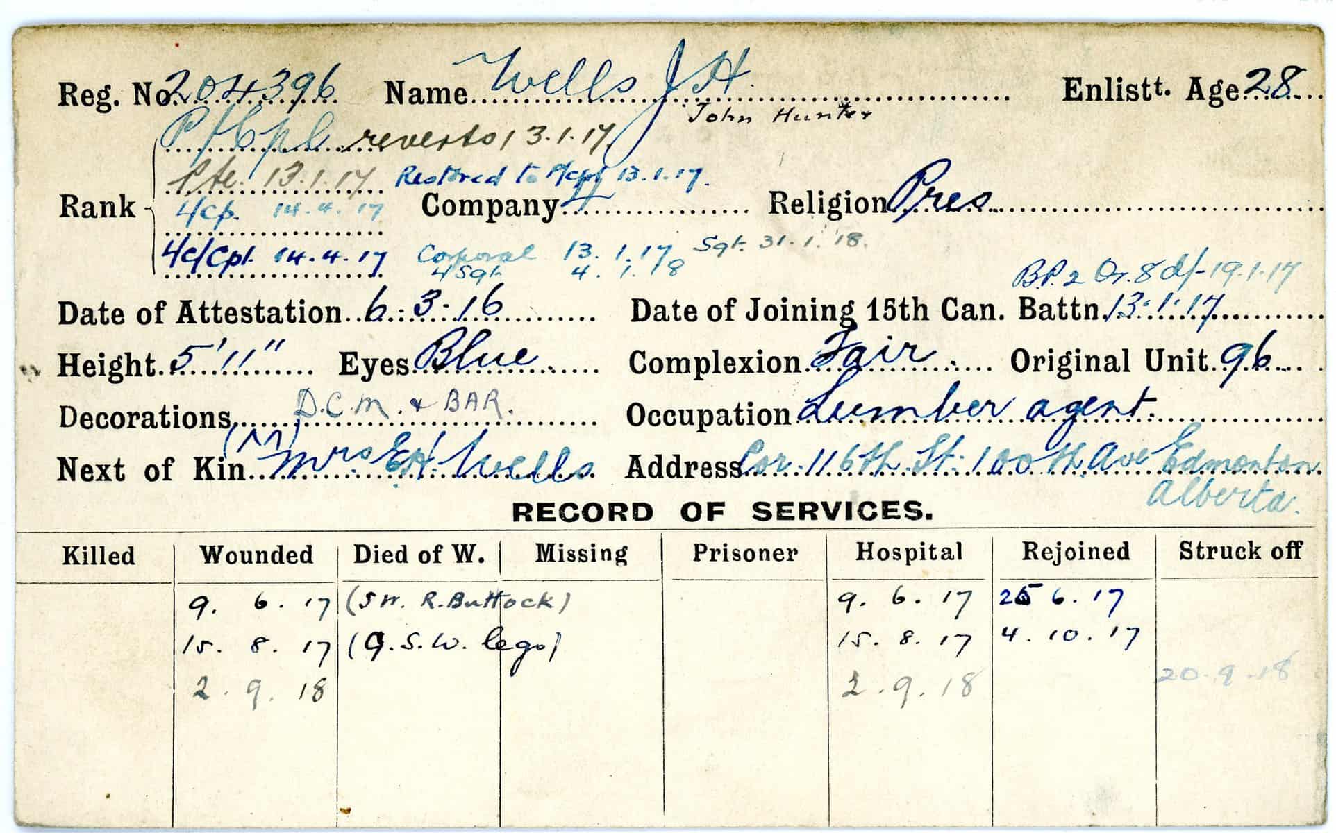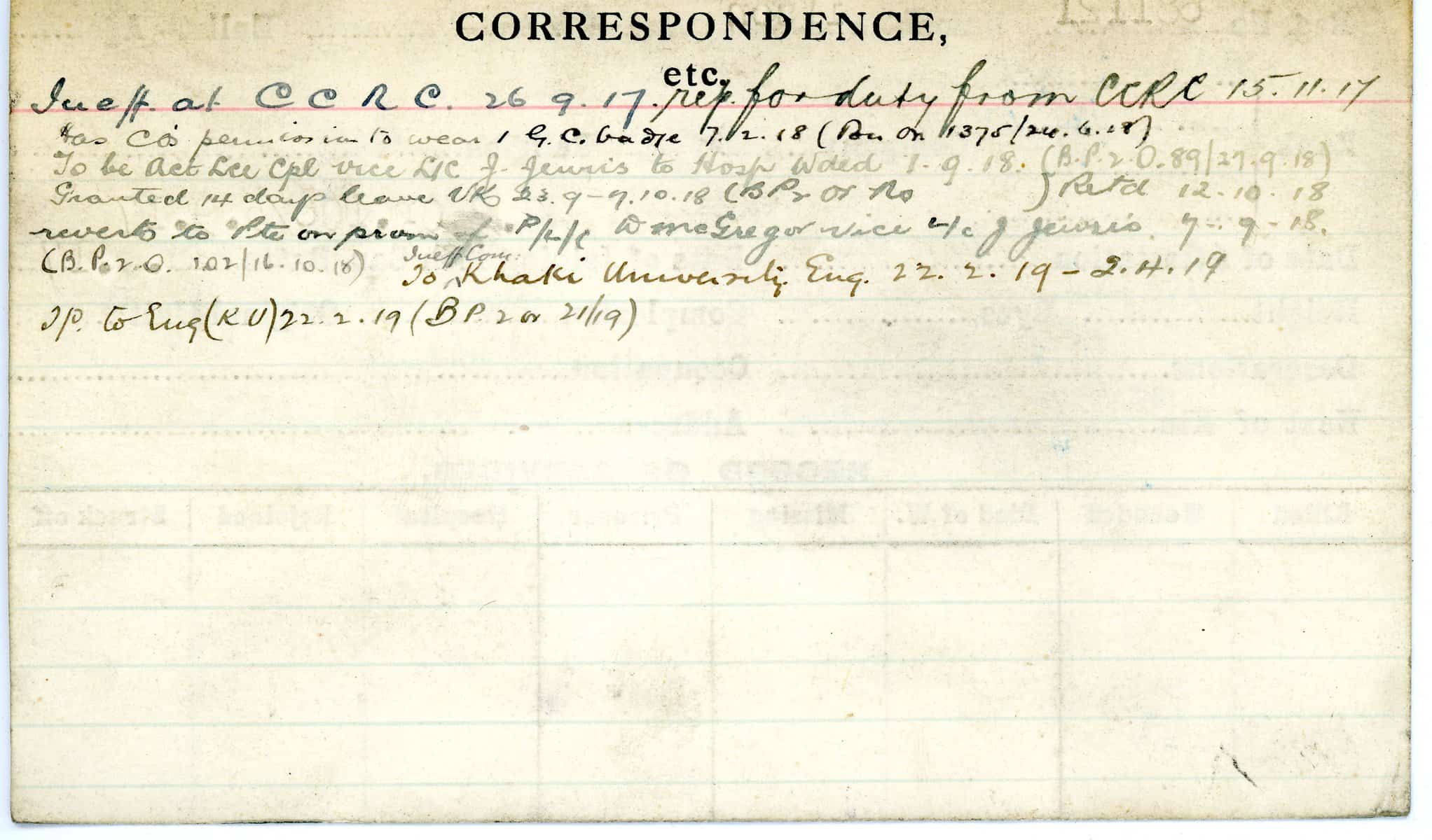 Record of Service Cards – W