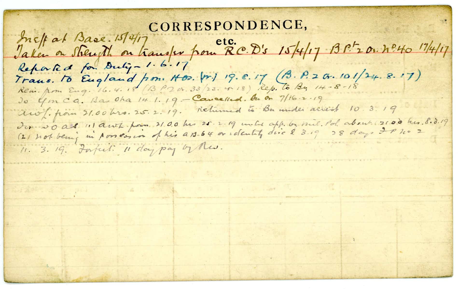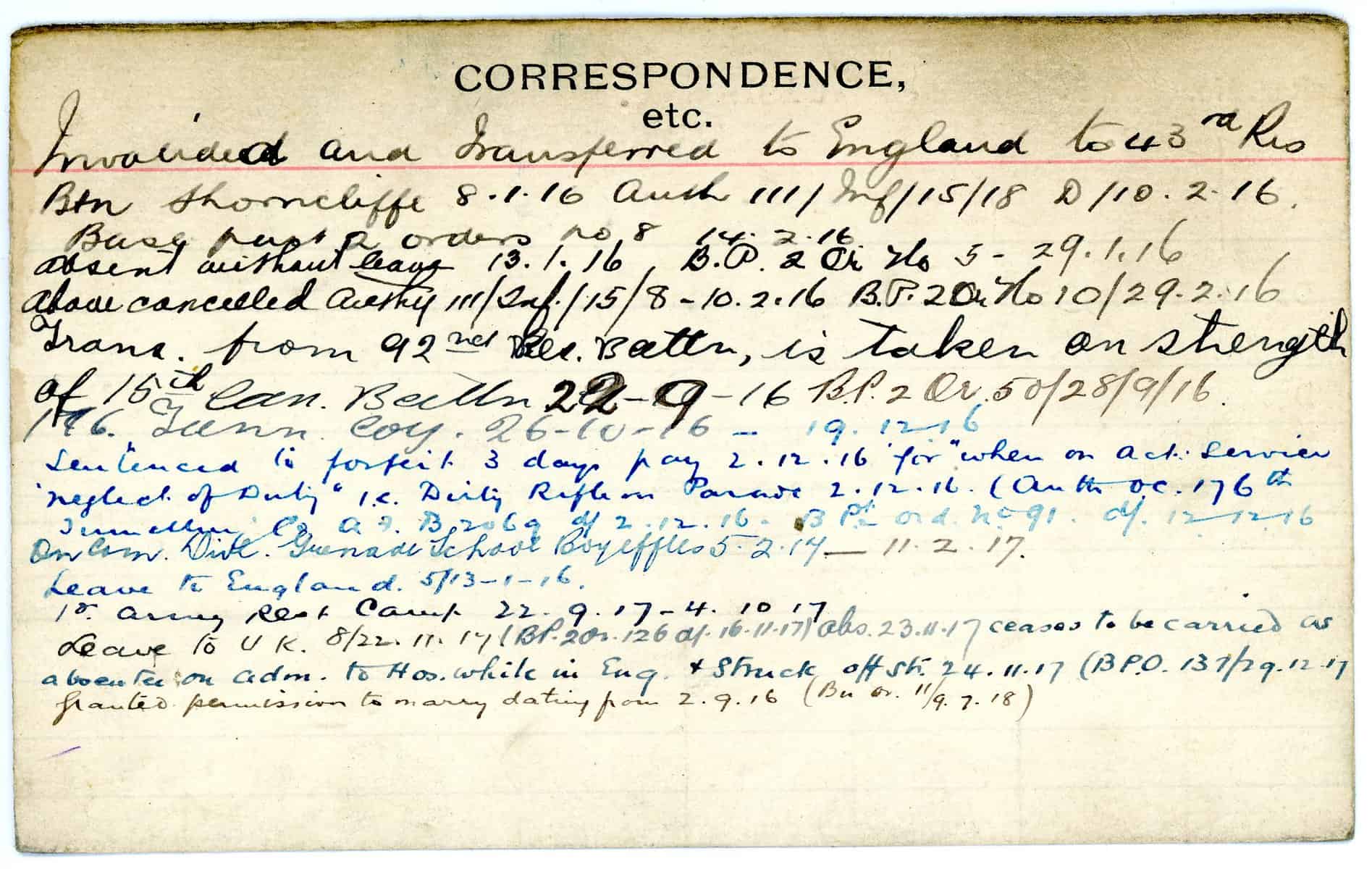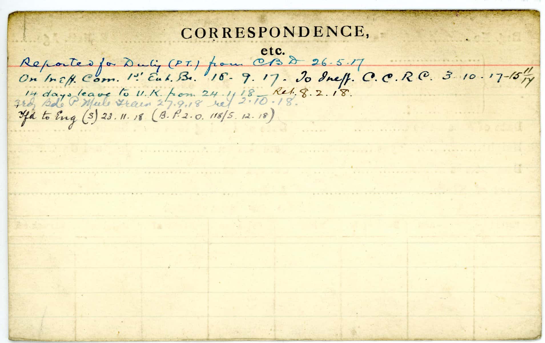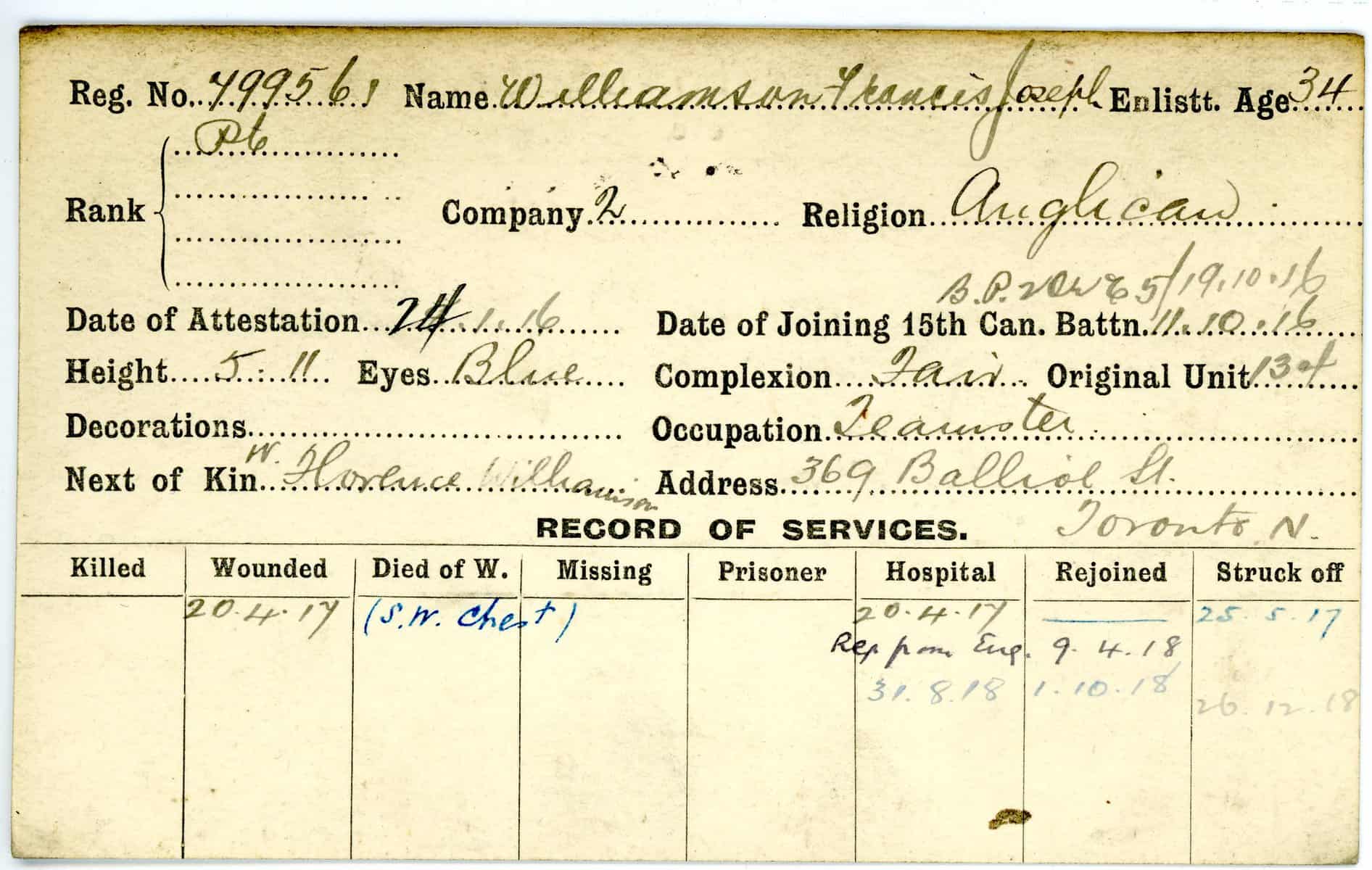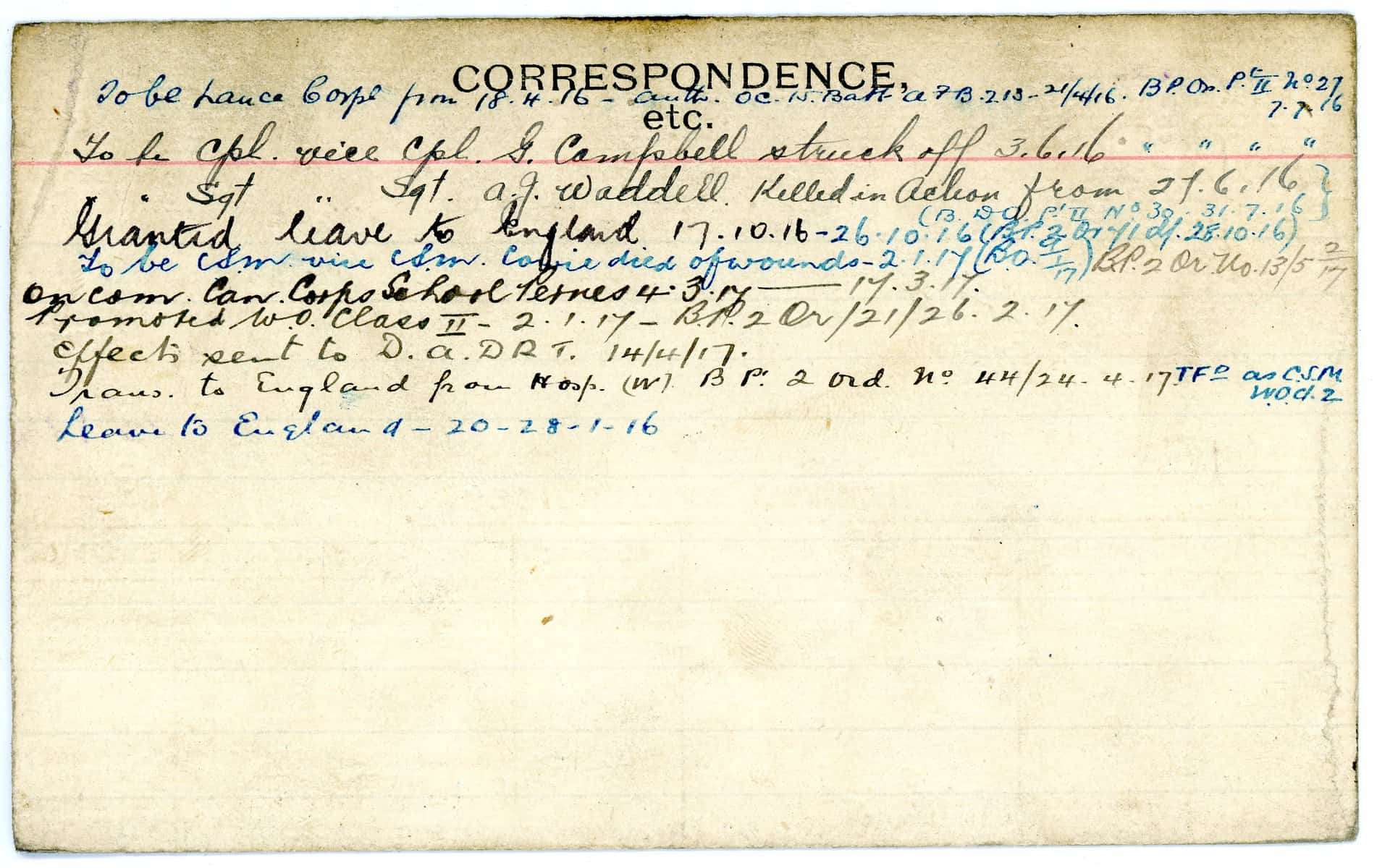 Record of Service Cards – W