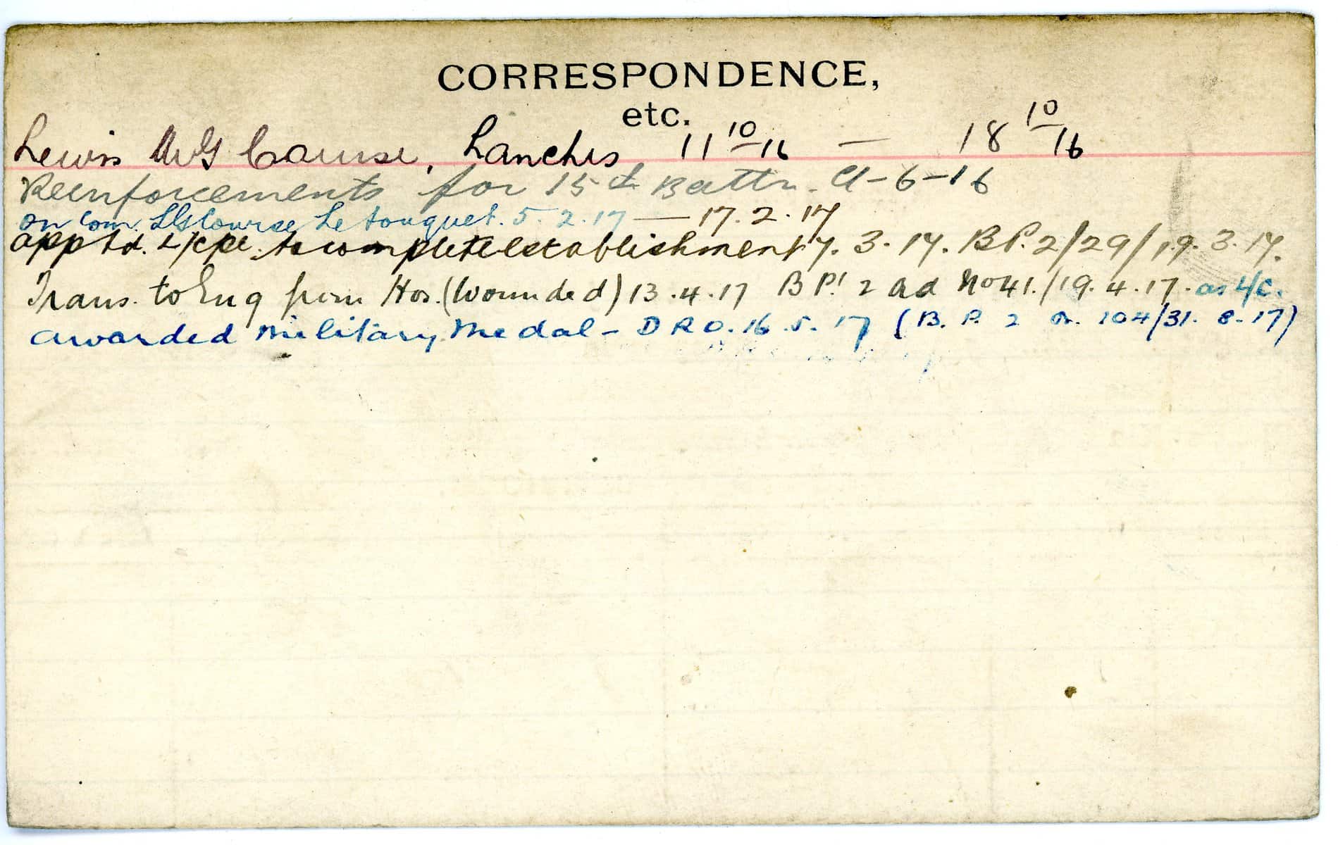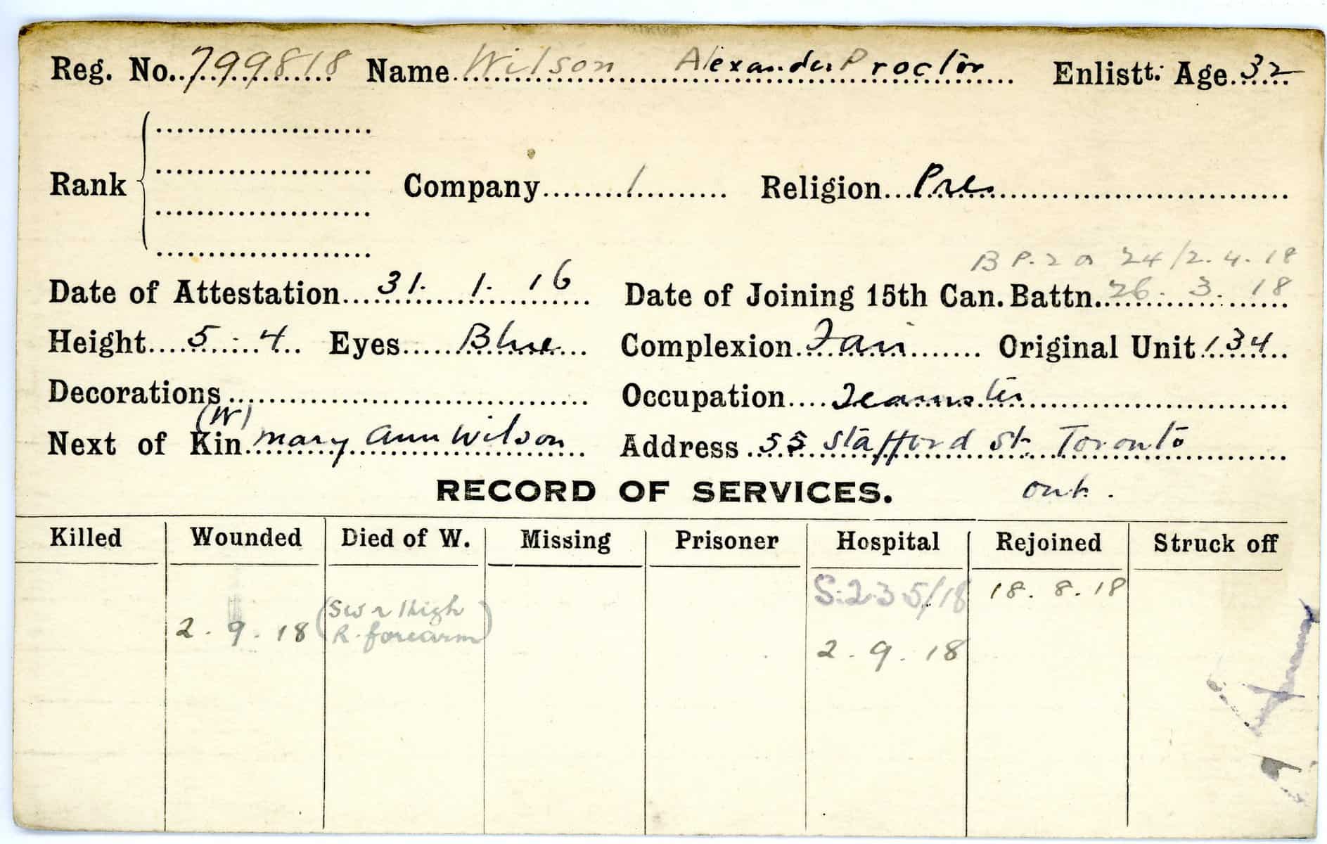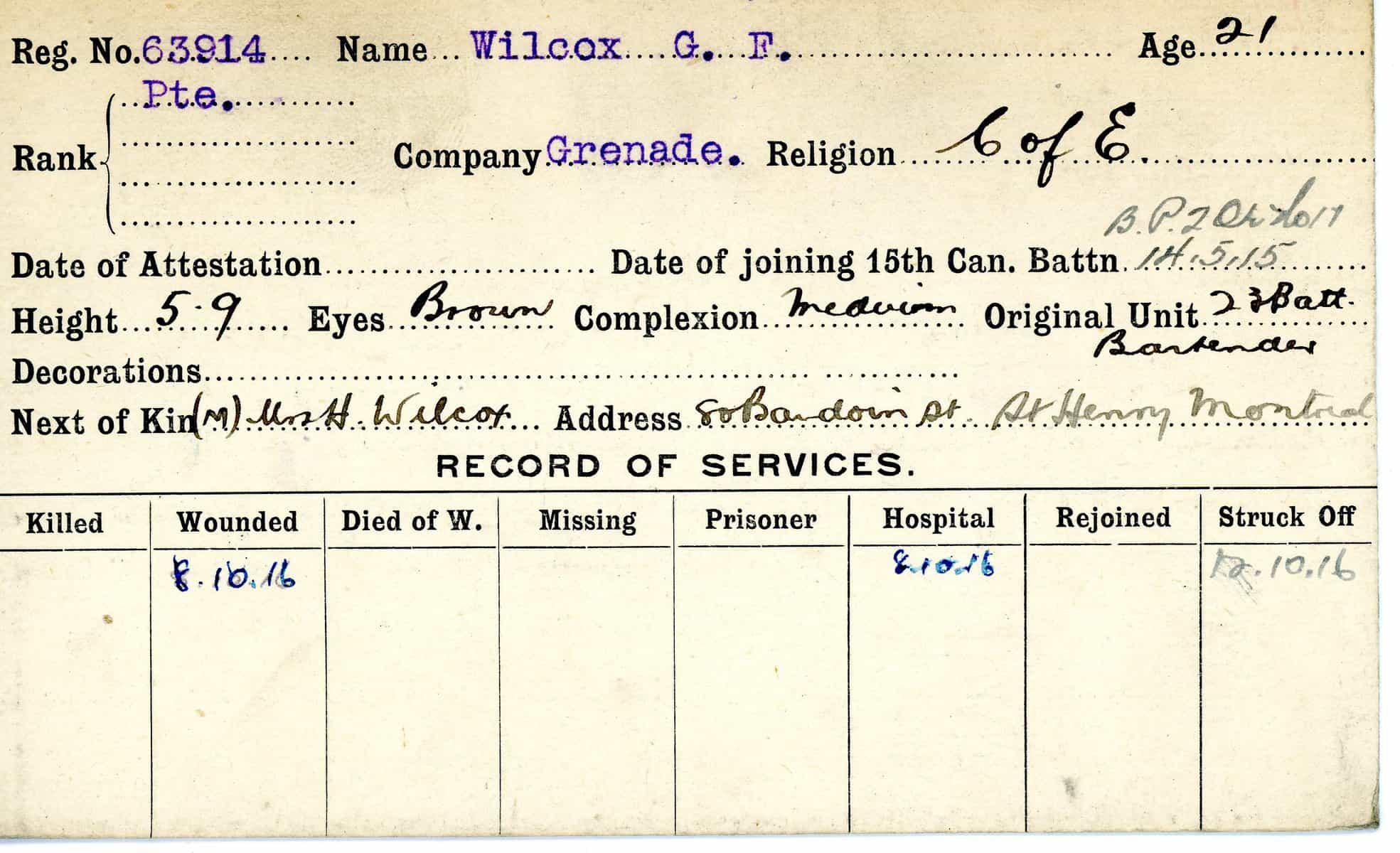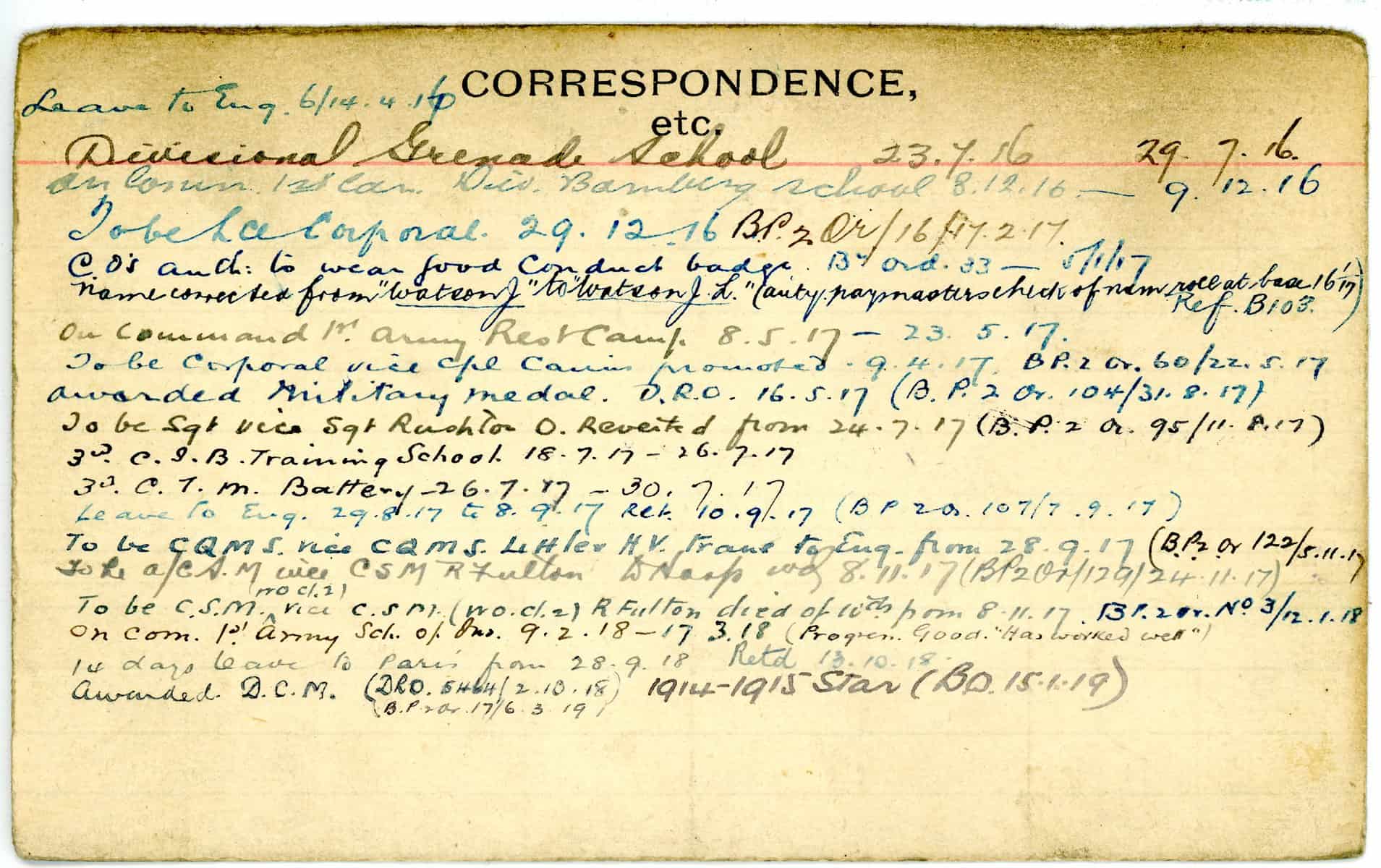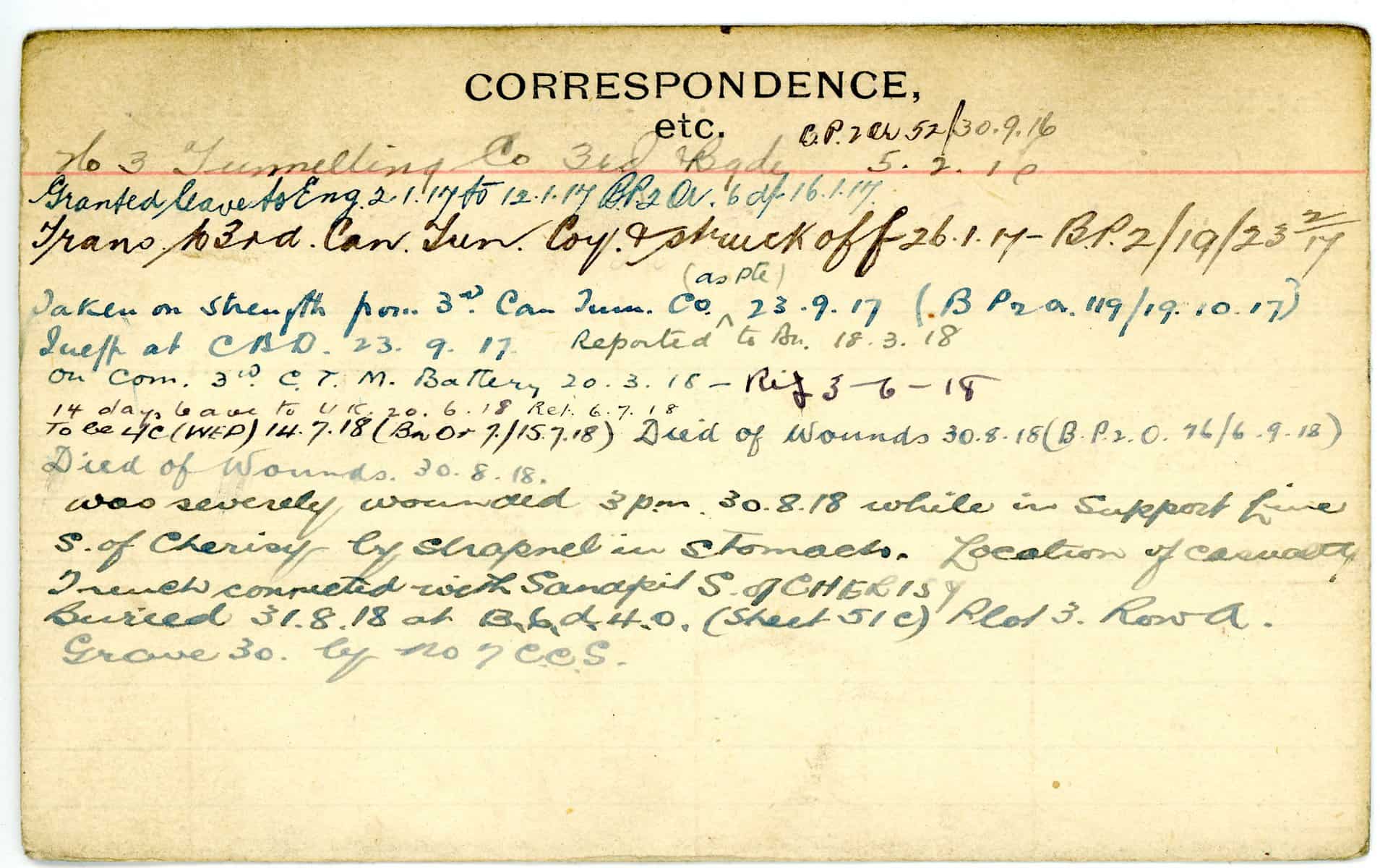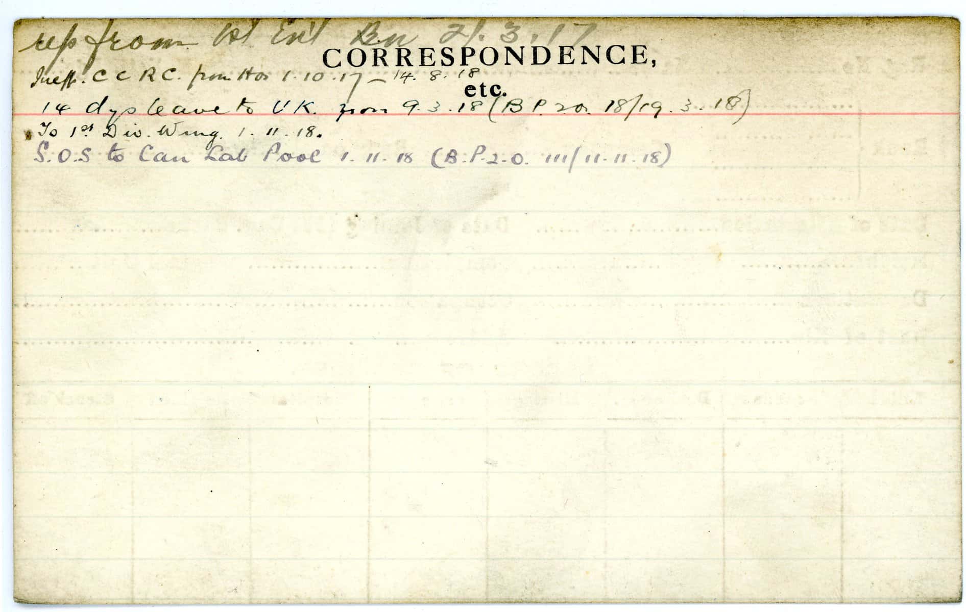 Record of Service Cards – W
