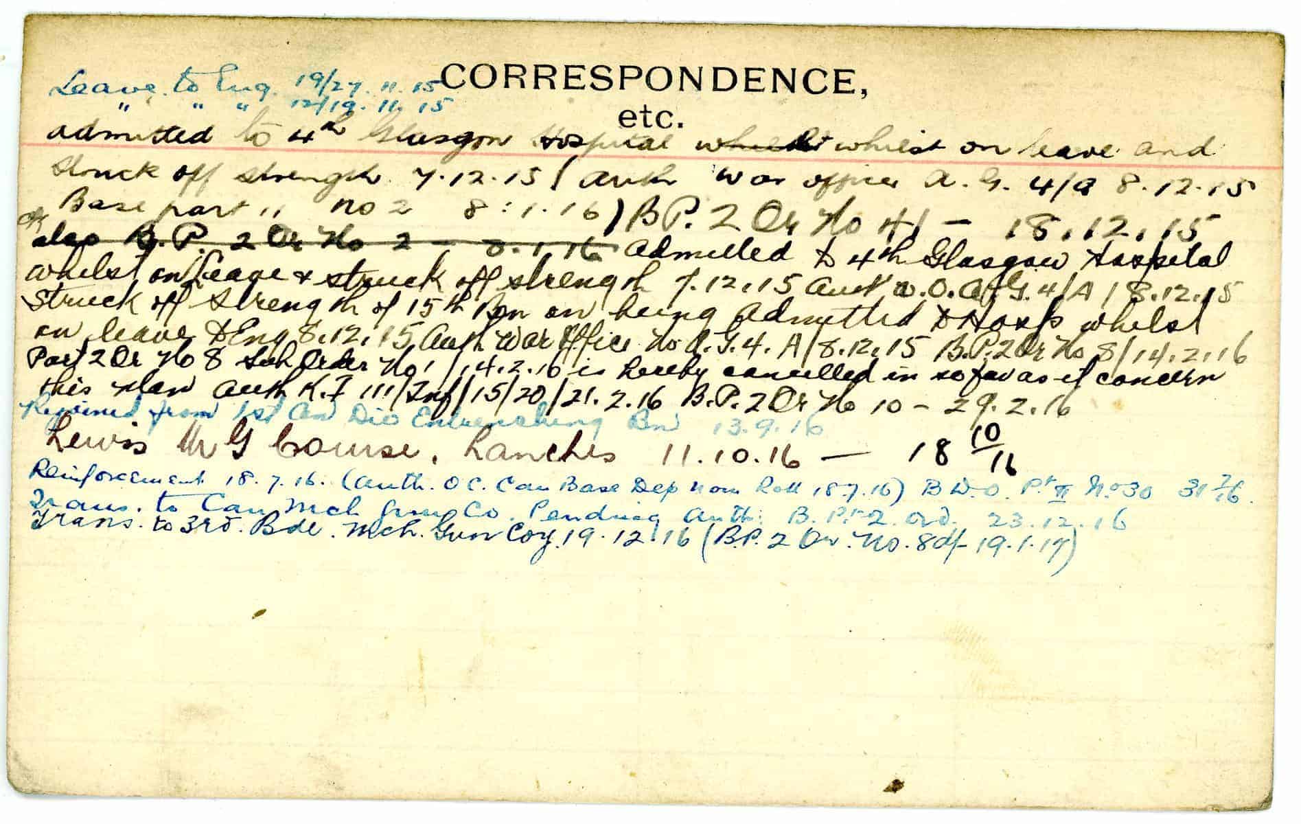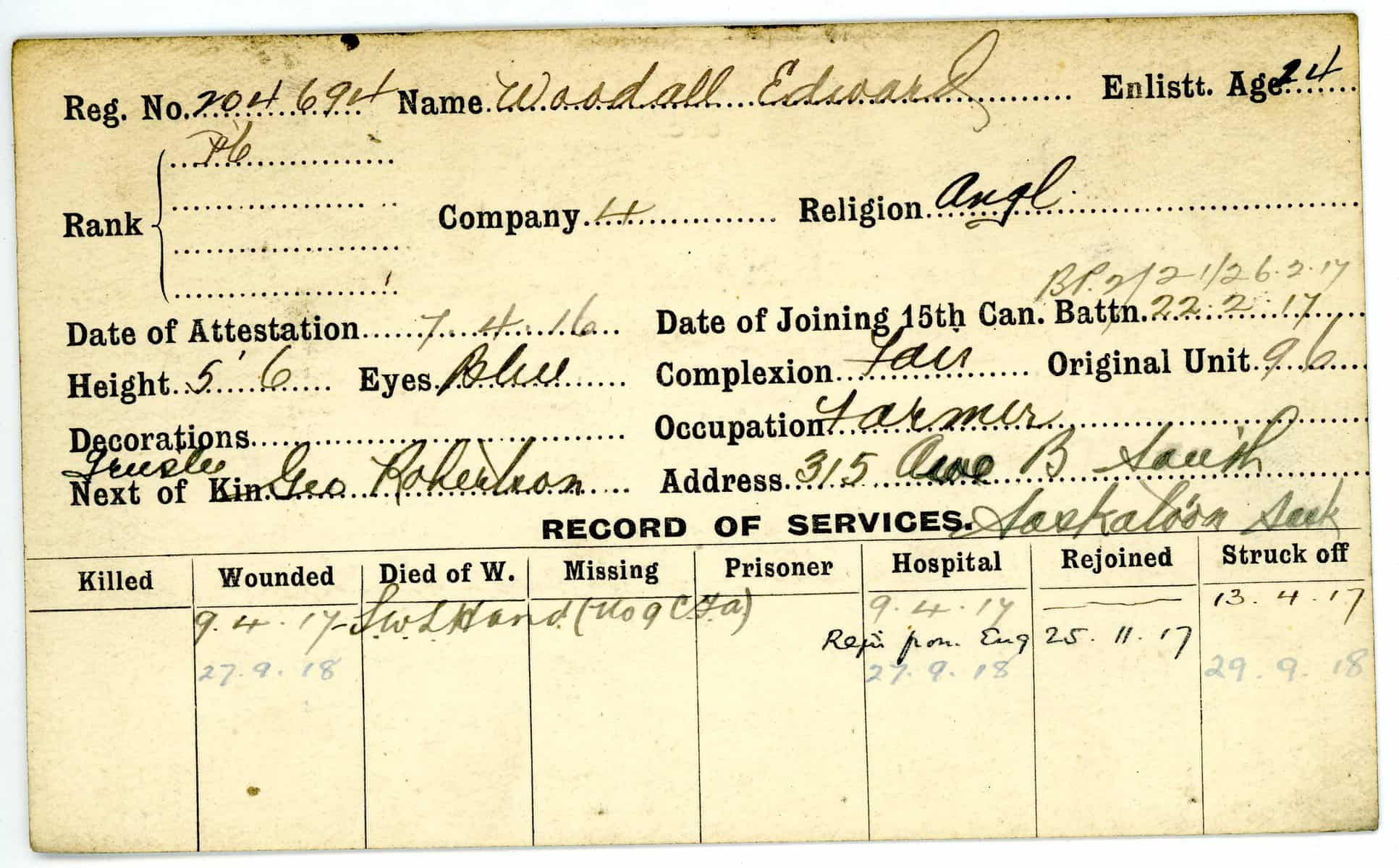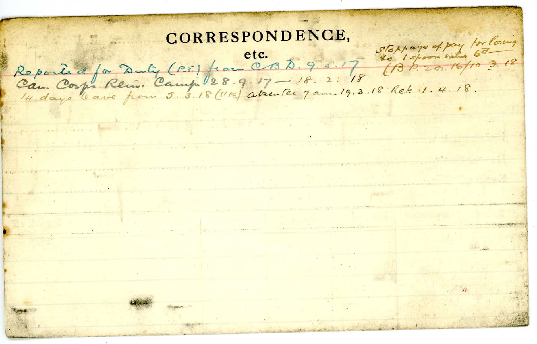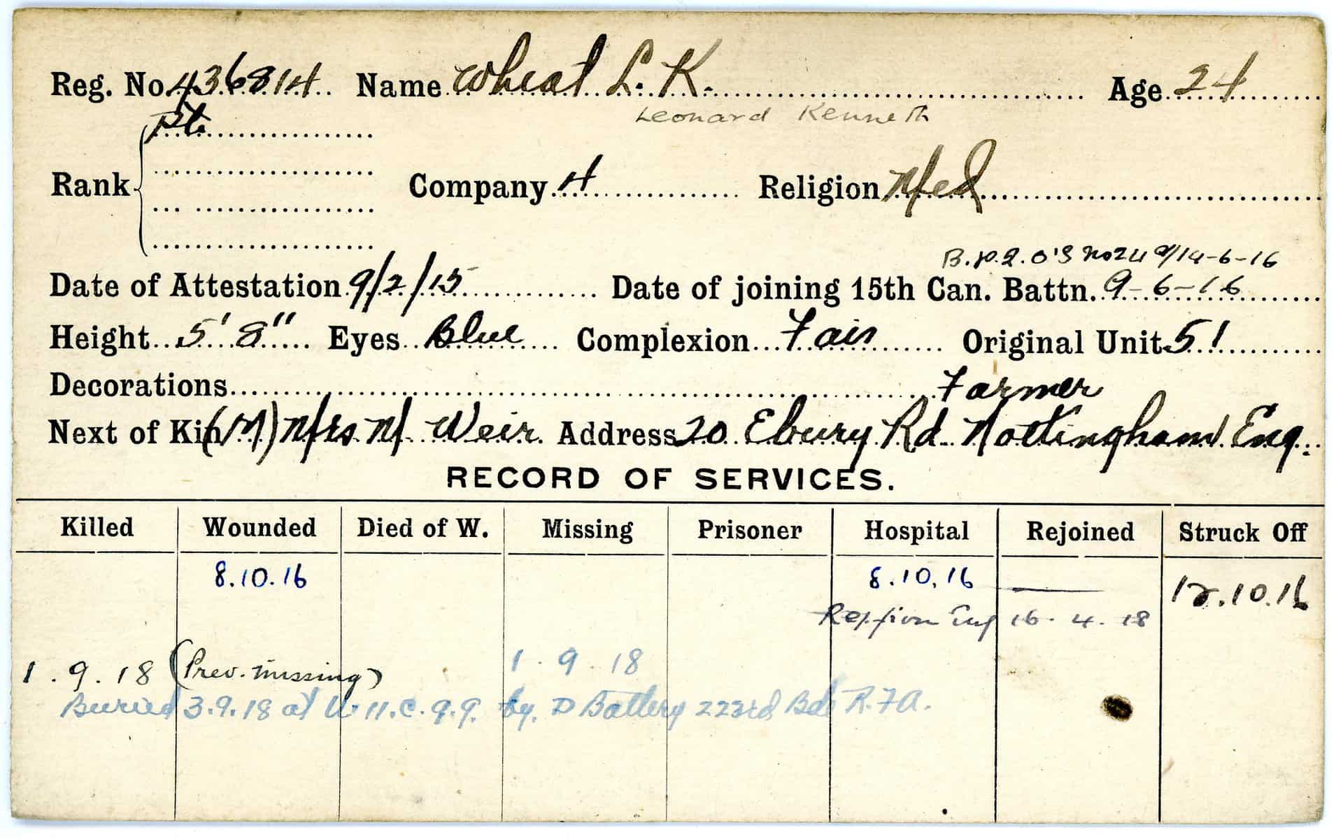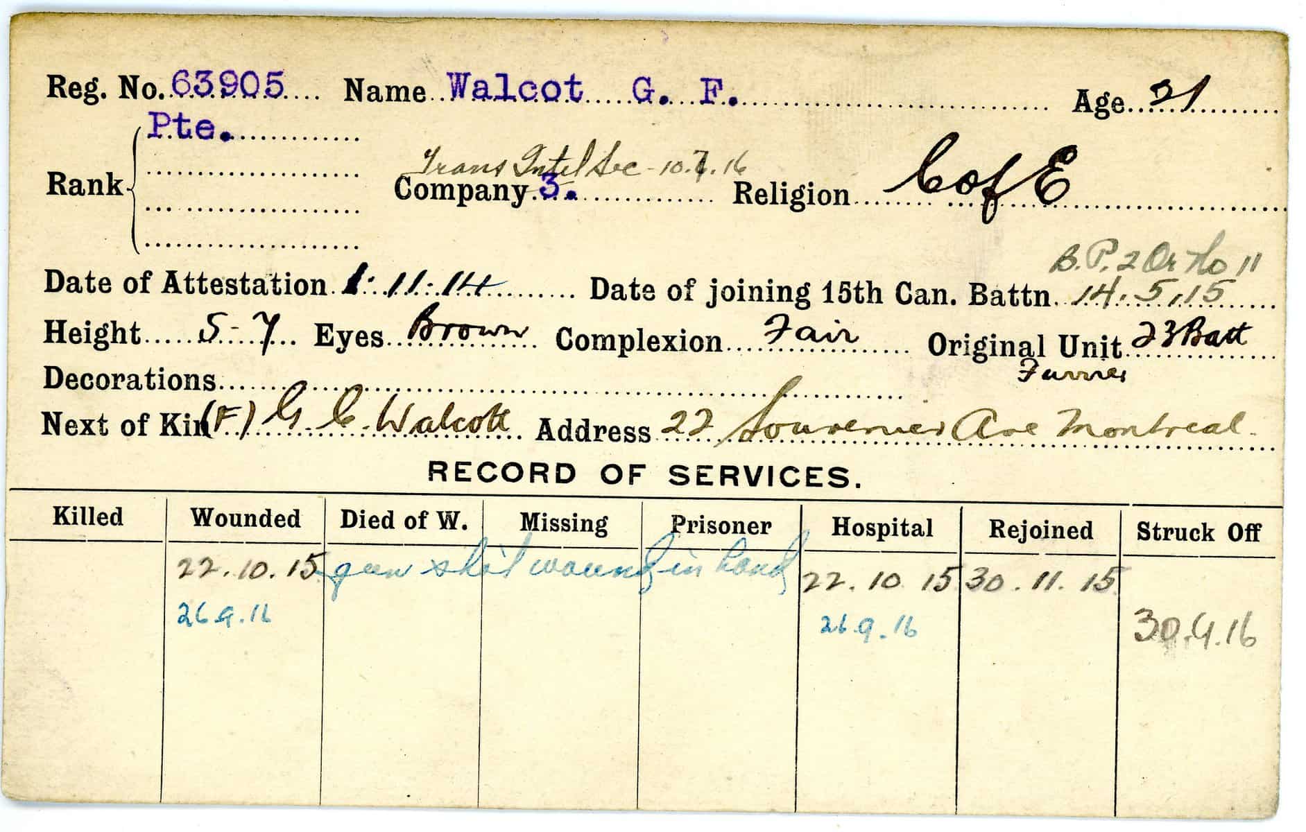 Record of Service Cards – W