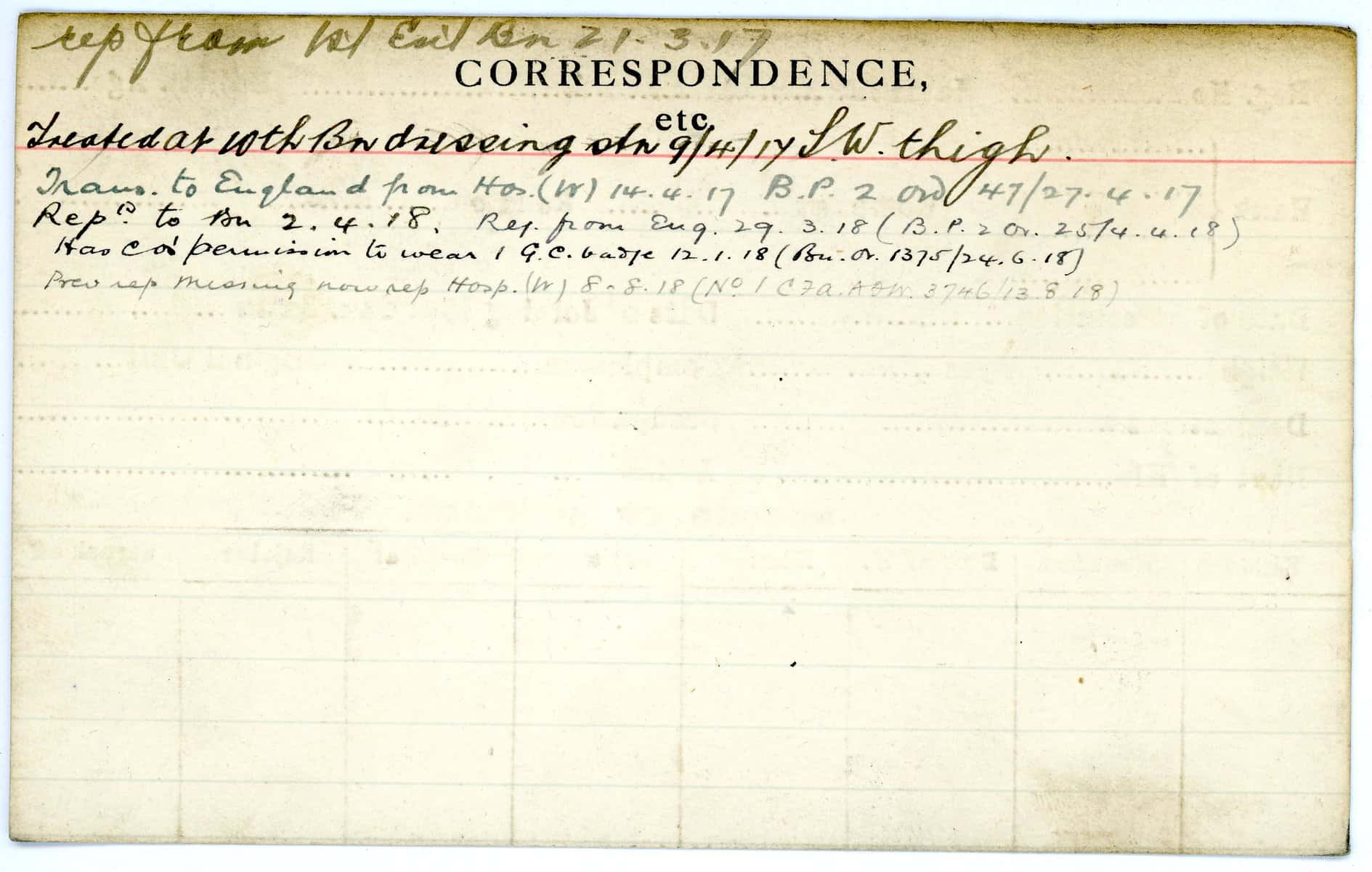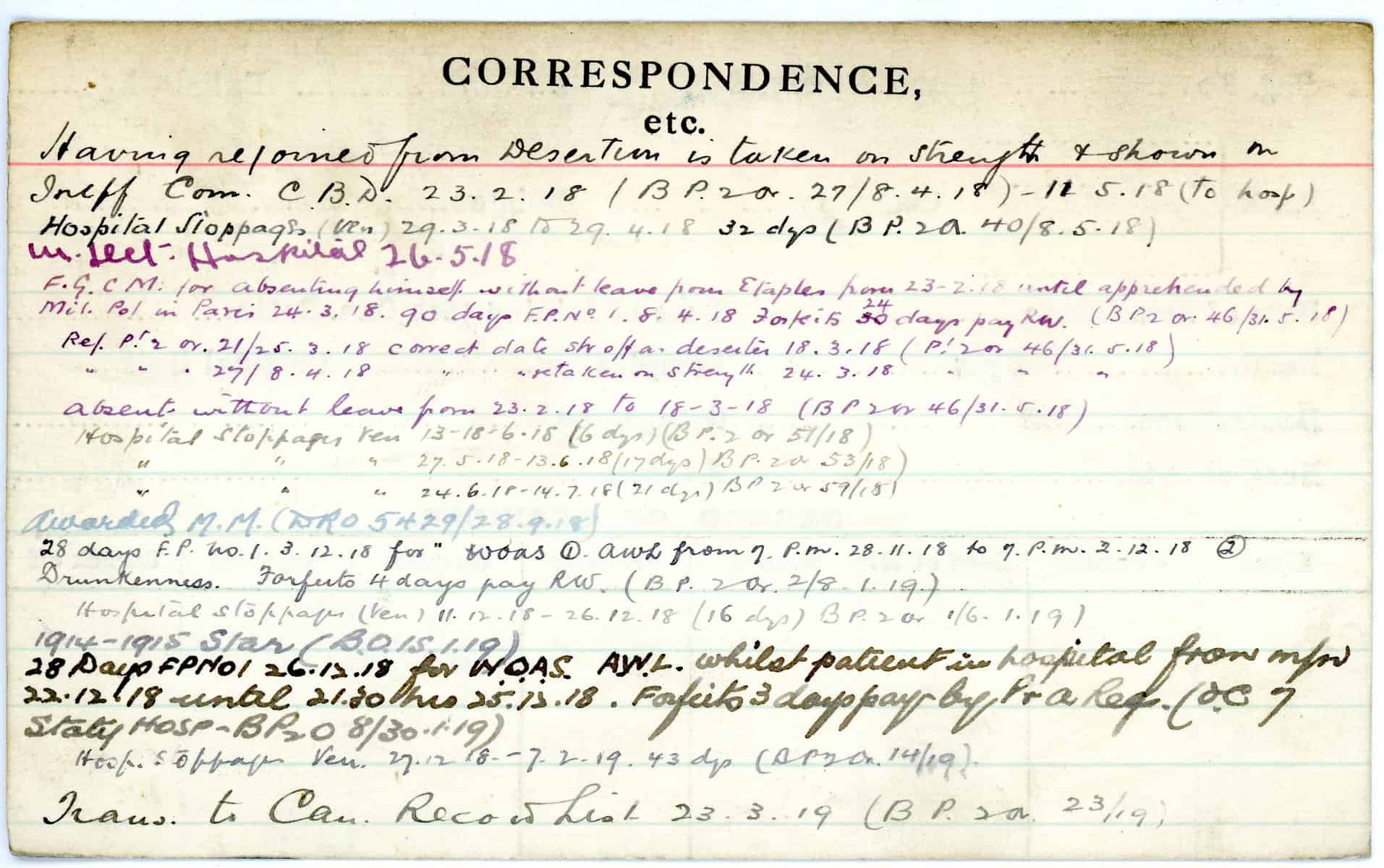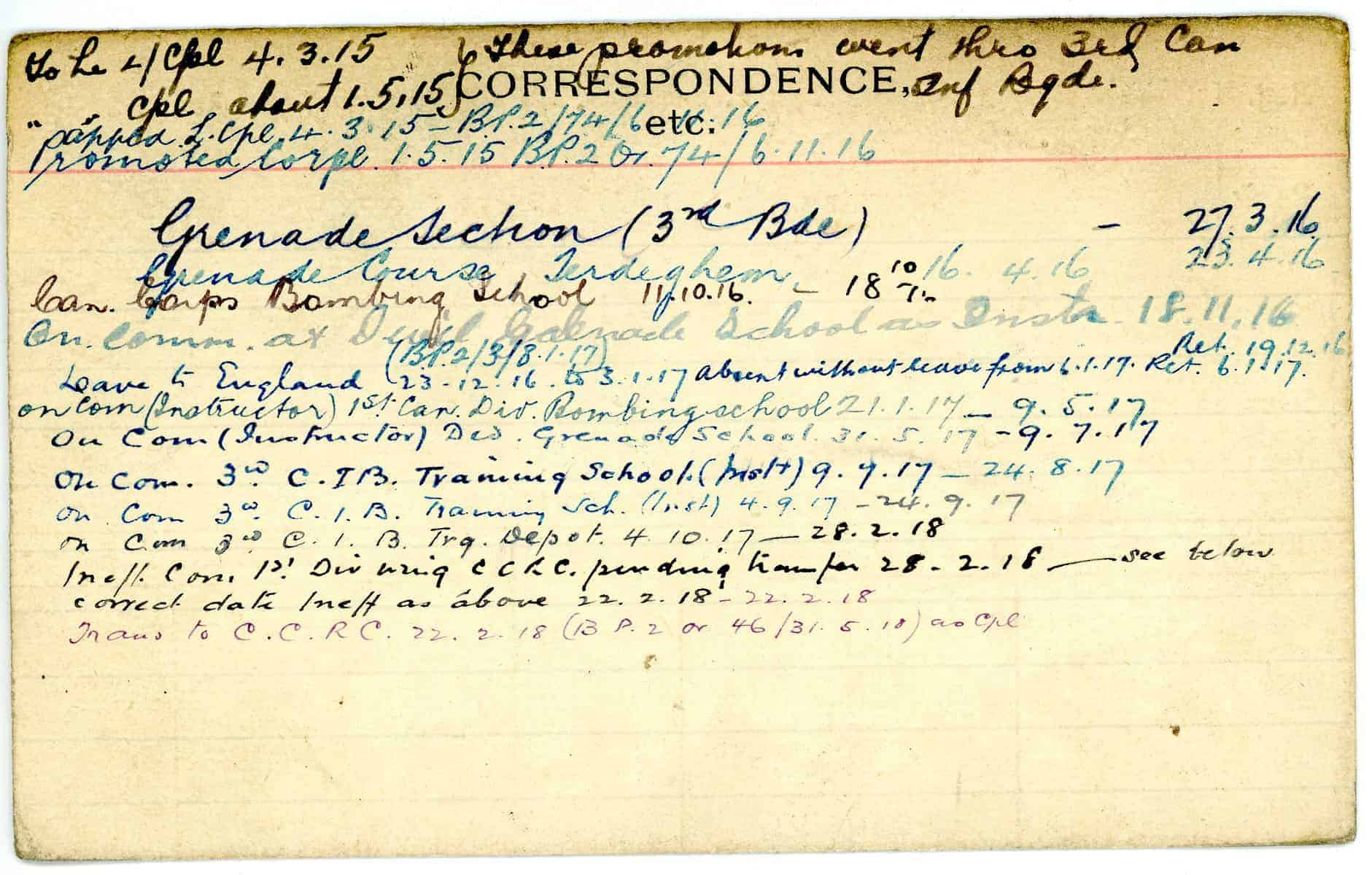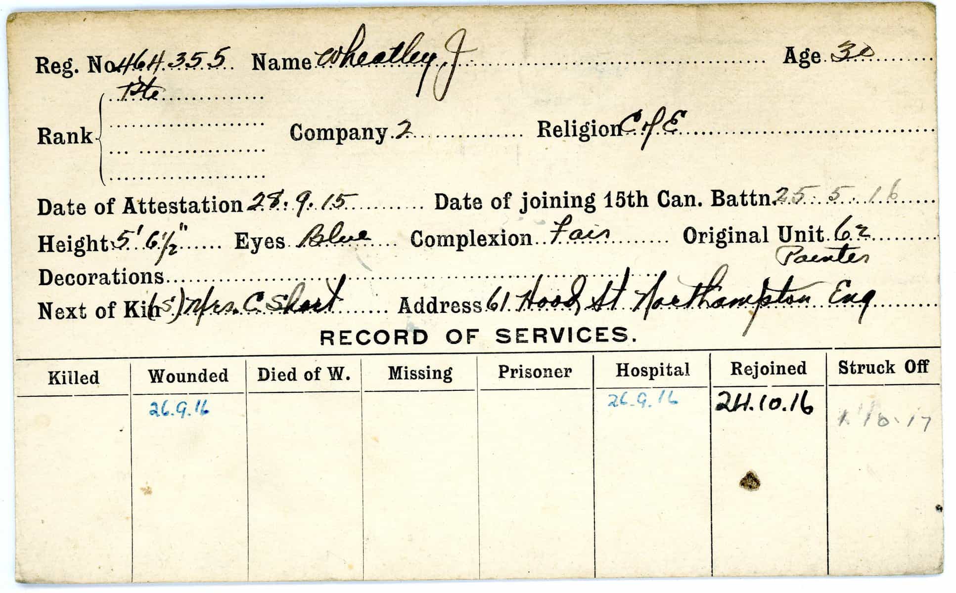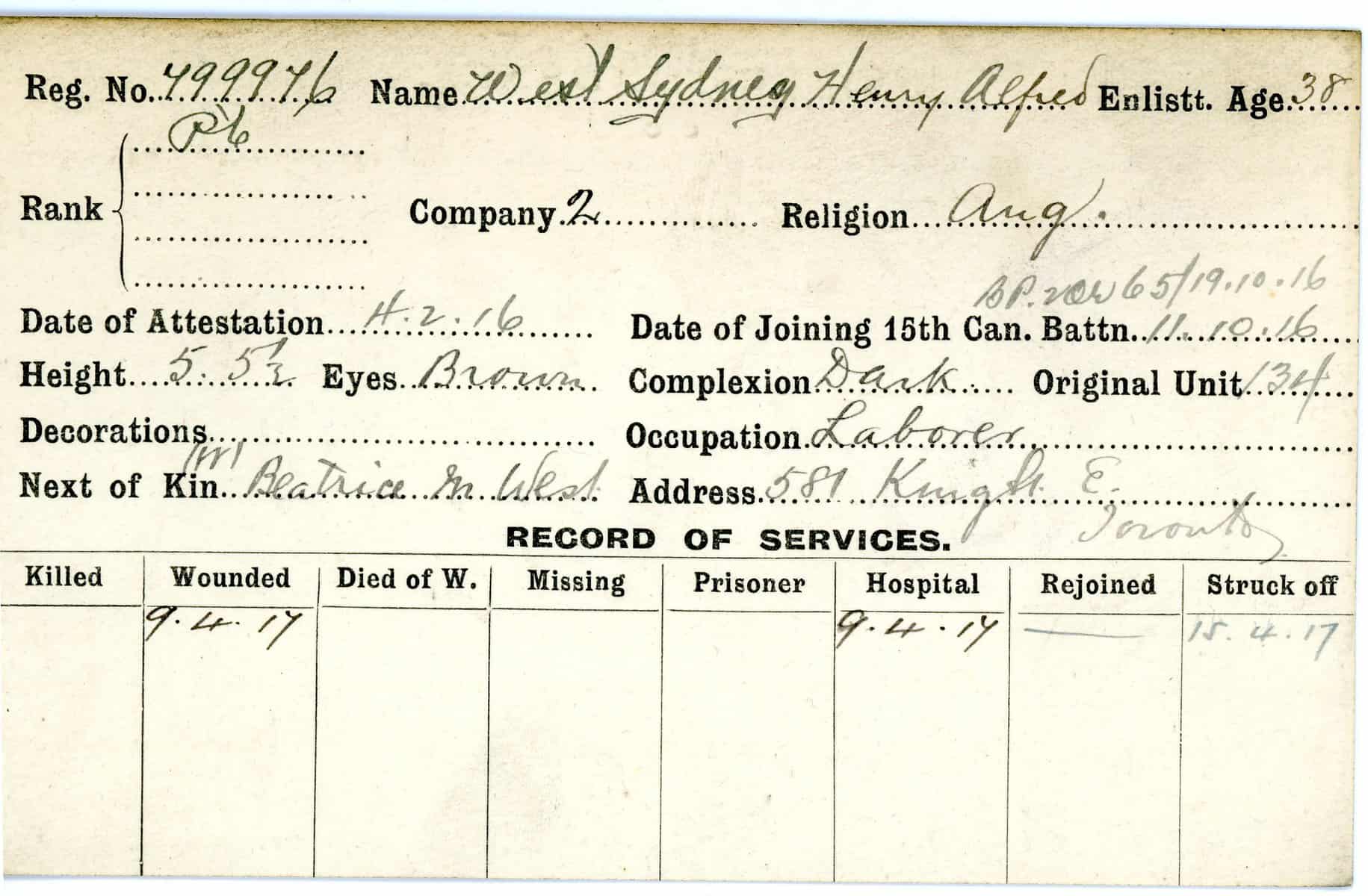 Record of Service Cards – W