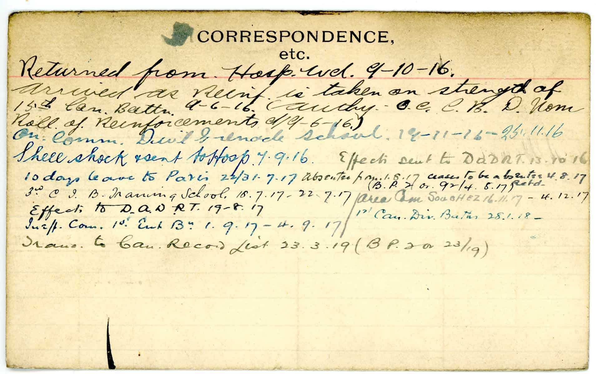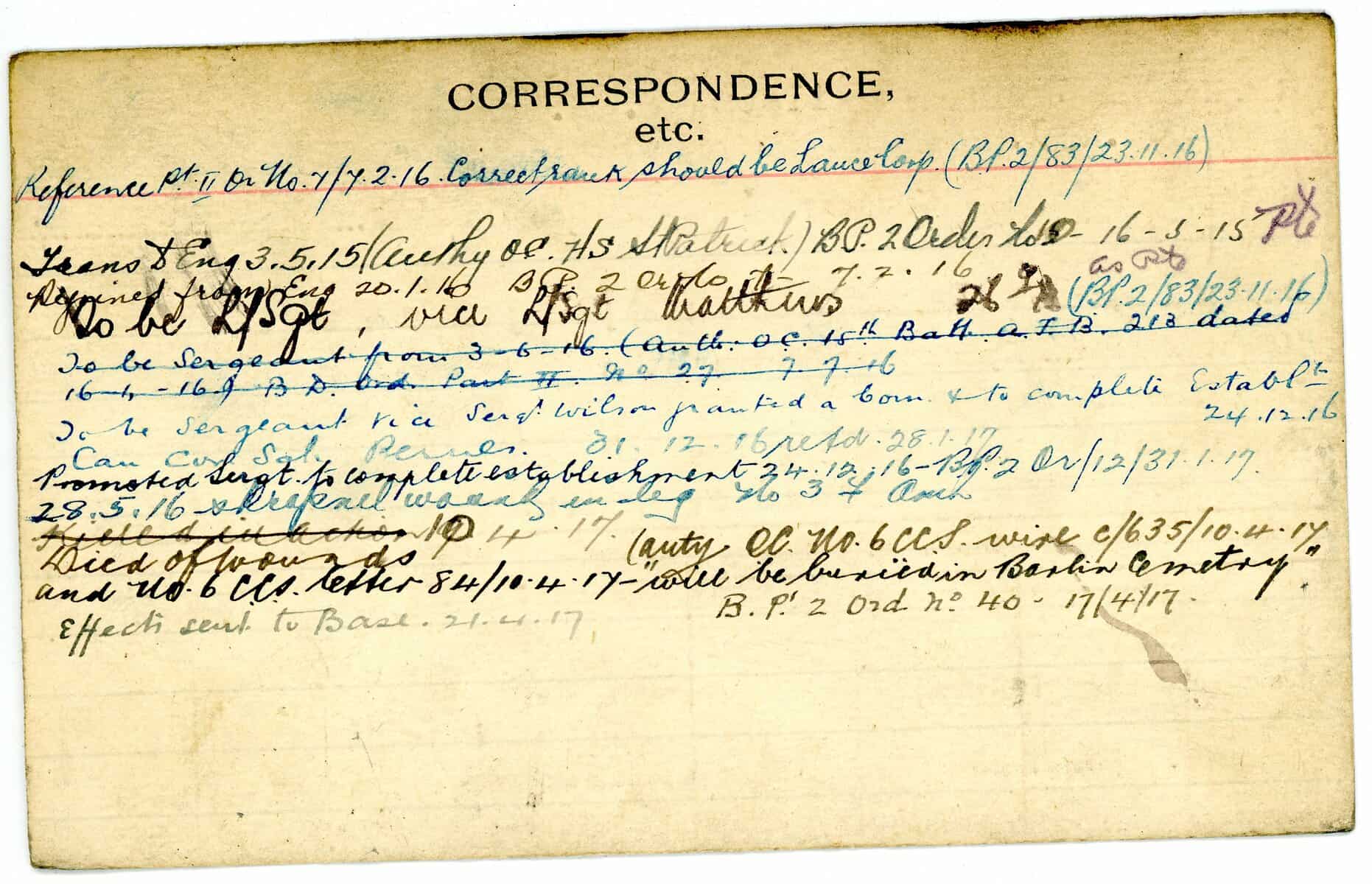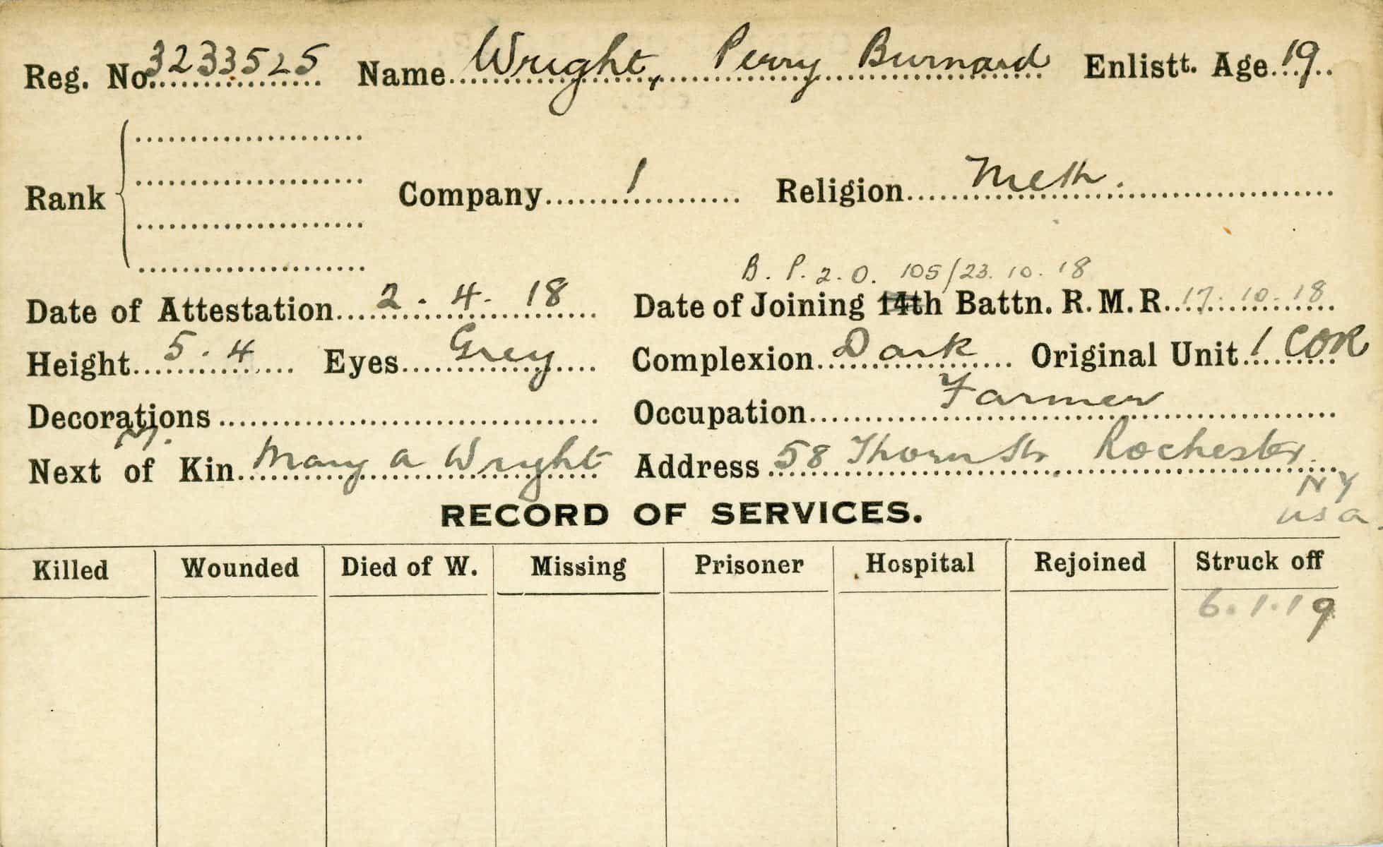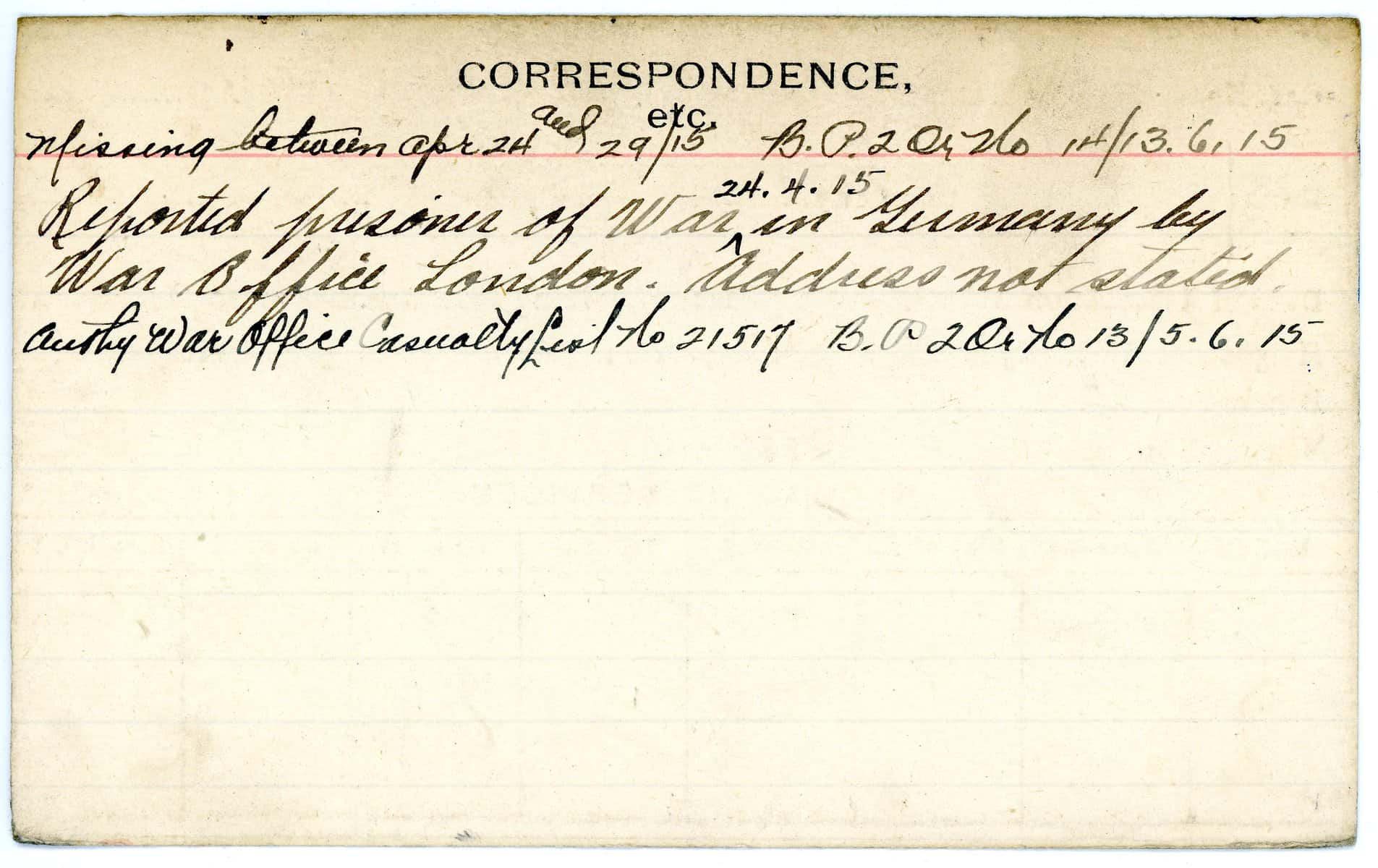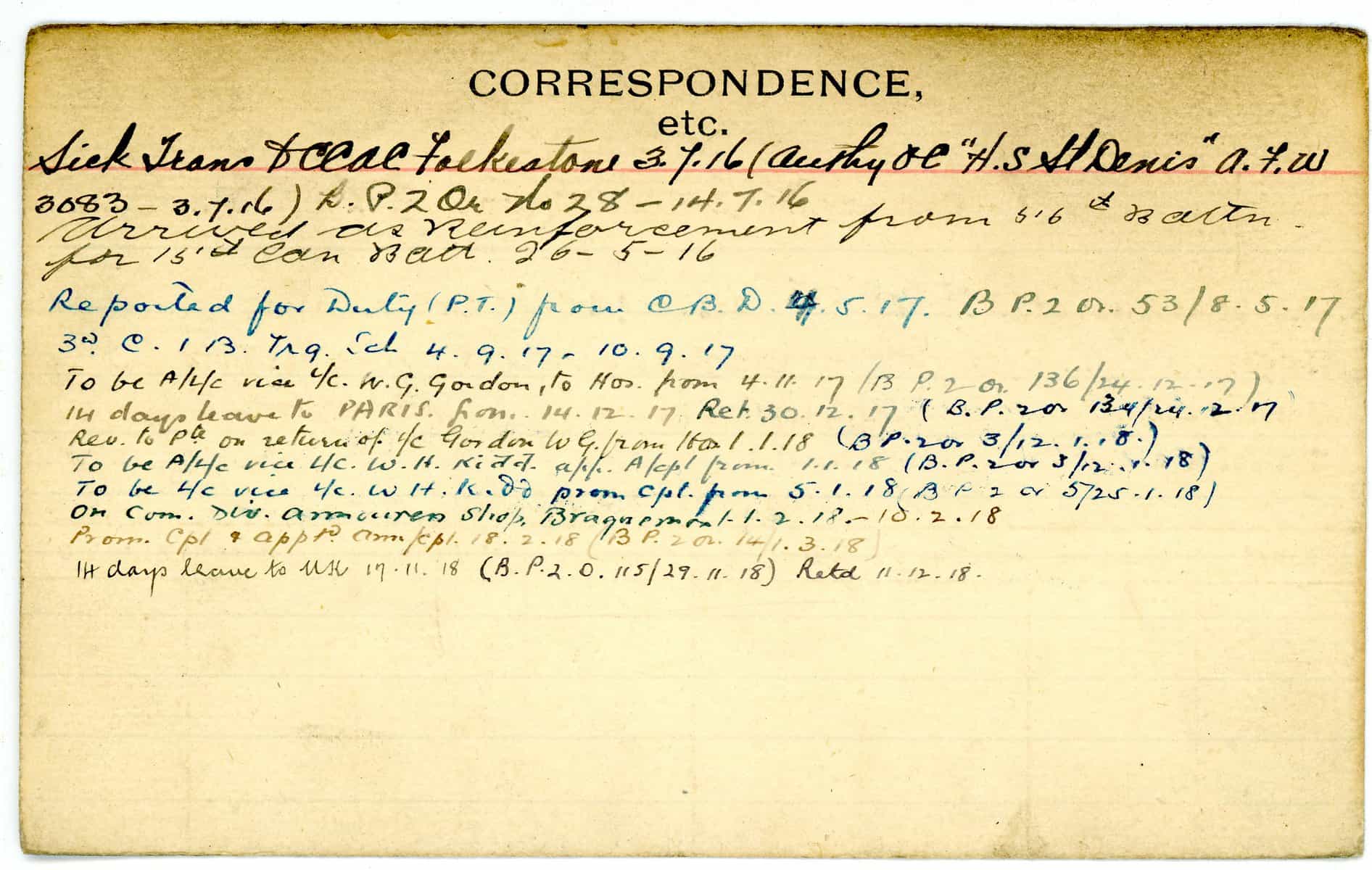 Record of Service Cards – W