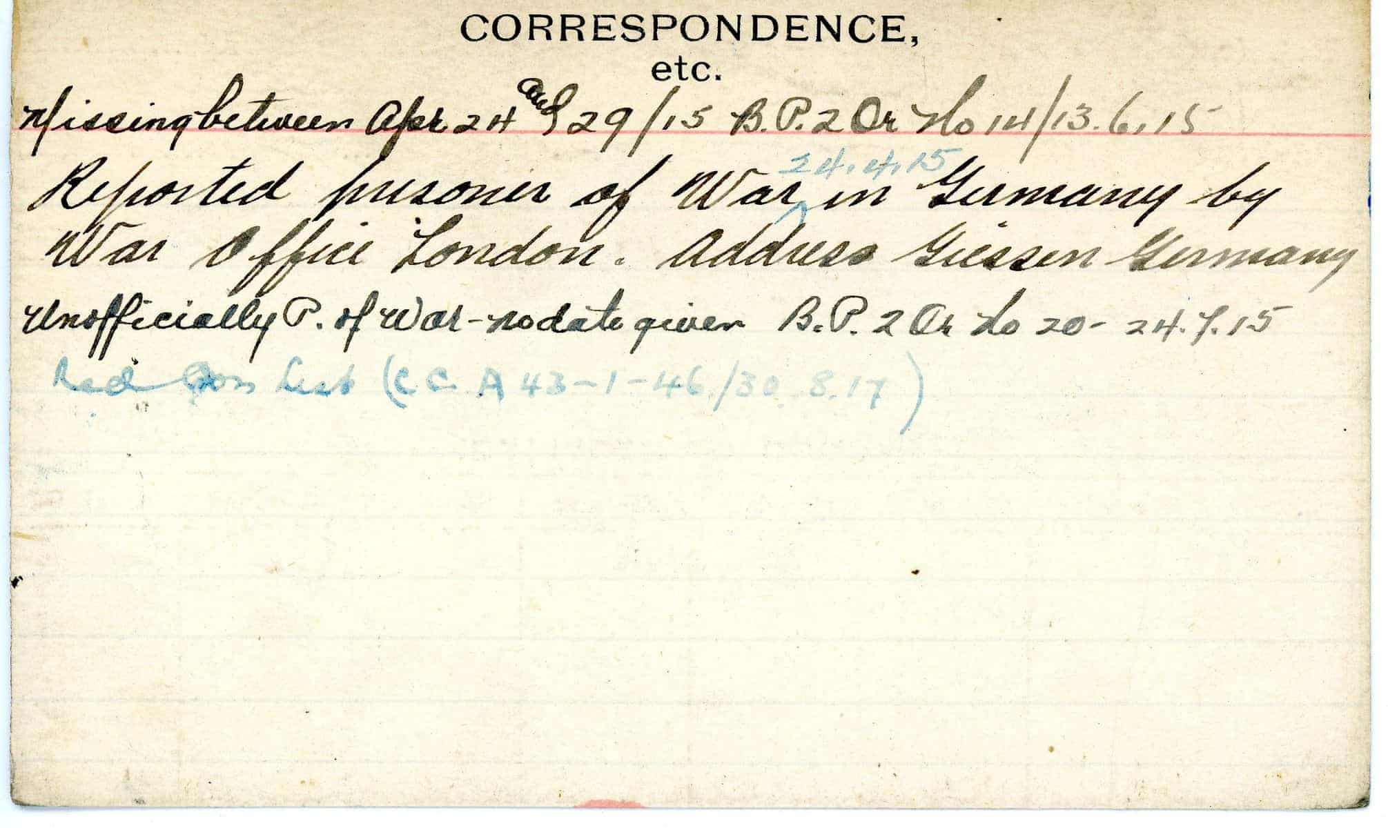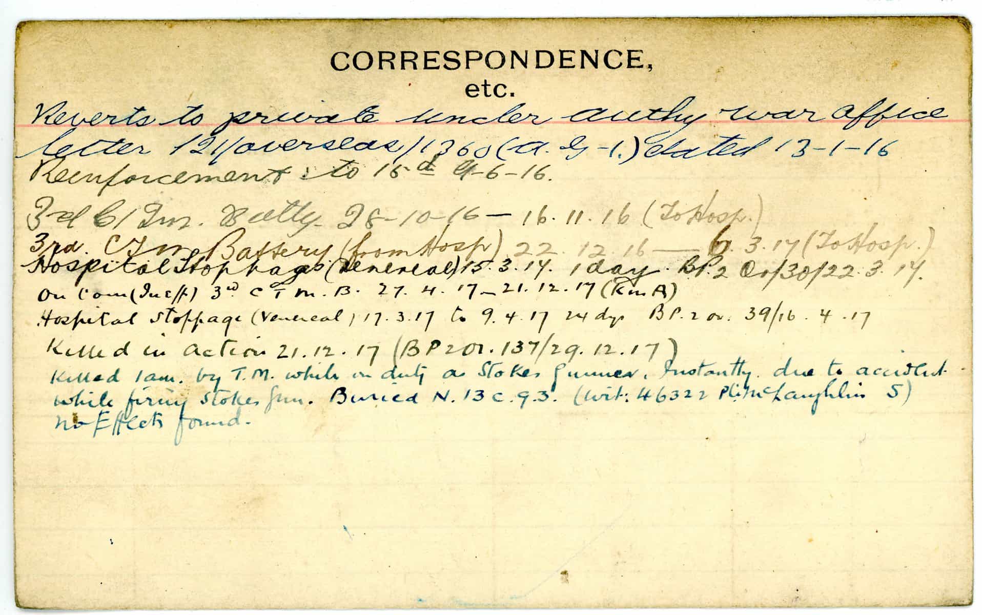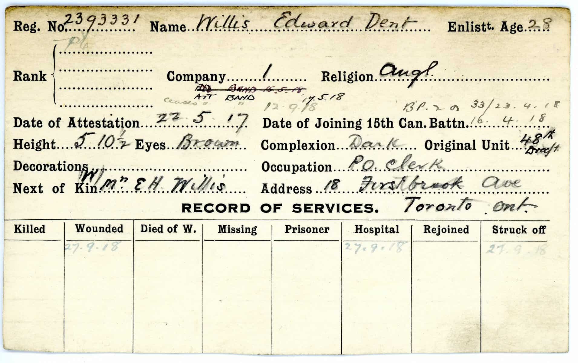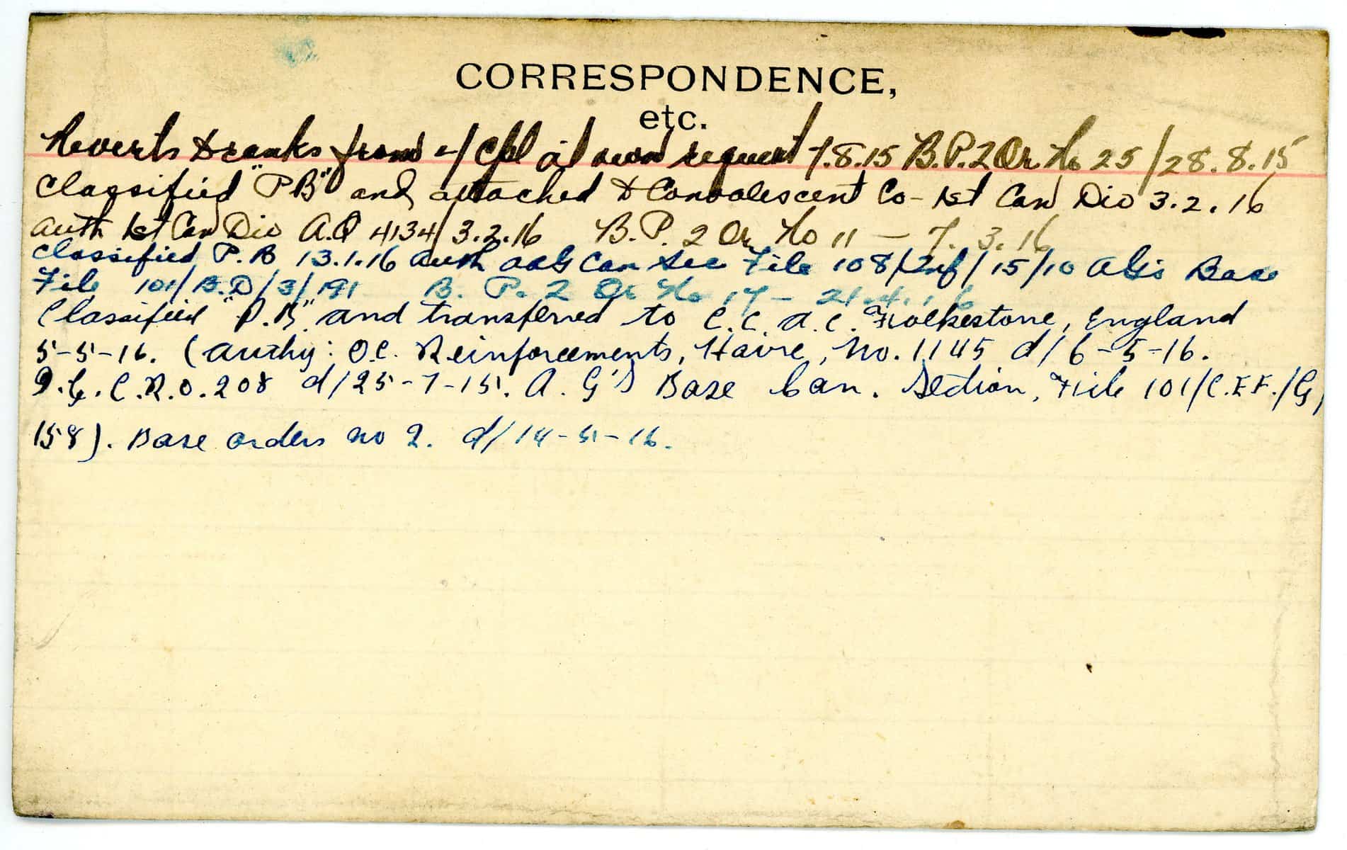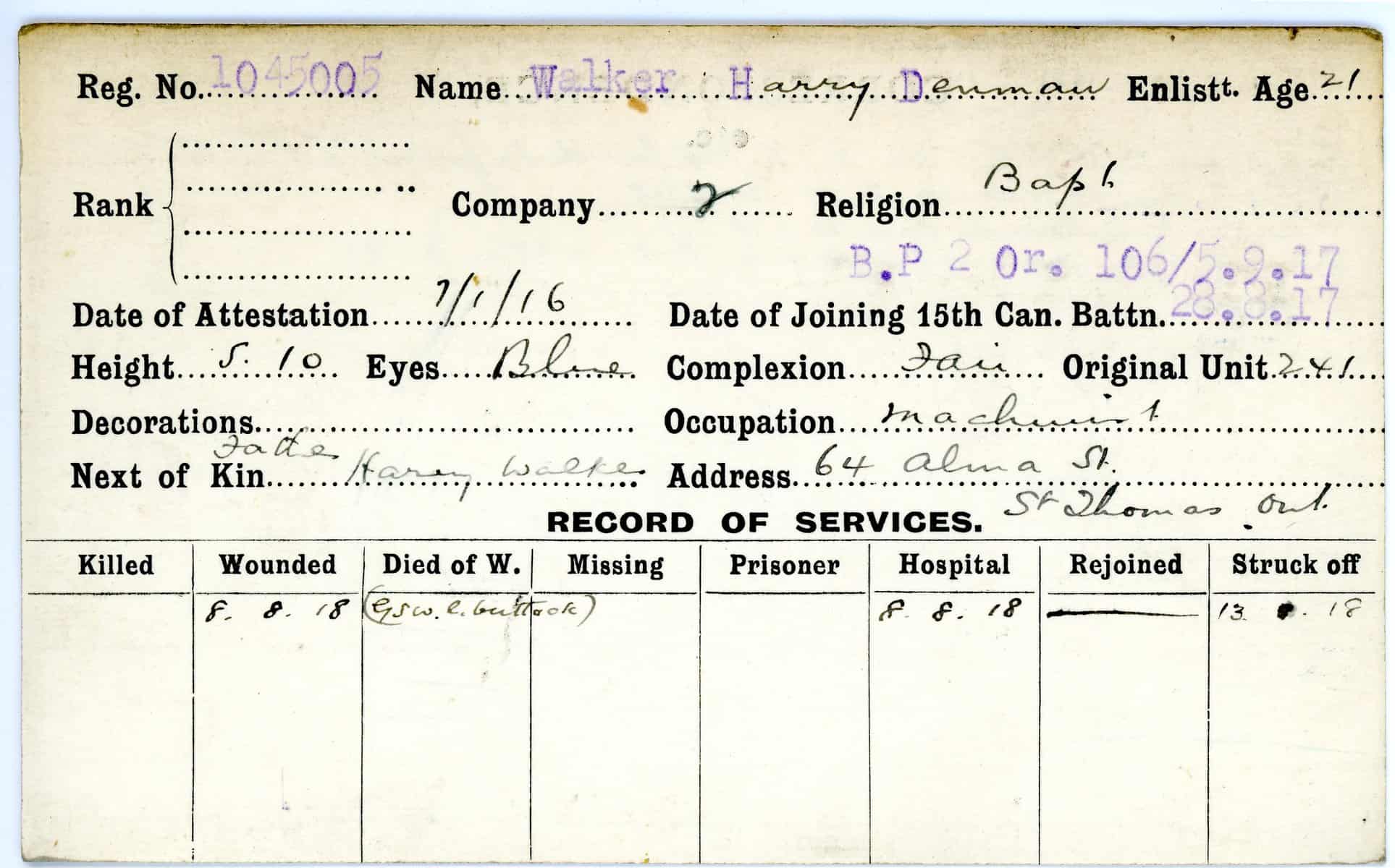 Record of Service Cards – W