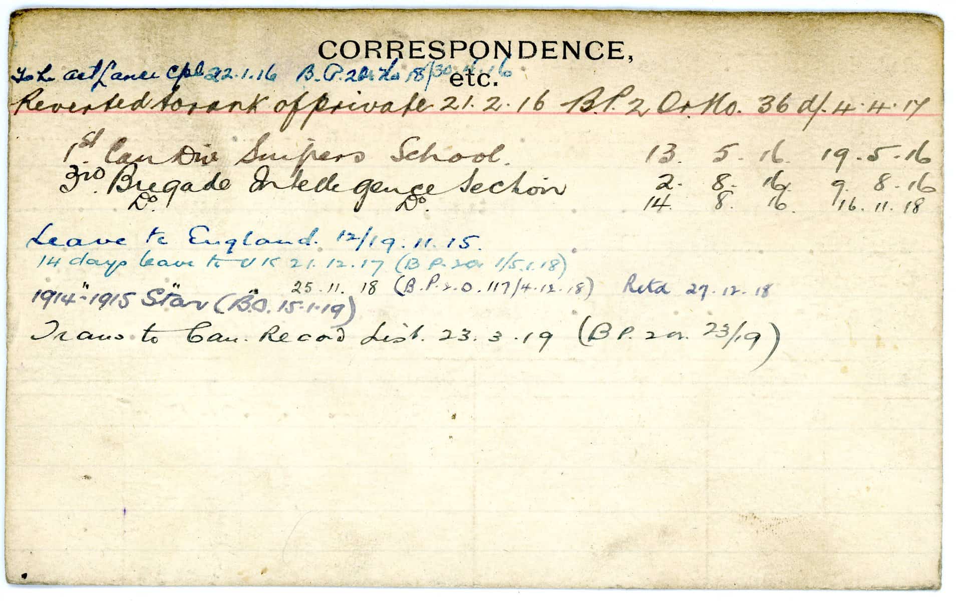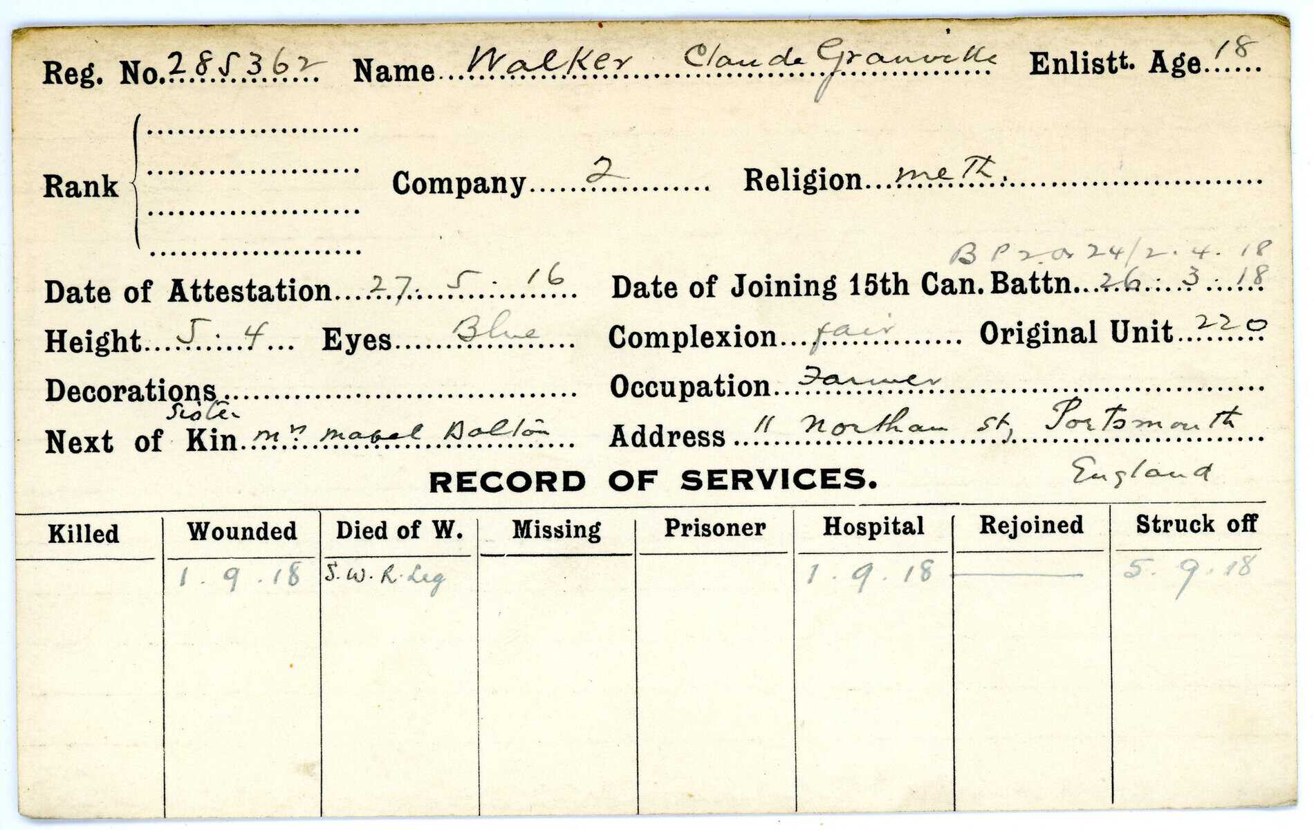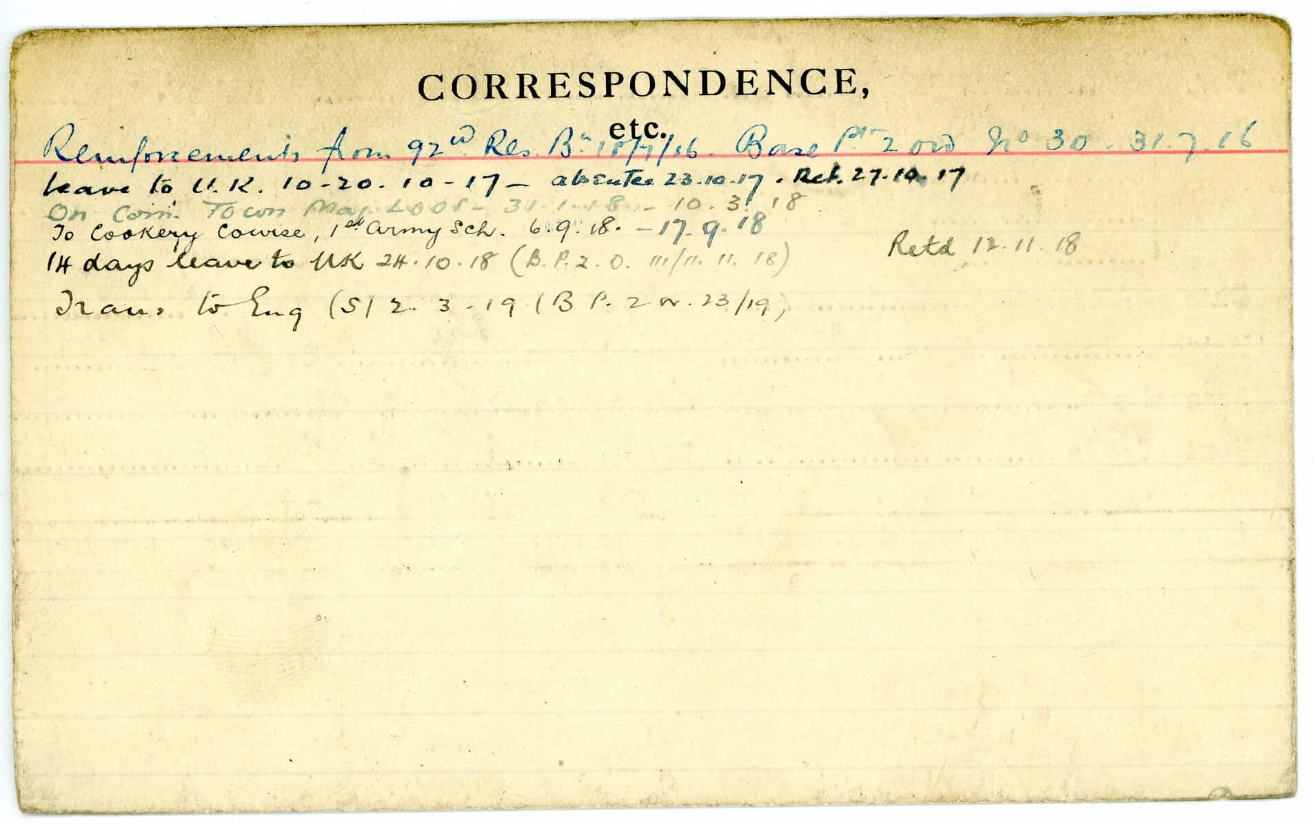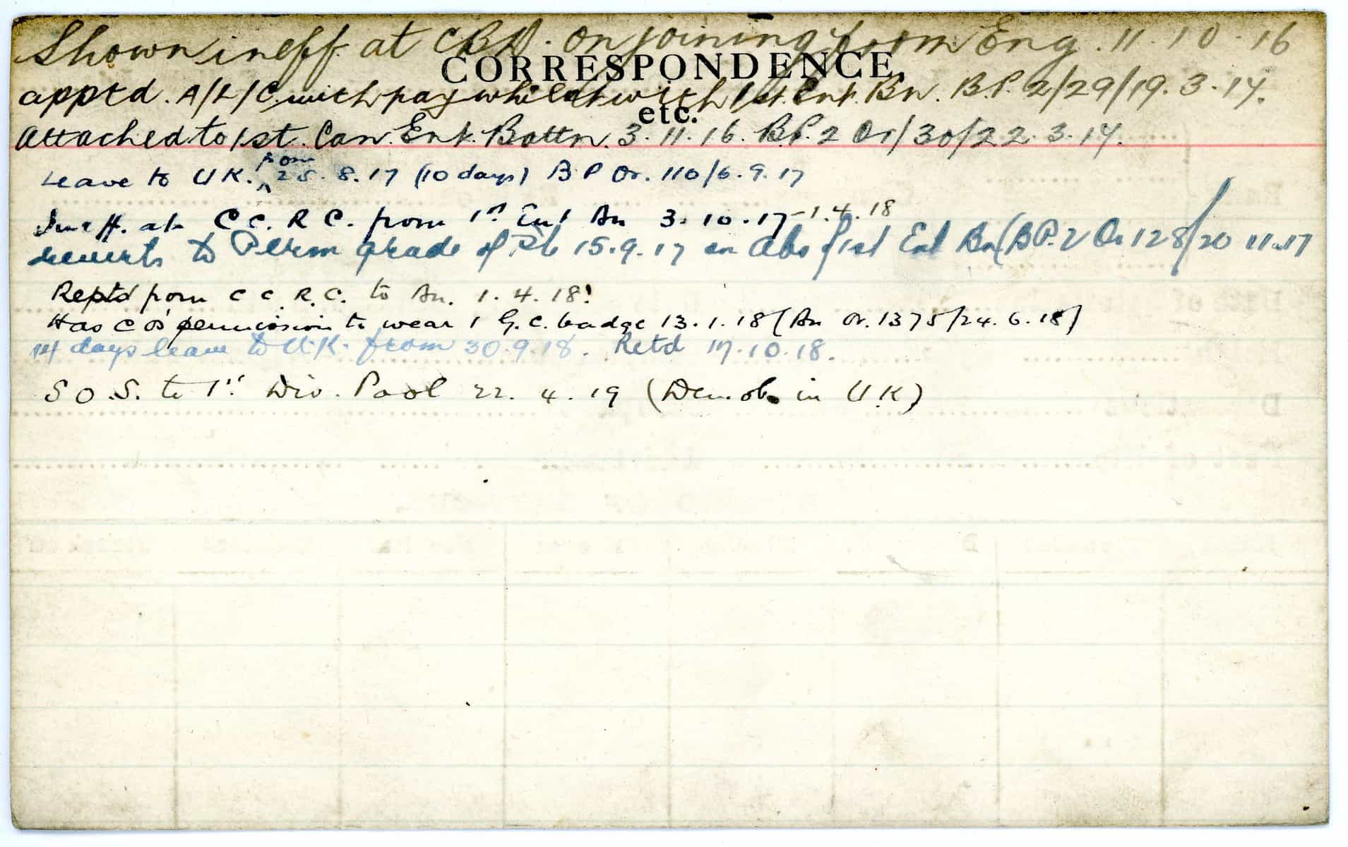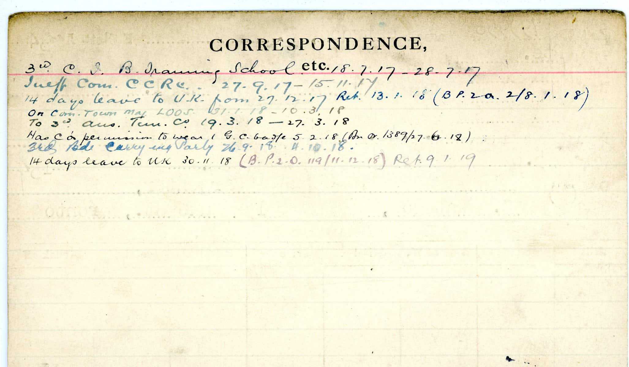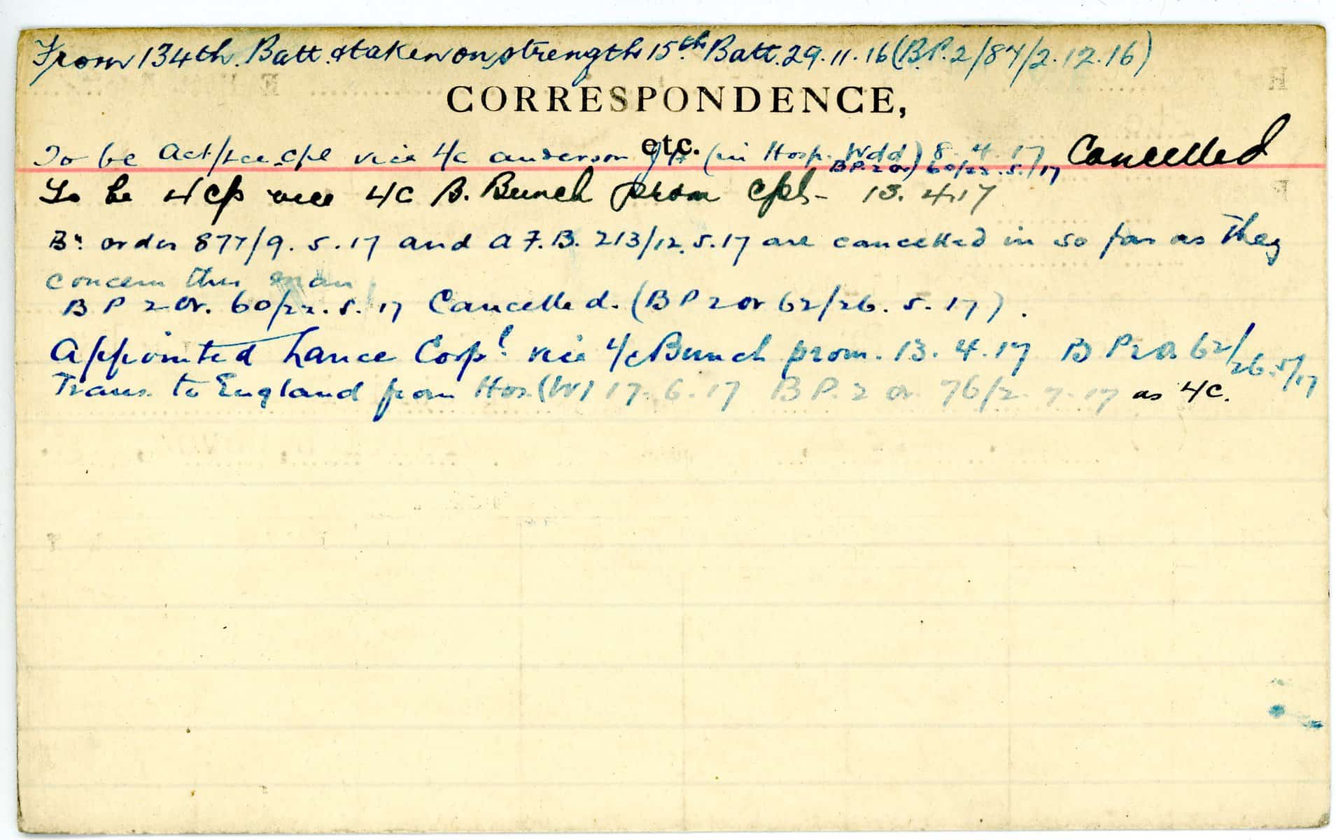 Record of Service Cards – W