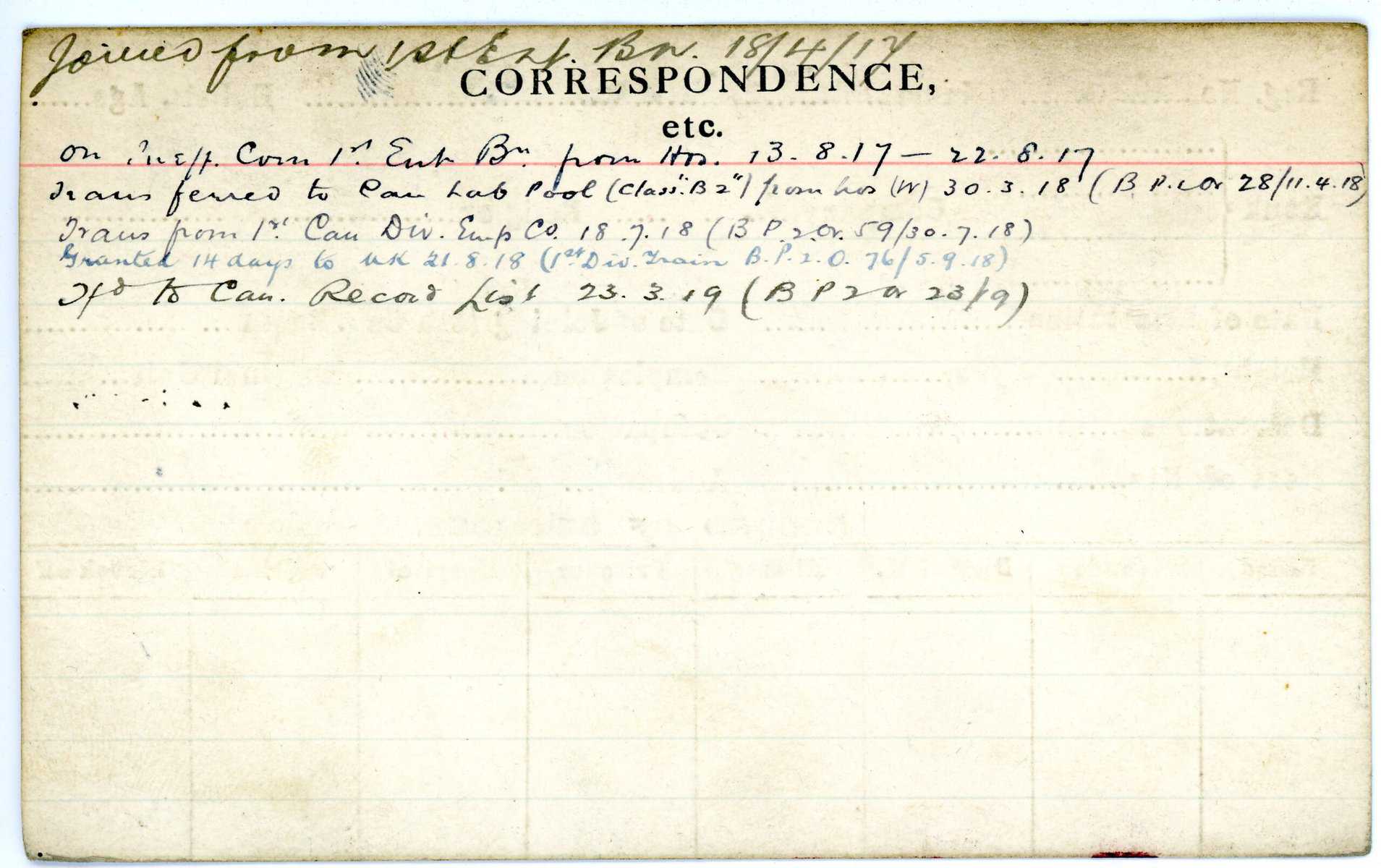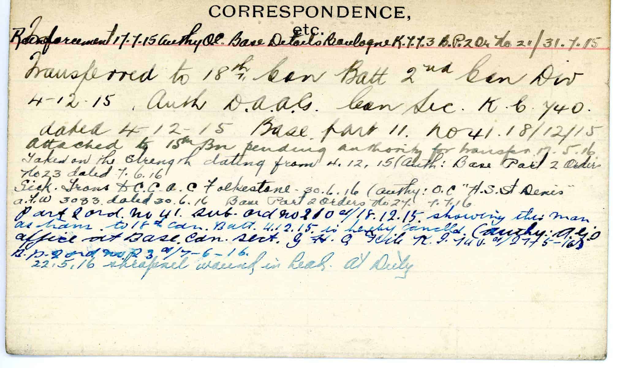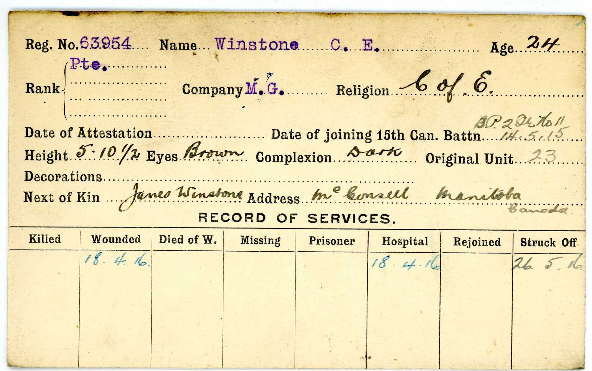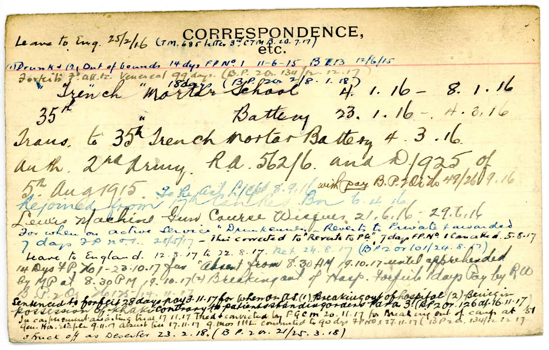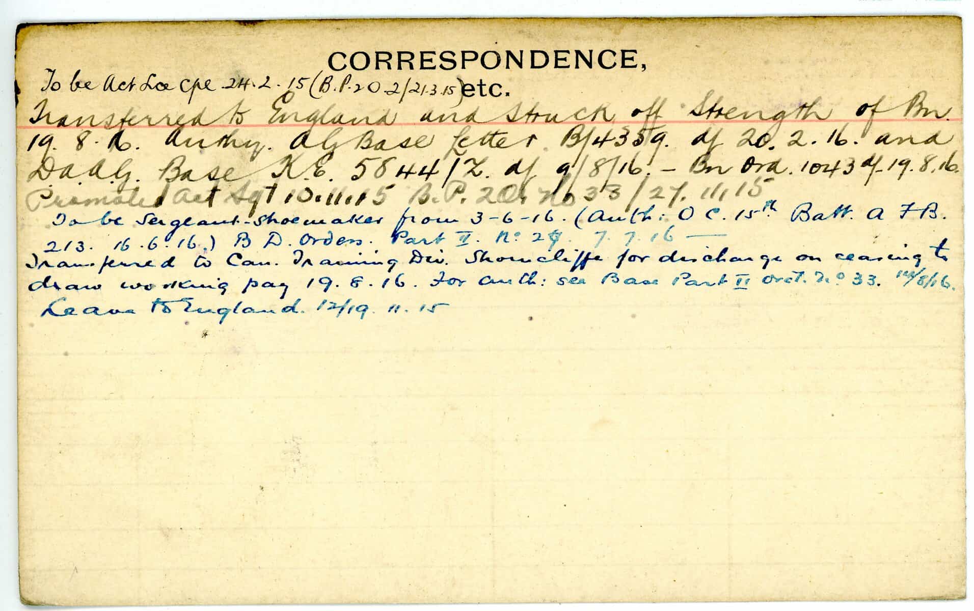Record of Service Cards – W