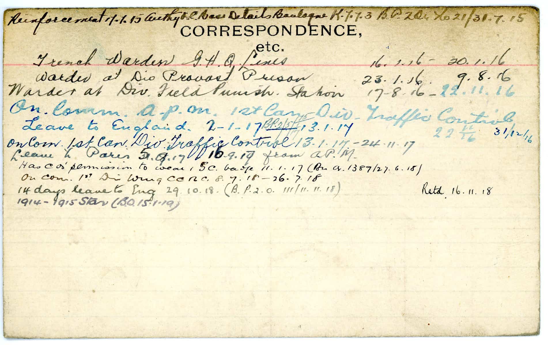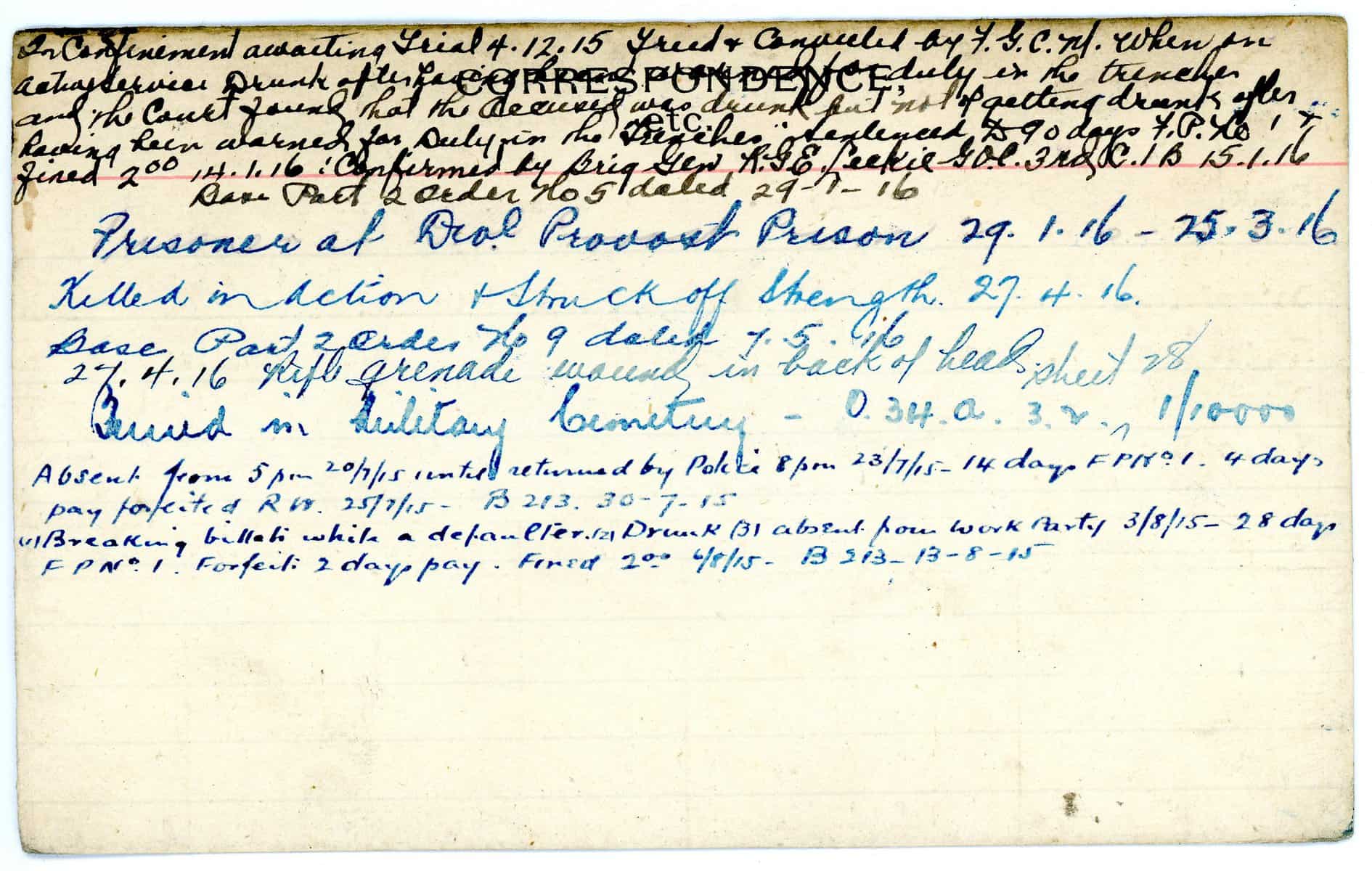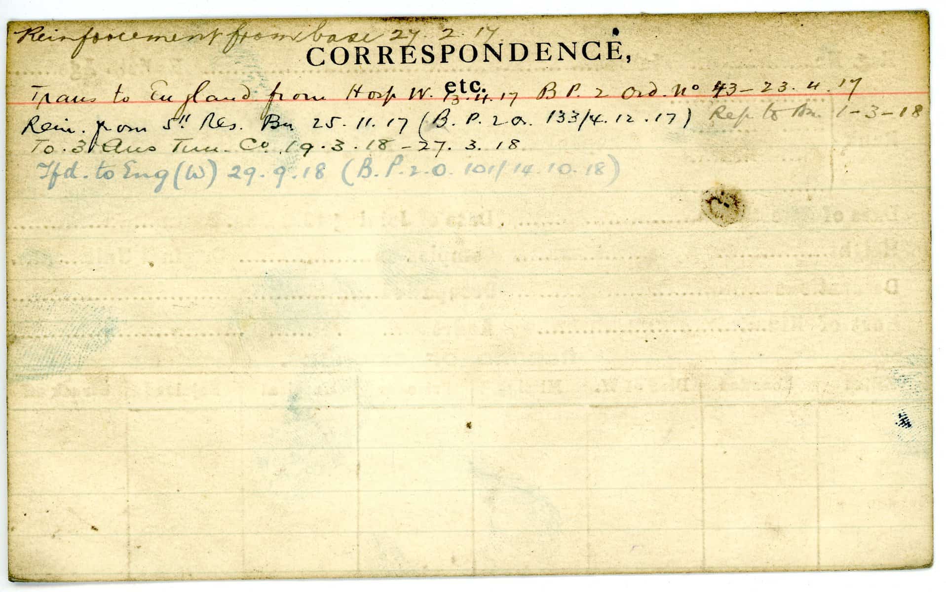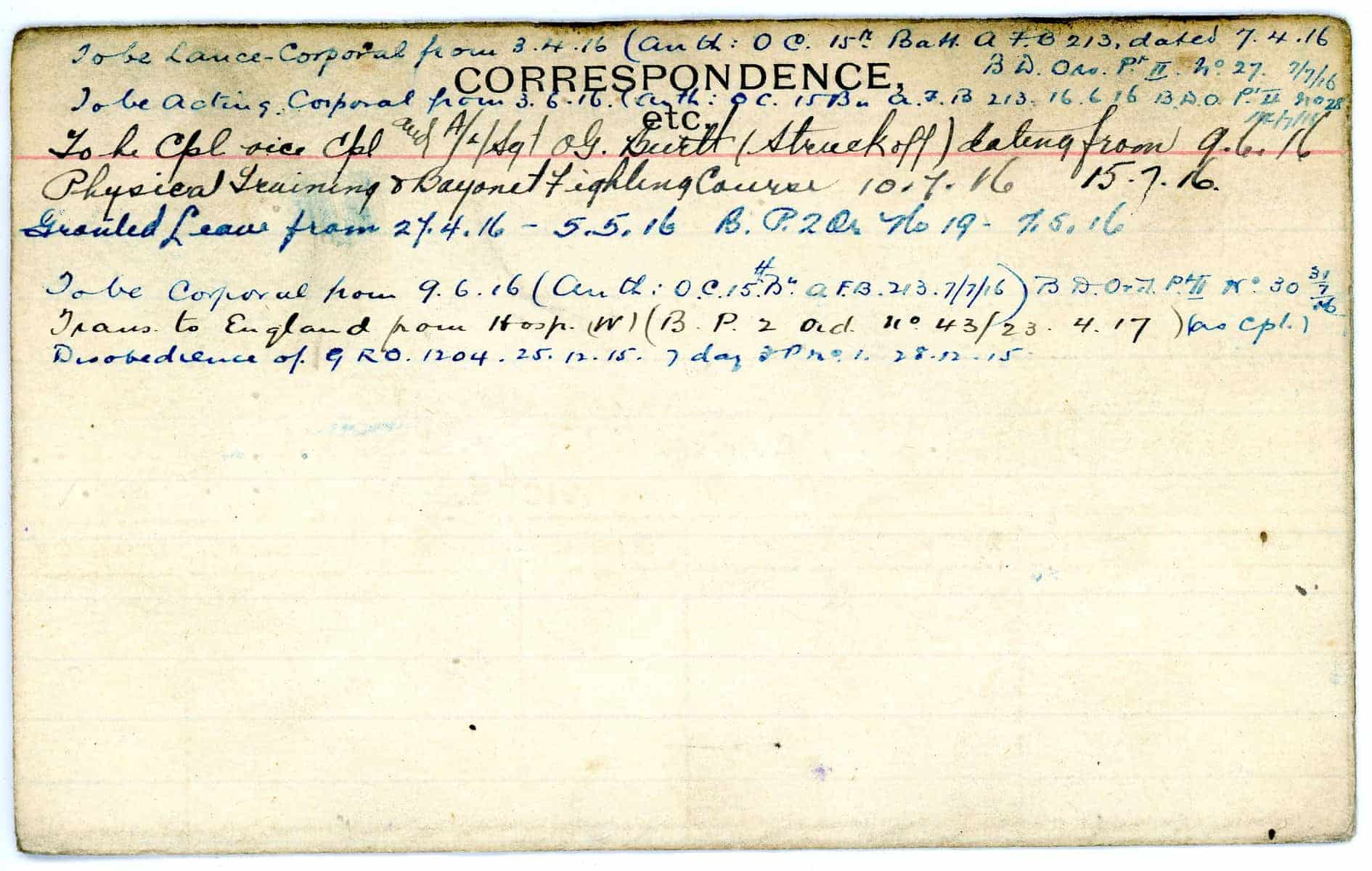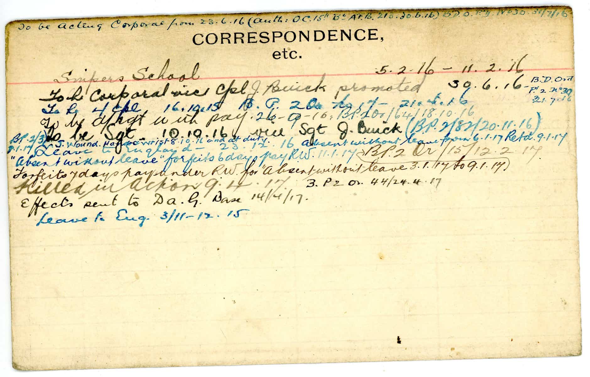 Record of Service Cards – W