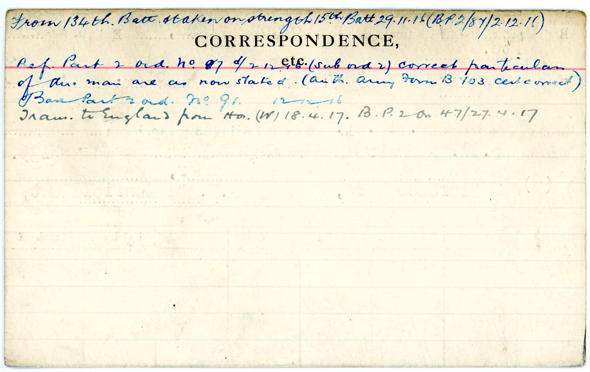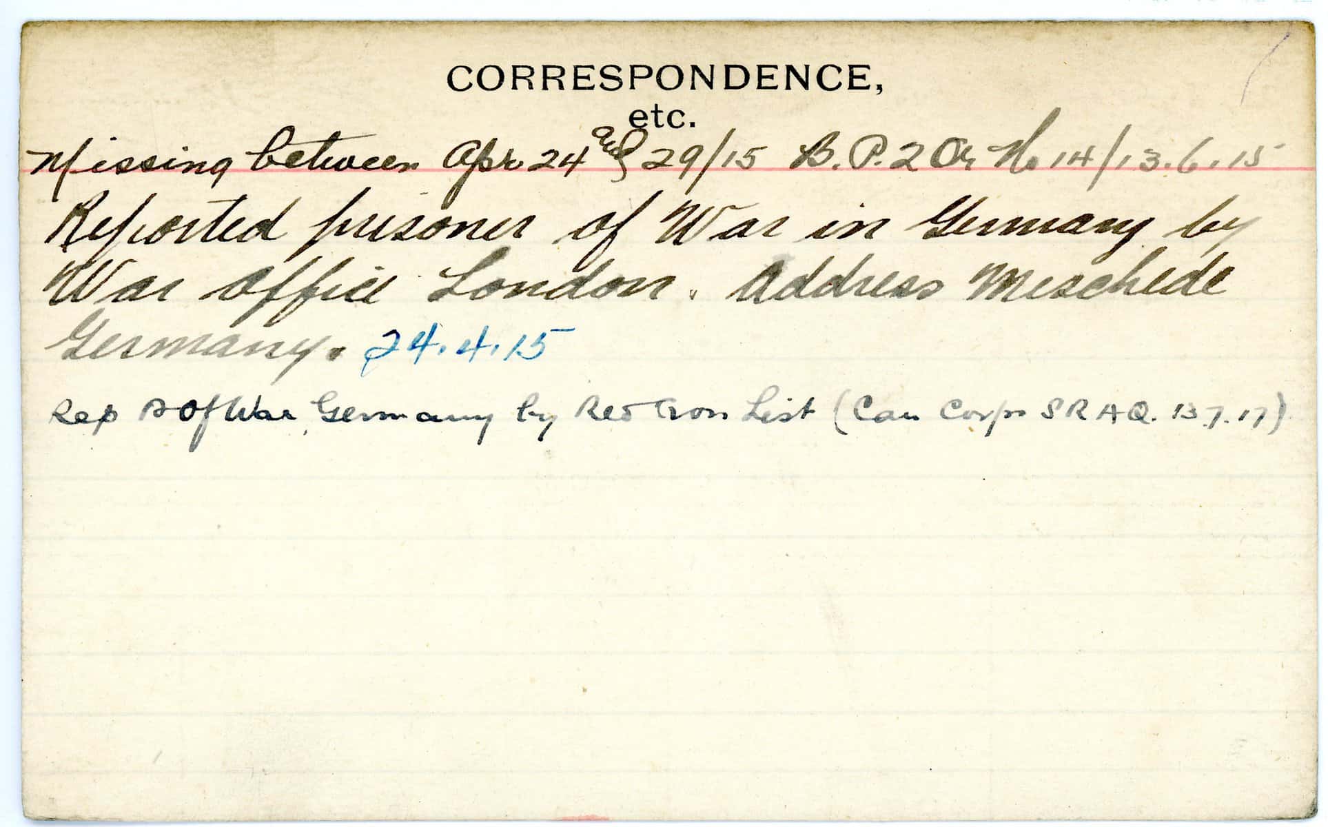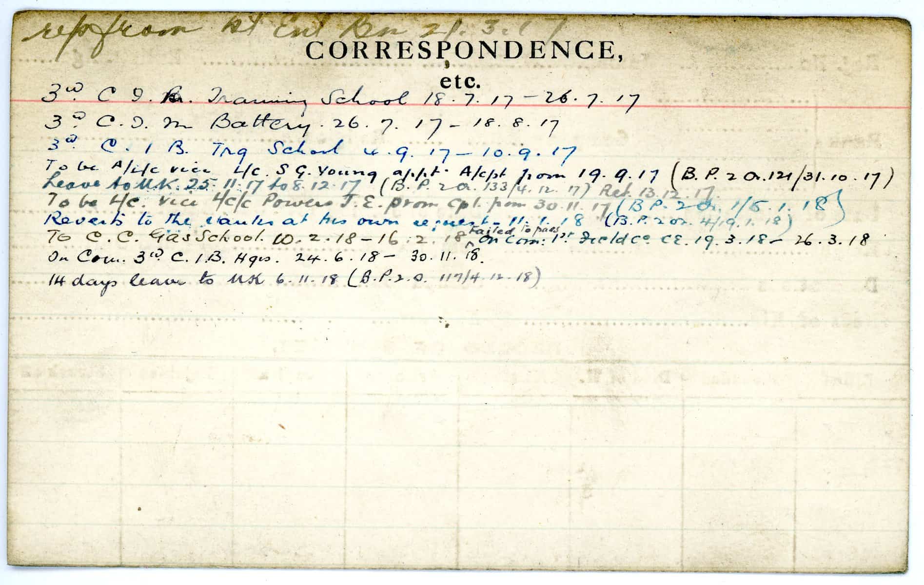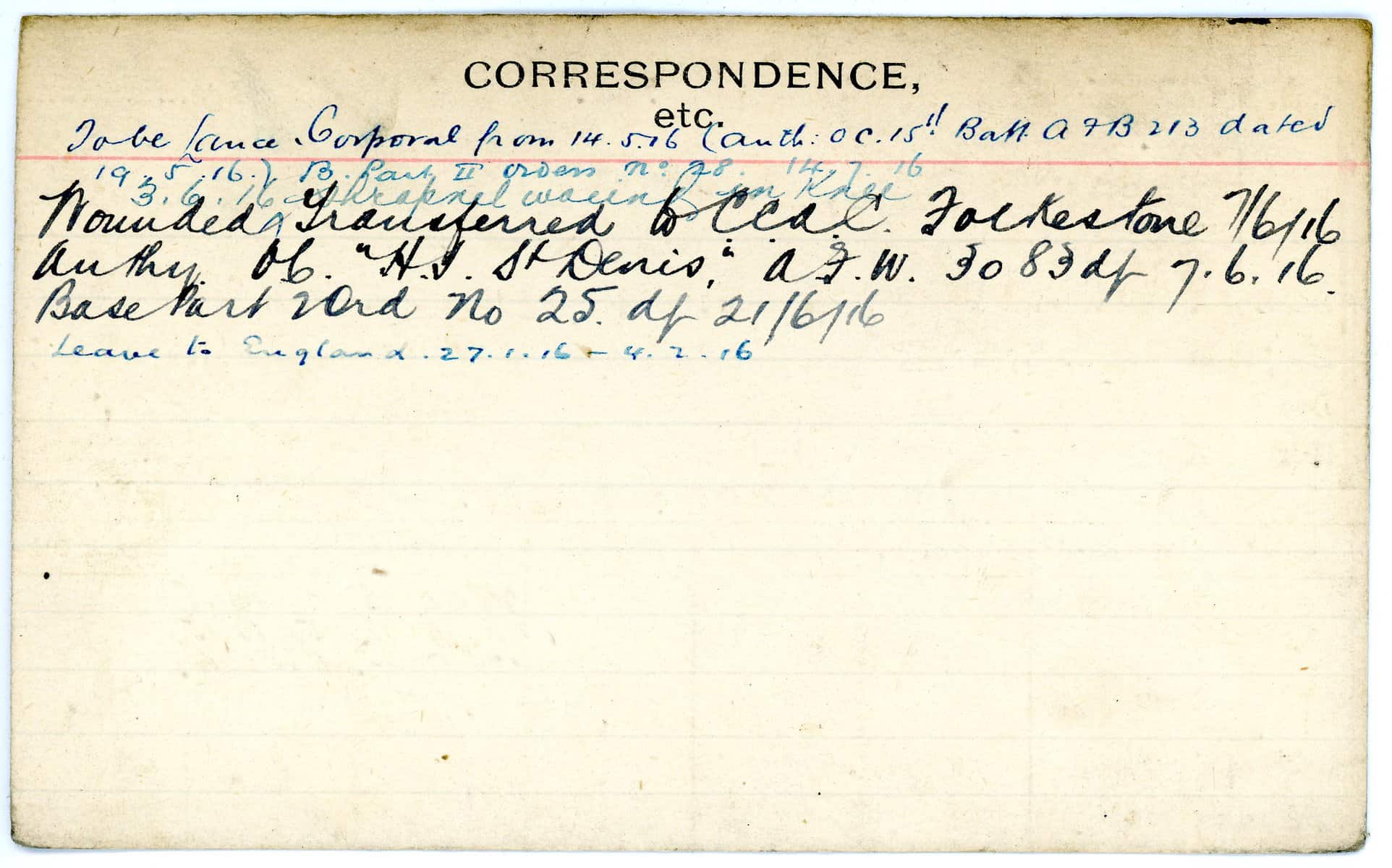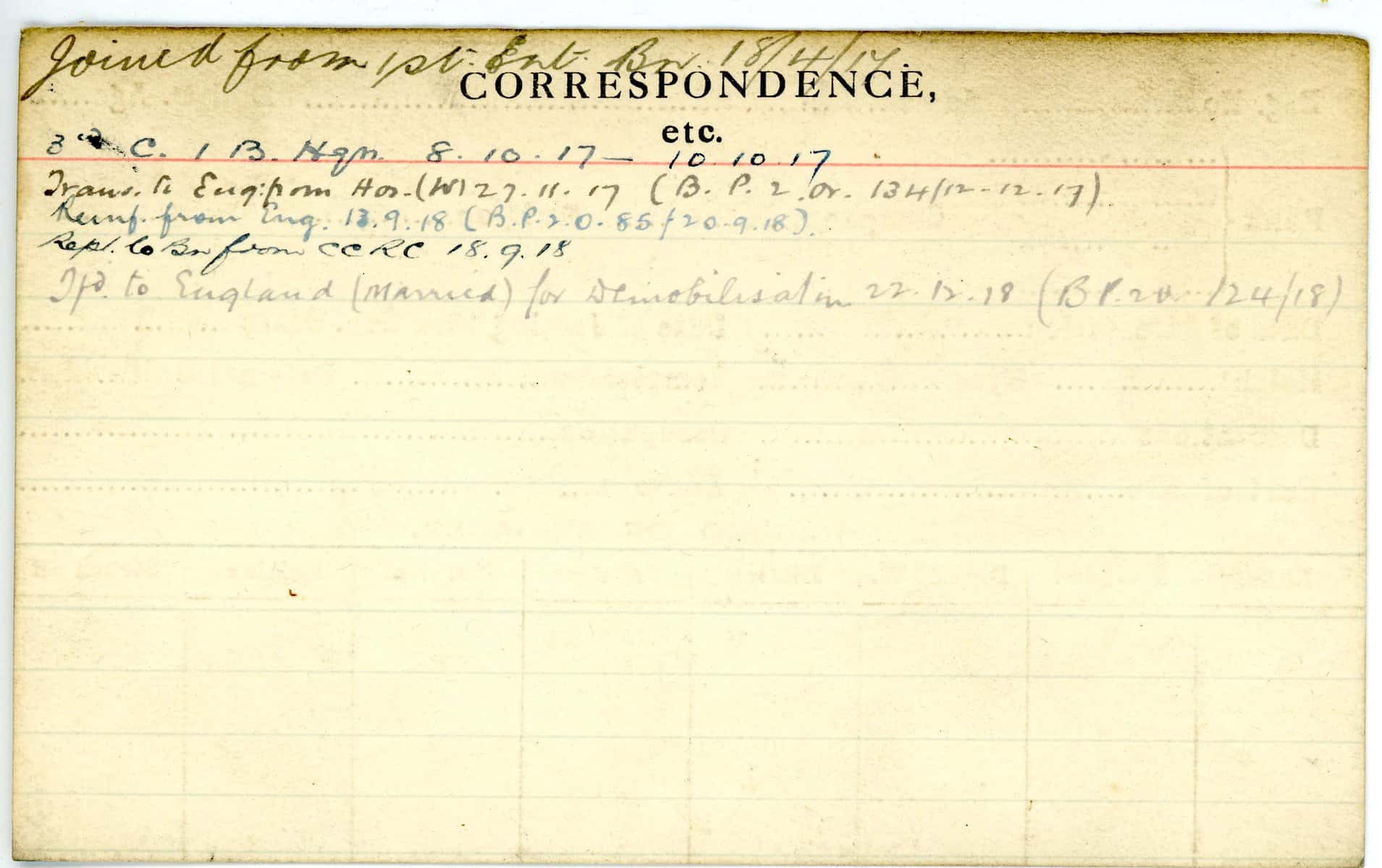 Record of Service Cards – W