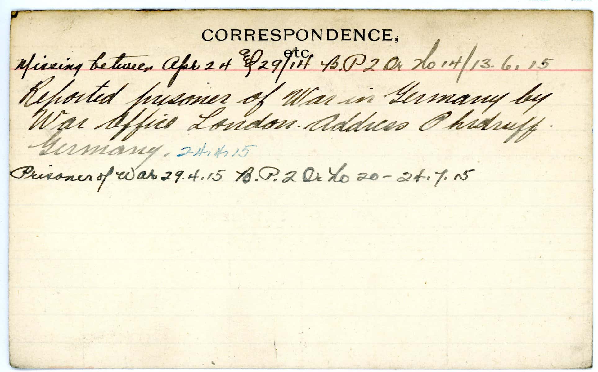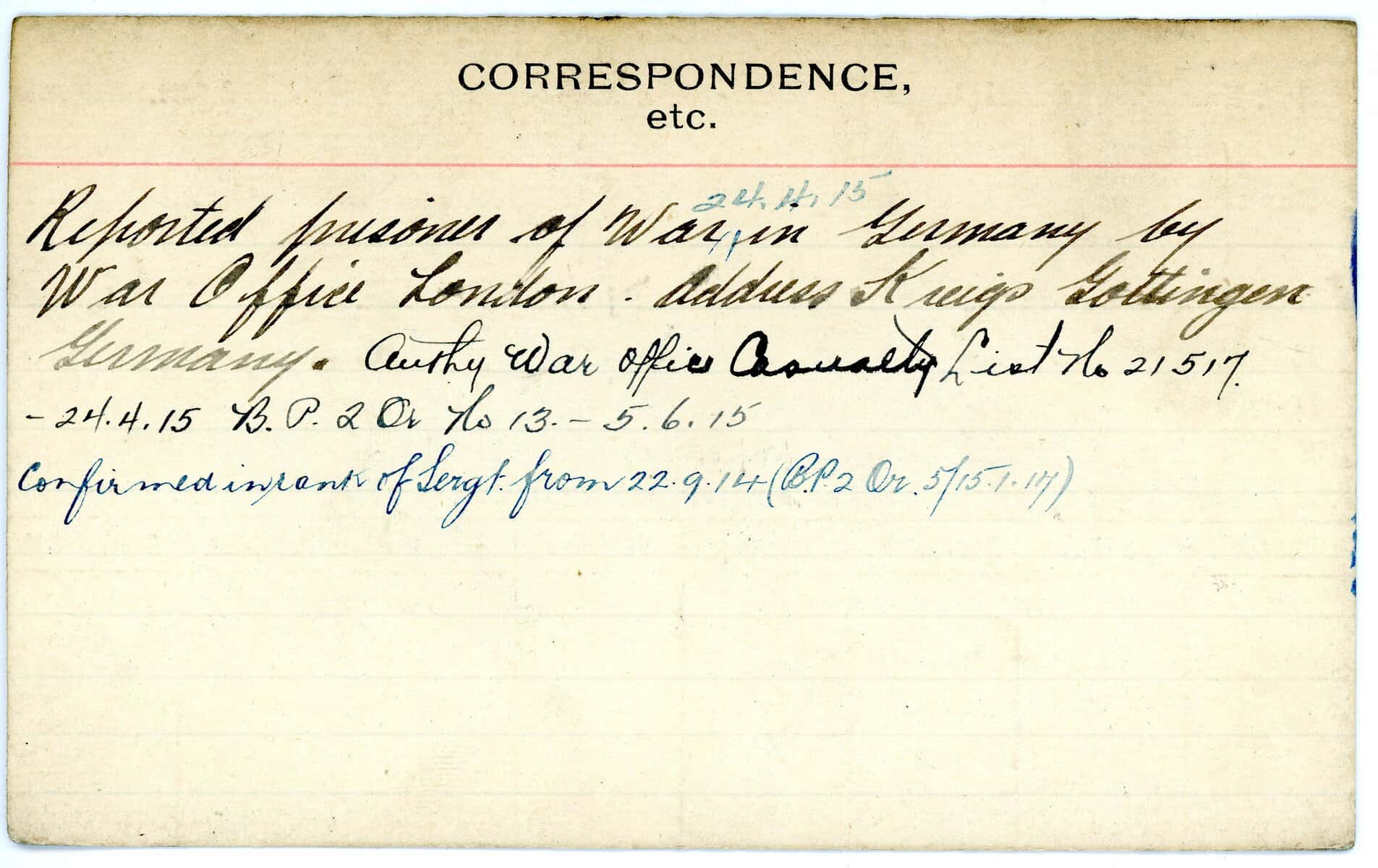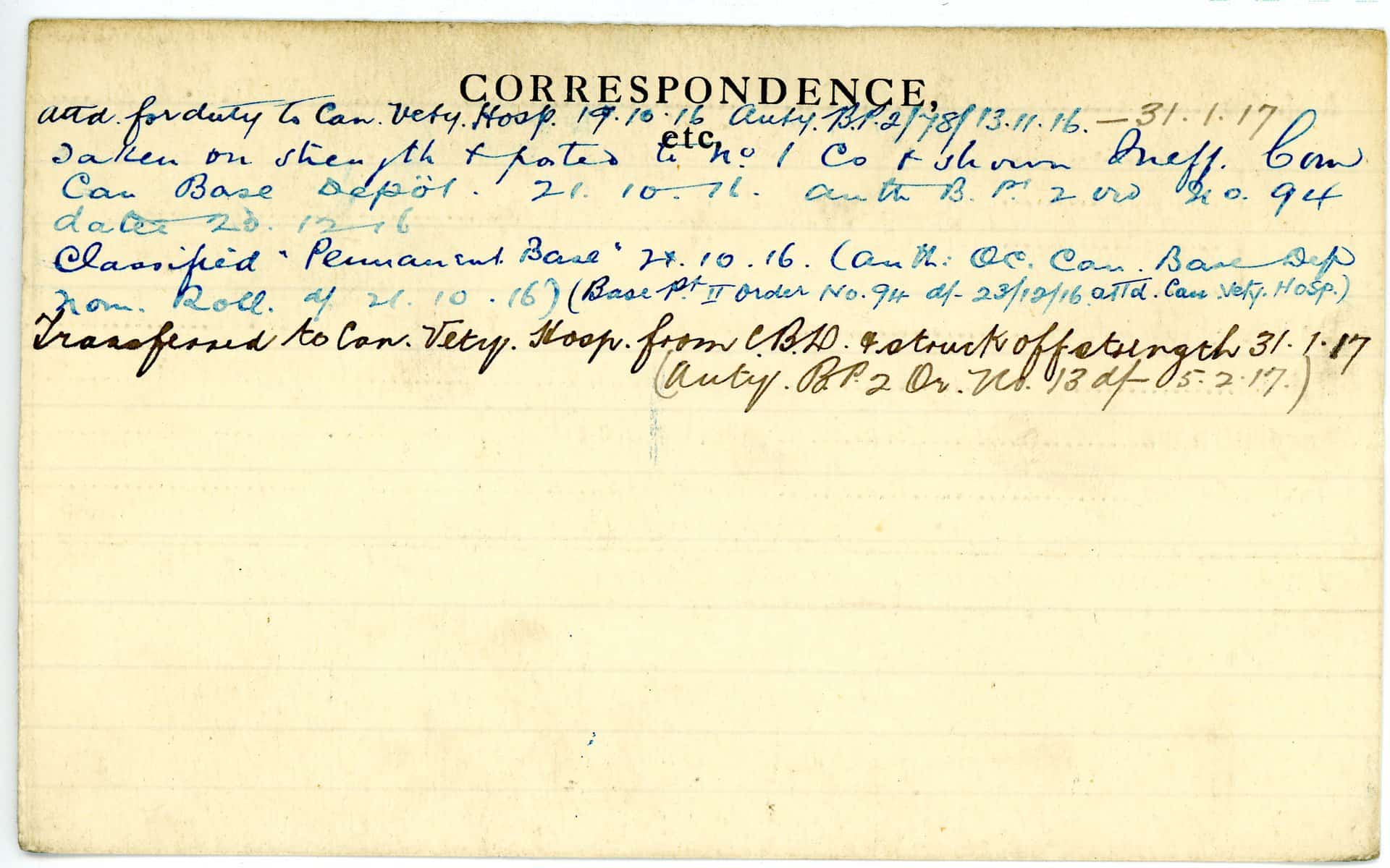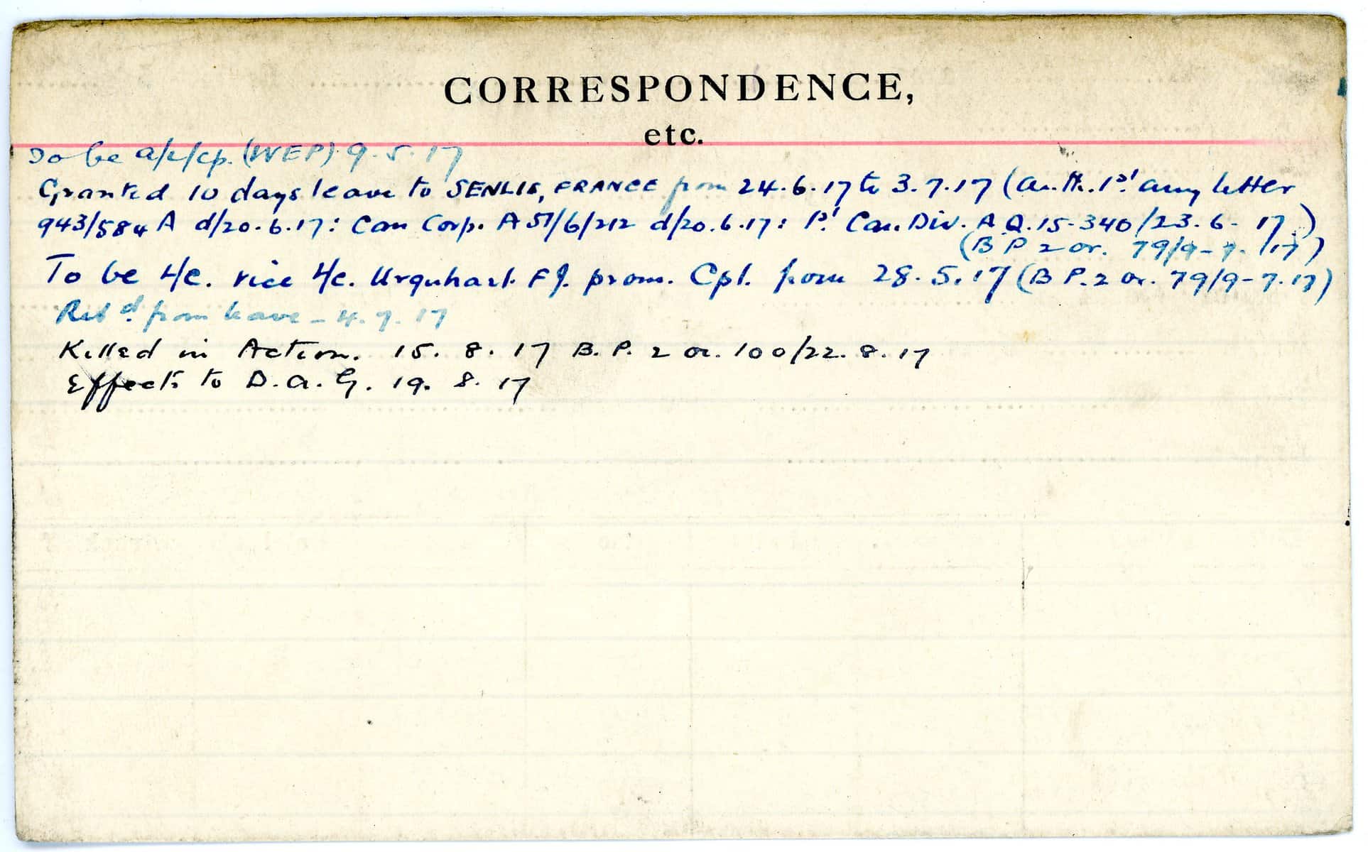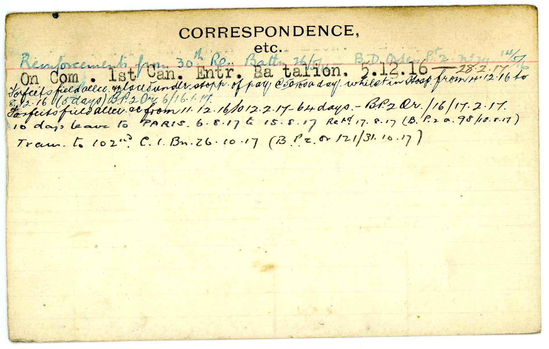 Record of Service Cards – W