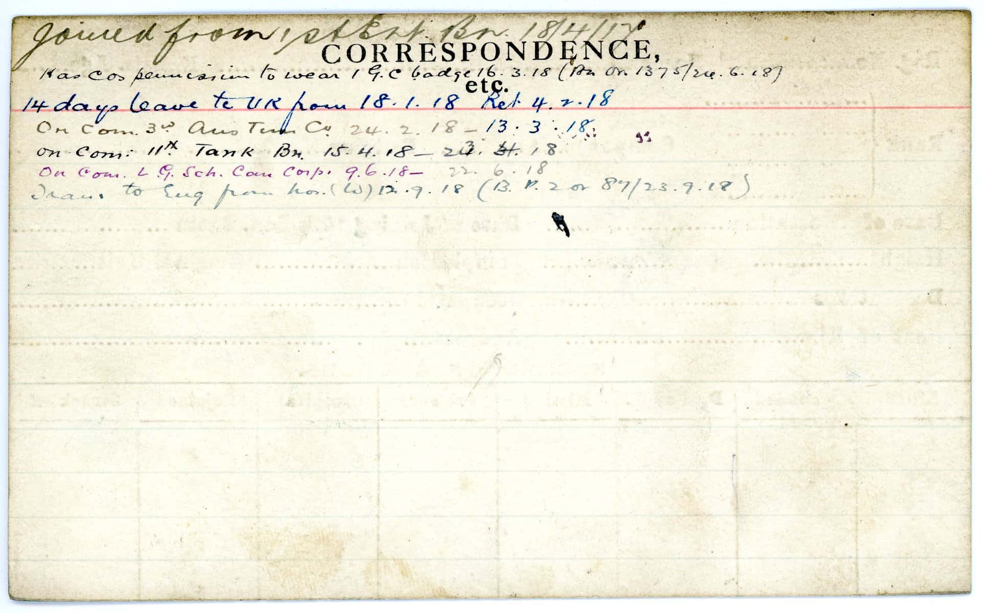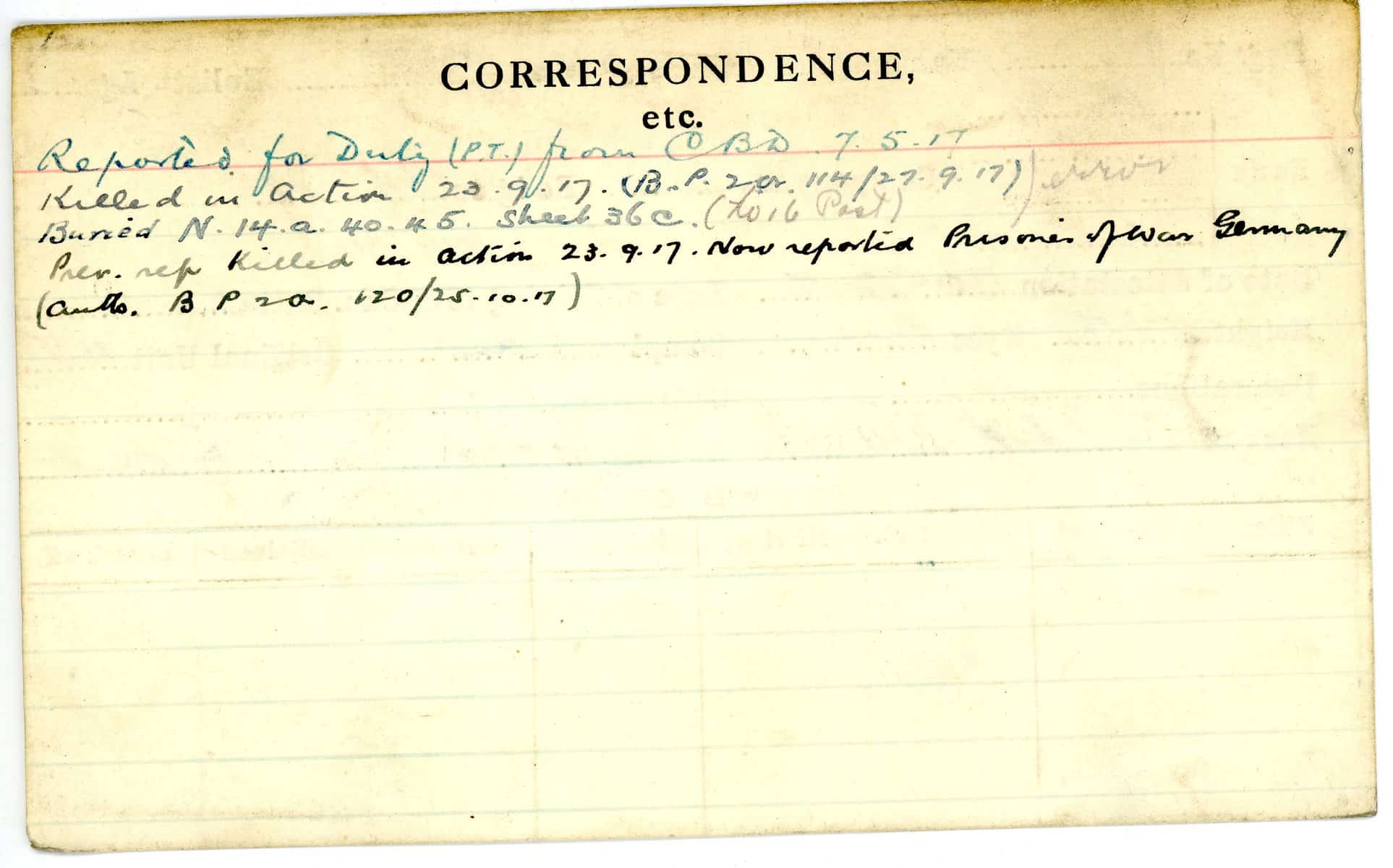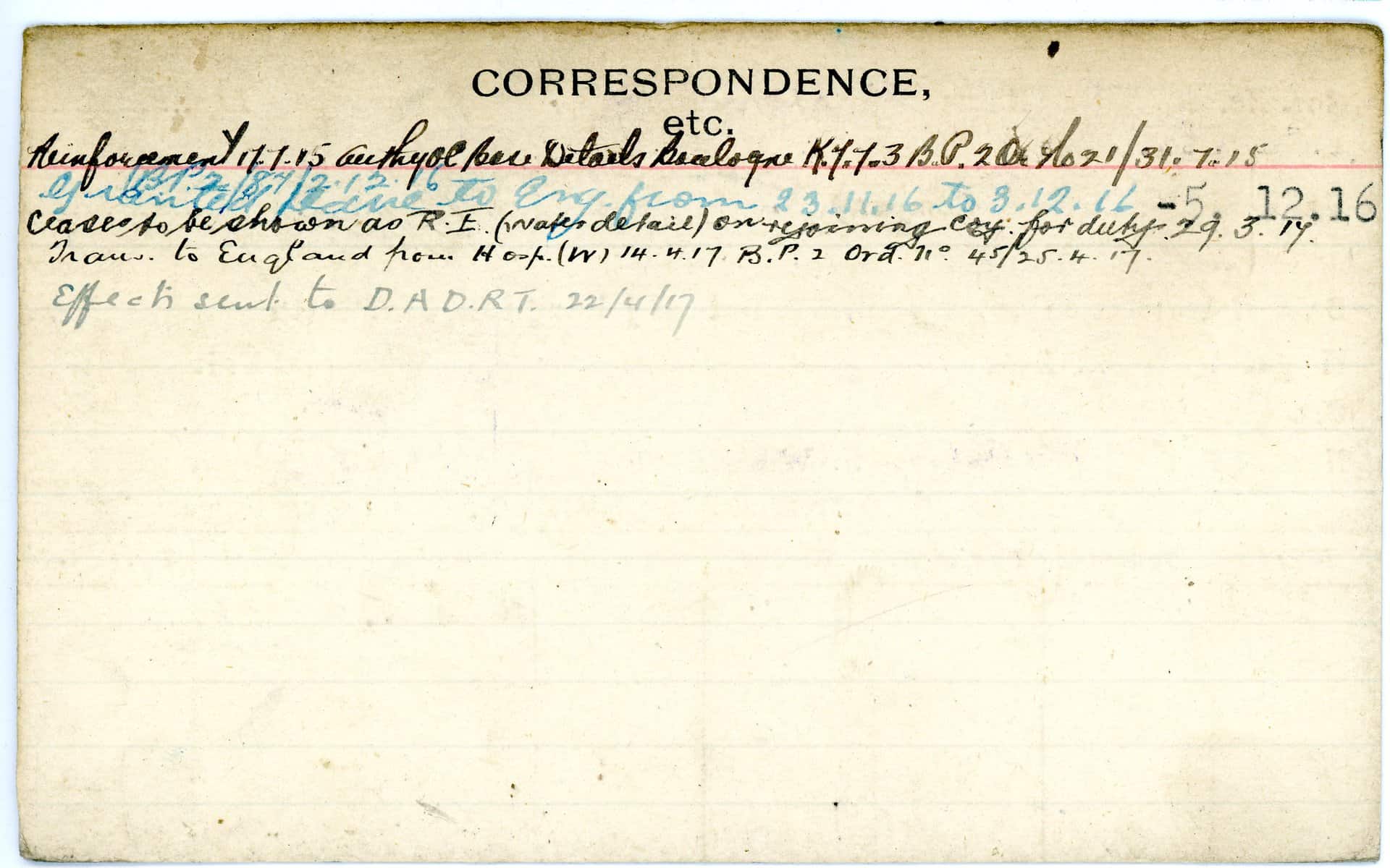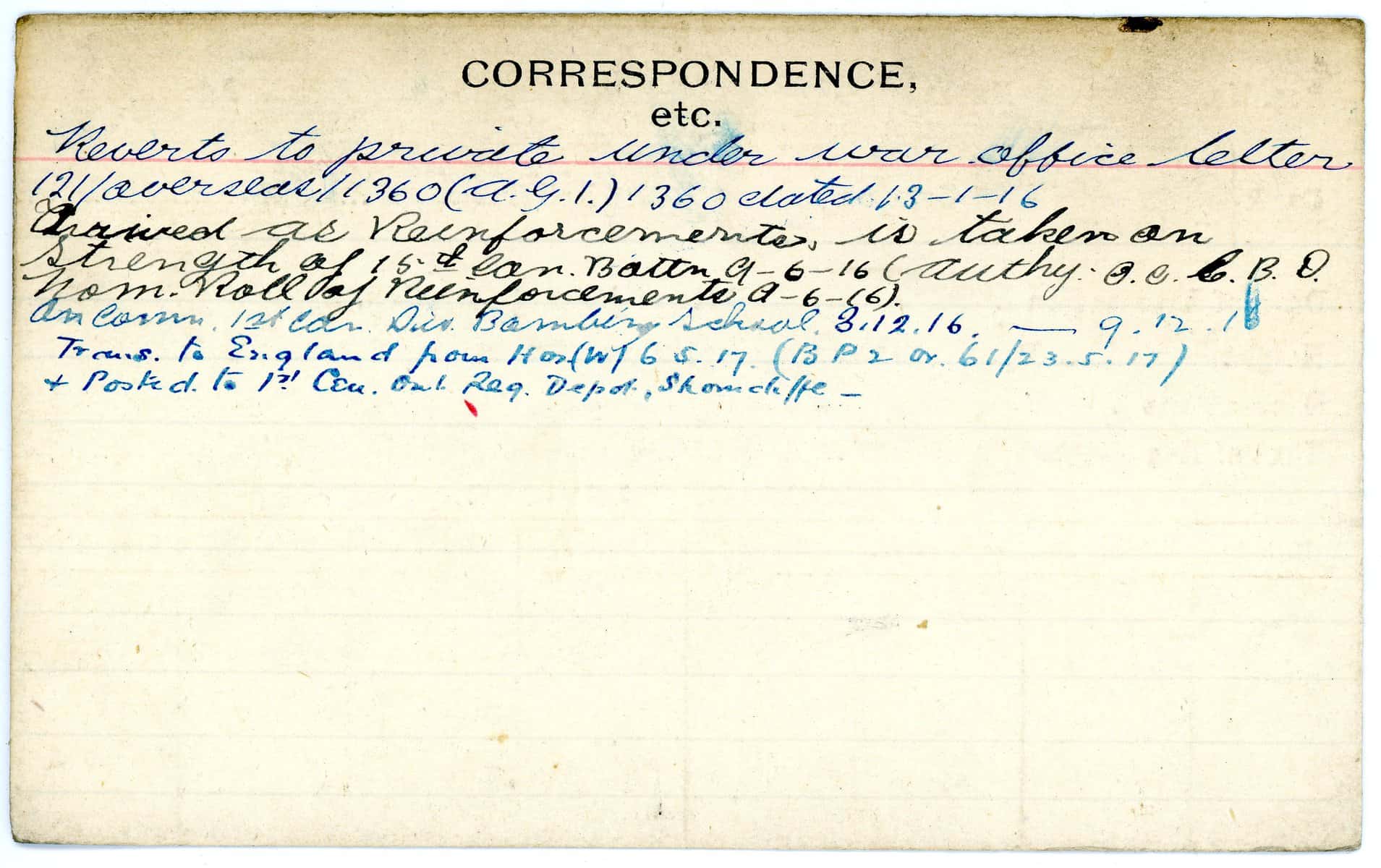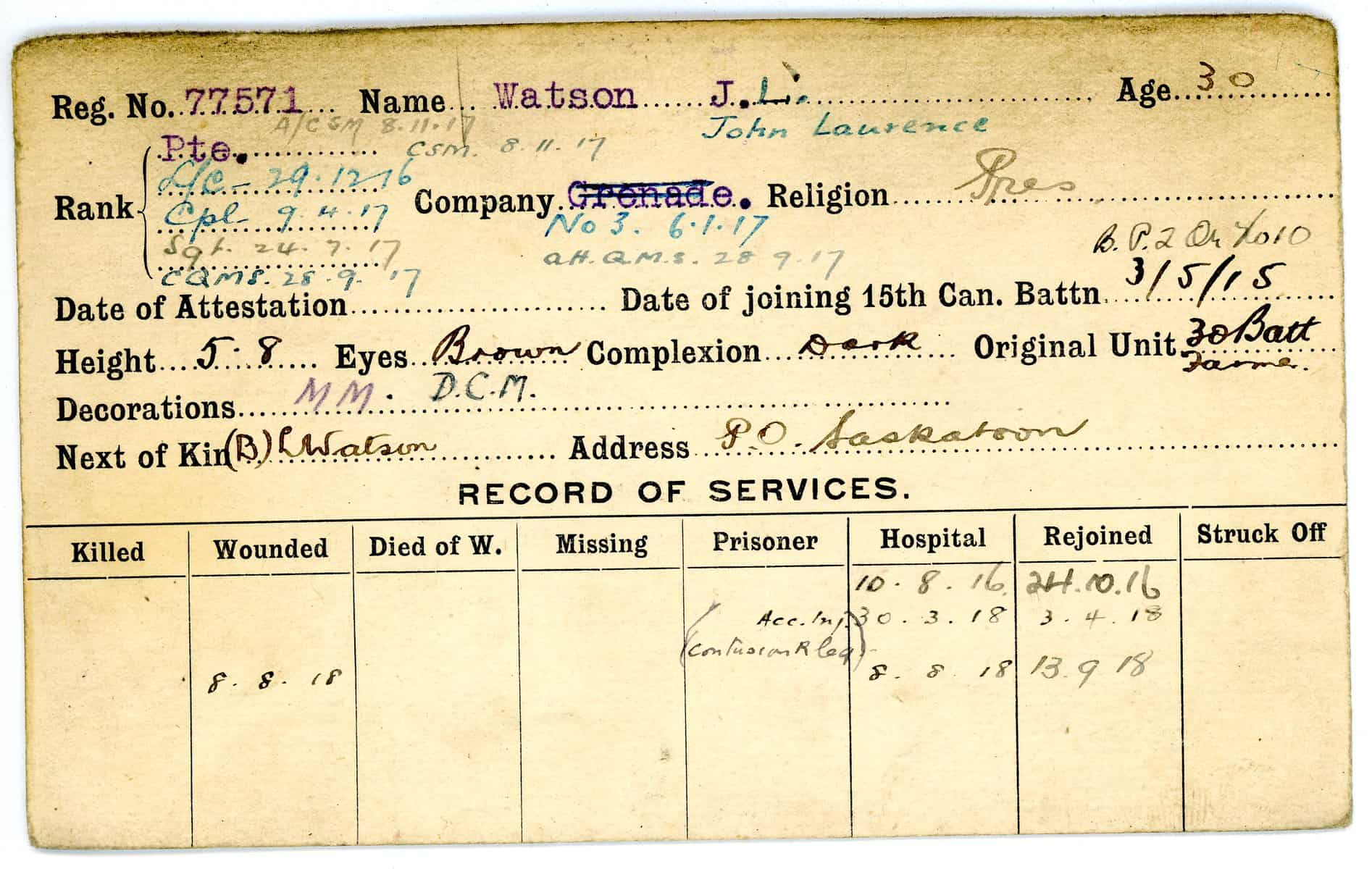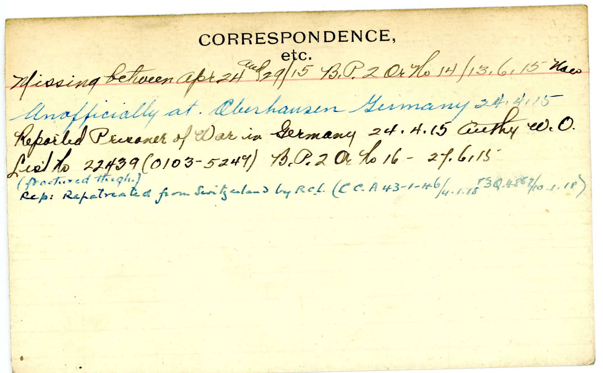 Record of Service Cards – W