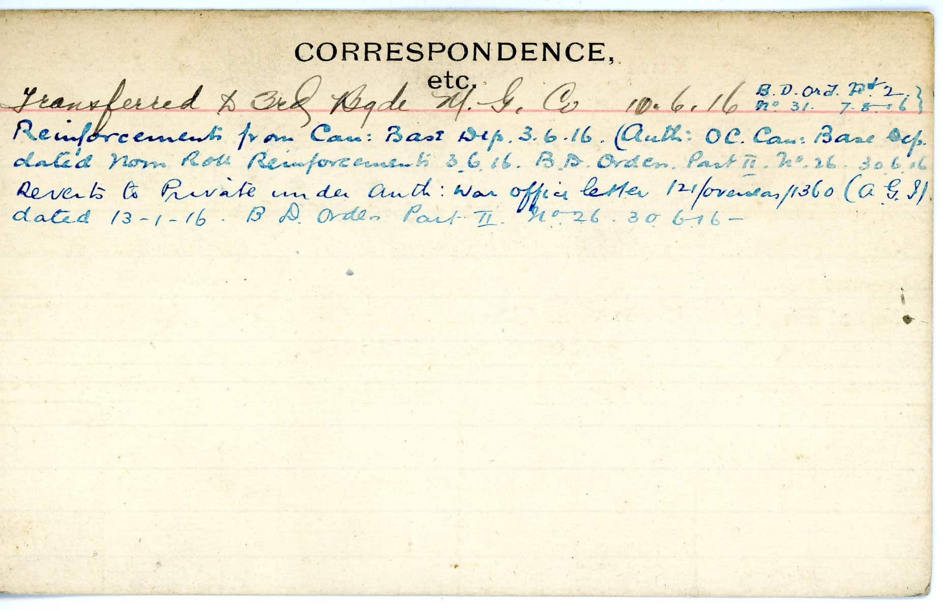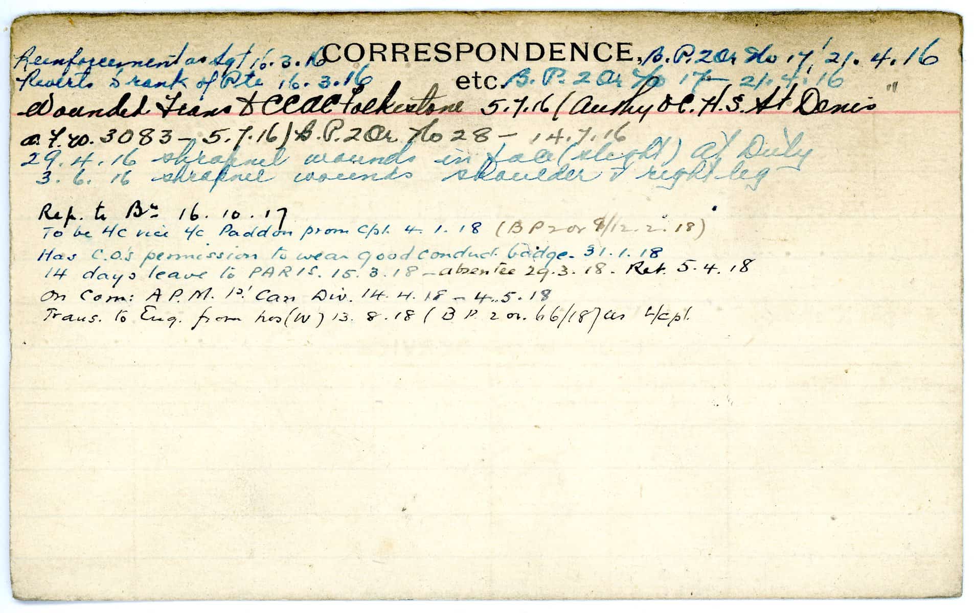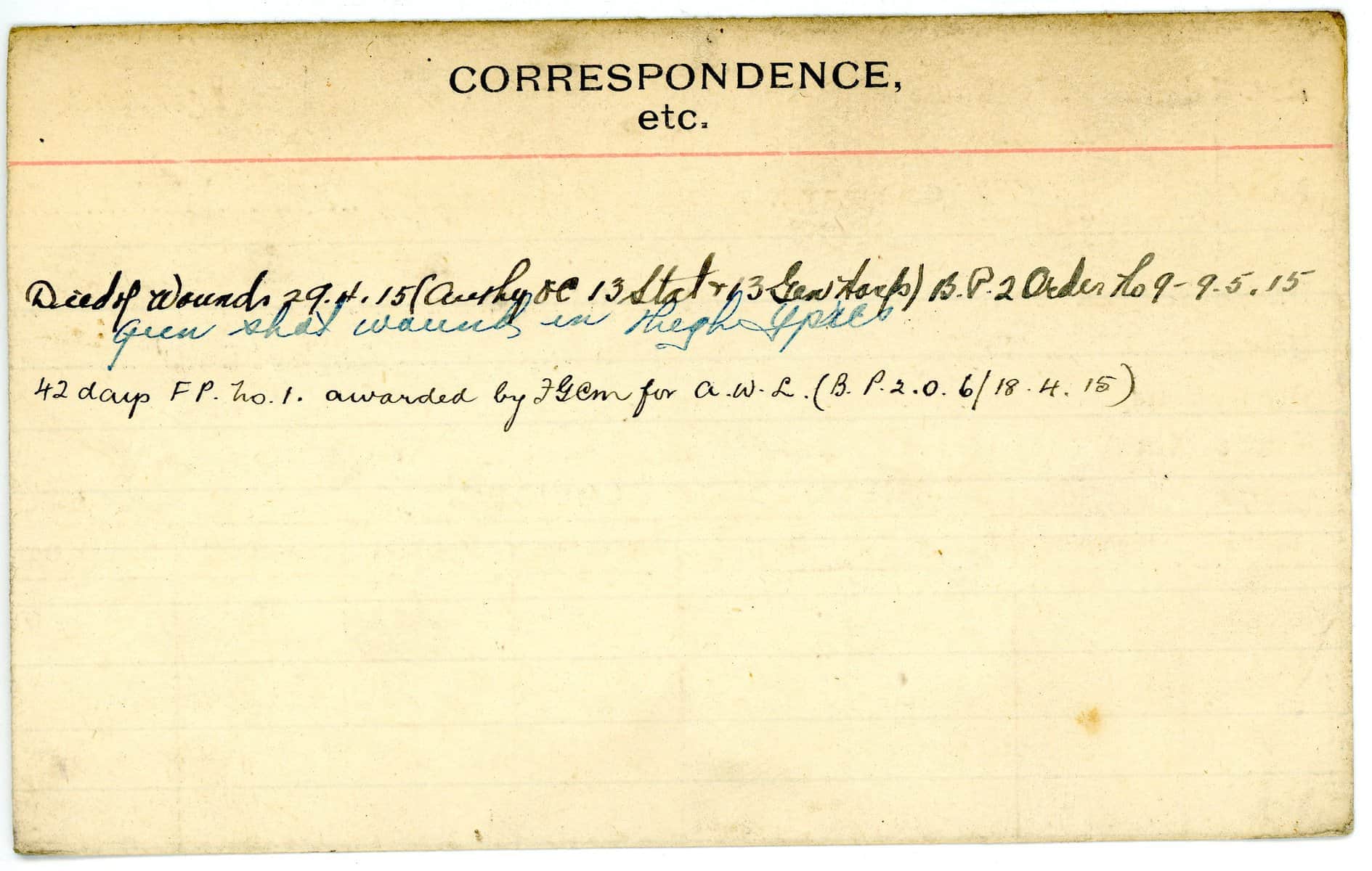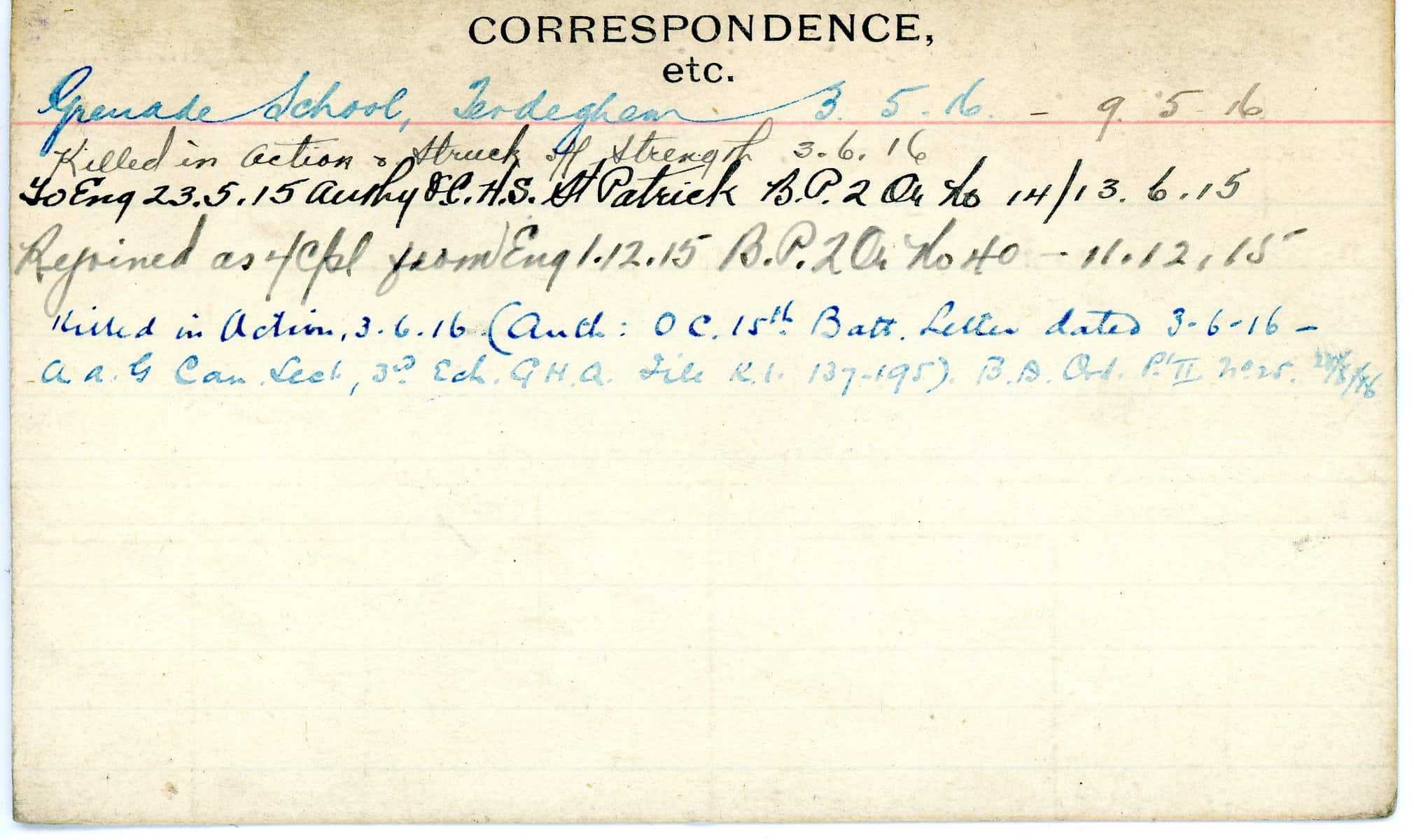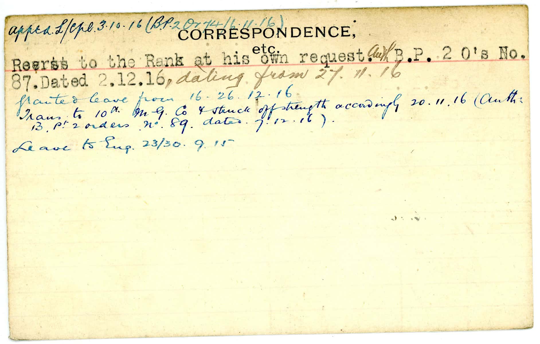 Record of Service Cards – W