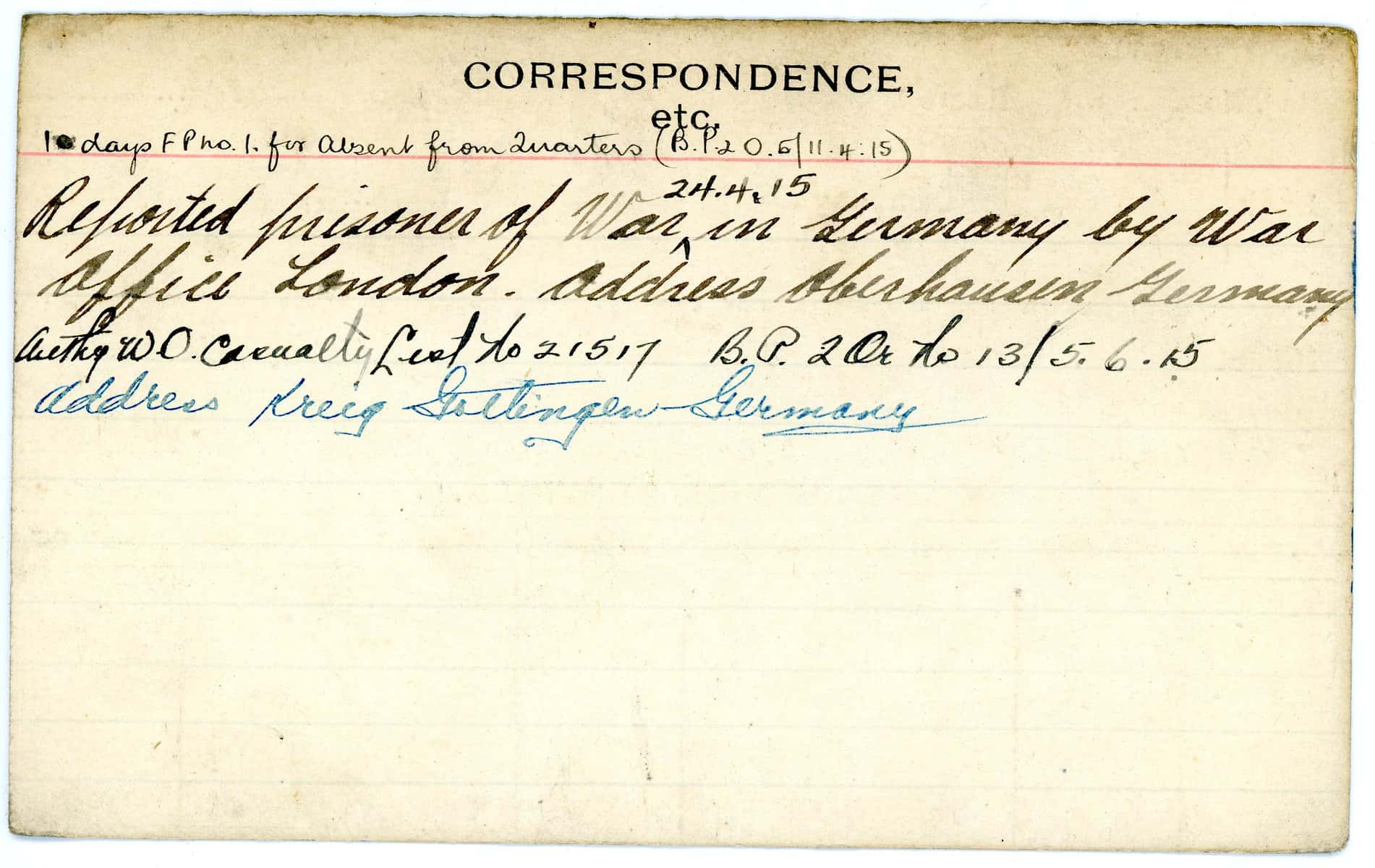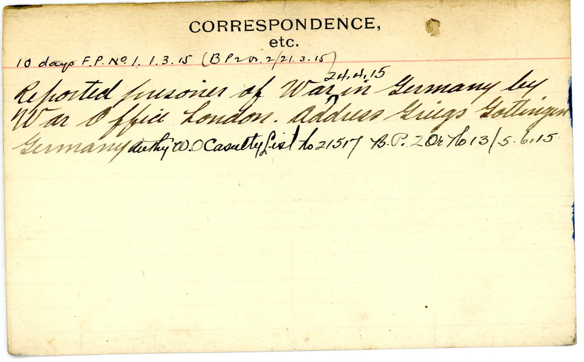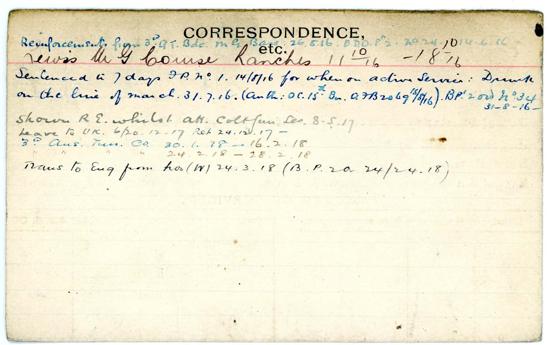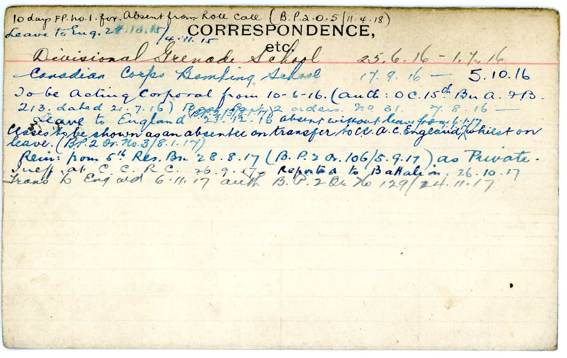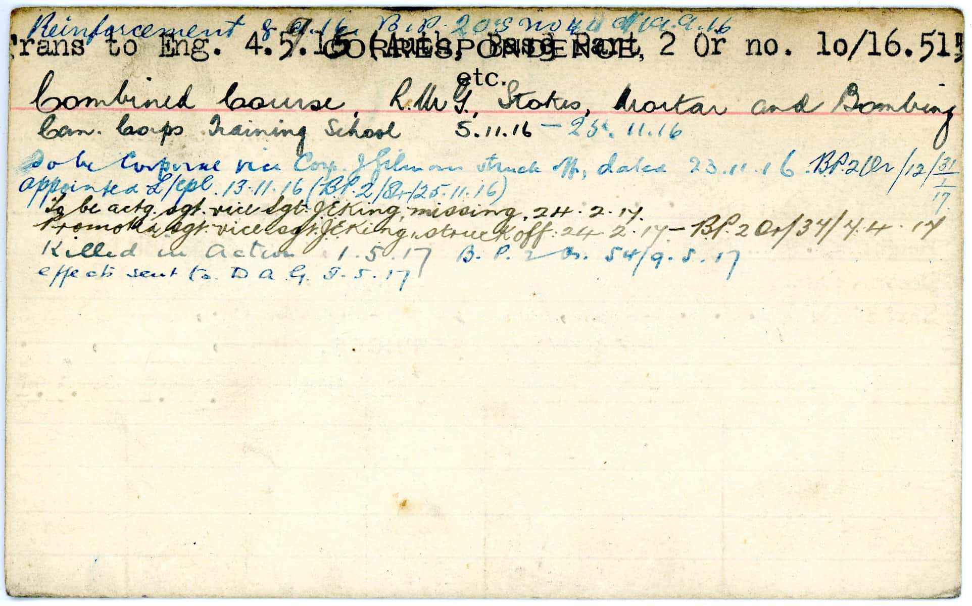 Record of Service Cards – W