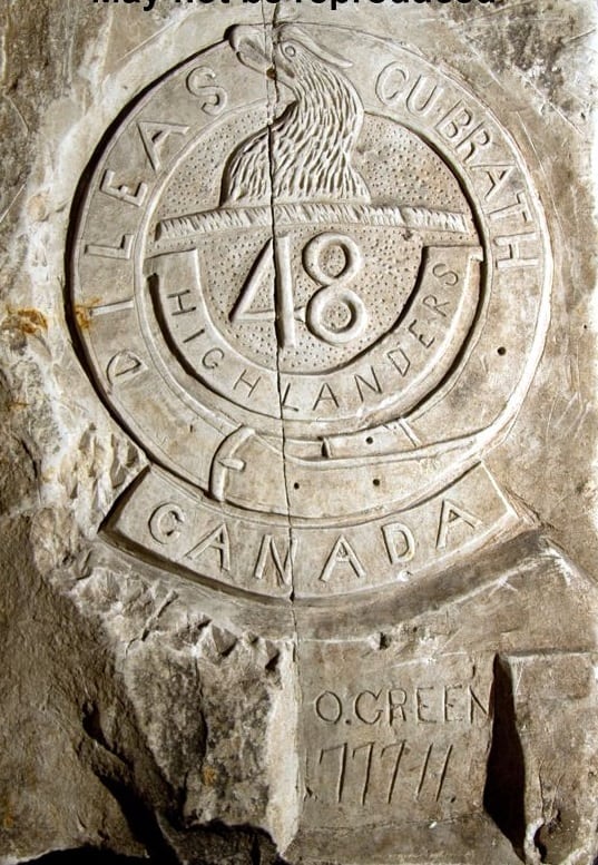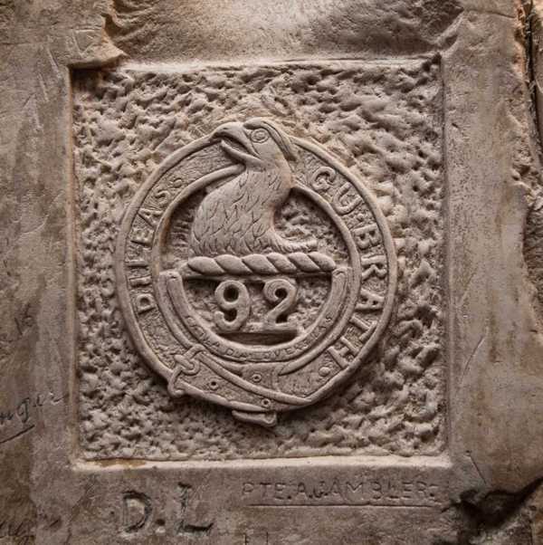 Additionally, in the rear assembly areas a number of large underground shelters – some of which were pre-existing underground stone quarries – were dug or expanded to provide shelter from artillery and observation for assembling troops in the build-up to the attack on 9 April 1917. One such souterrain quarry referred to as Maison Blanche was occupied by units of the 1st Division’s 3rd Canadian Infantry Brigade – including the 15th Battalion (48th Highlanders). During the days spent waiting underground, soldiers left hundreds of carvings and graffiti on the walls of these tunnels and caves – including Maison Blanche.
